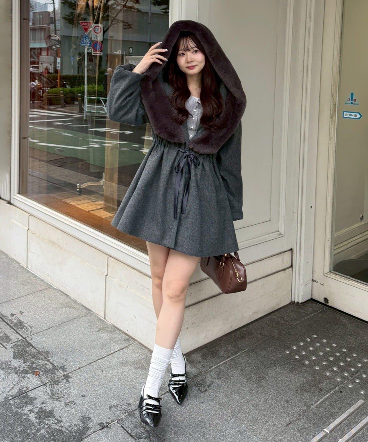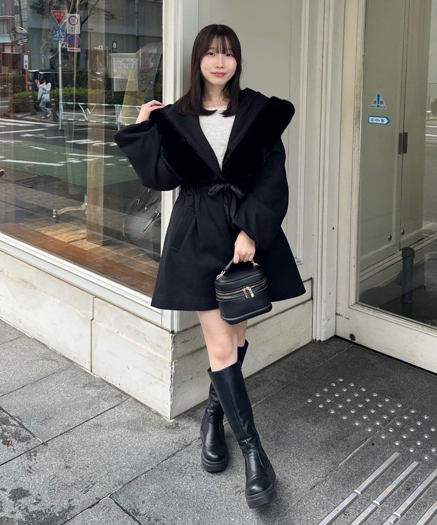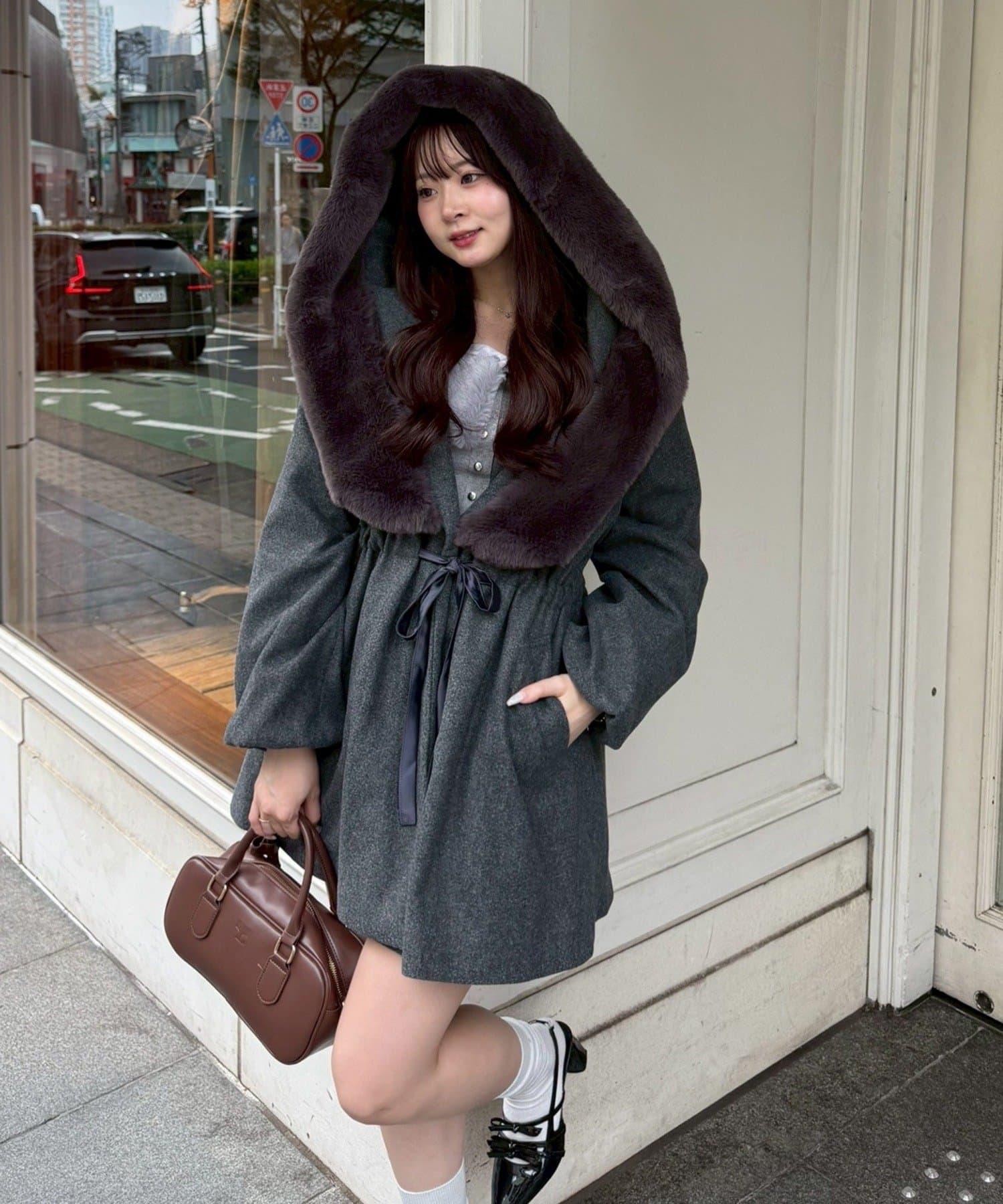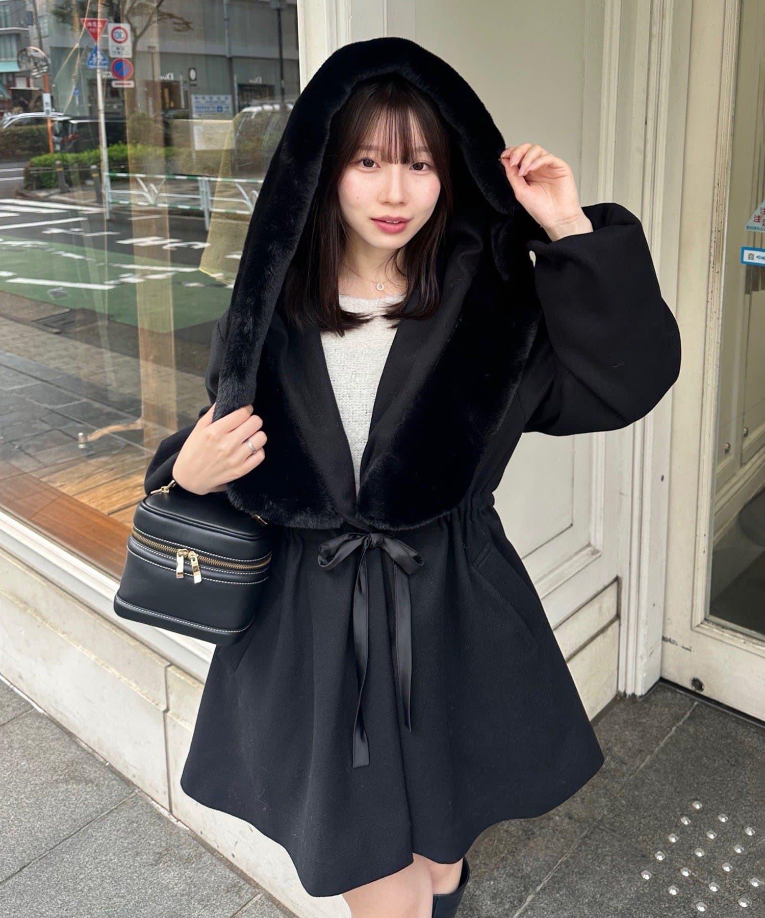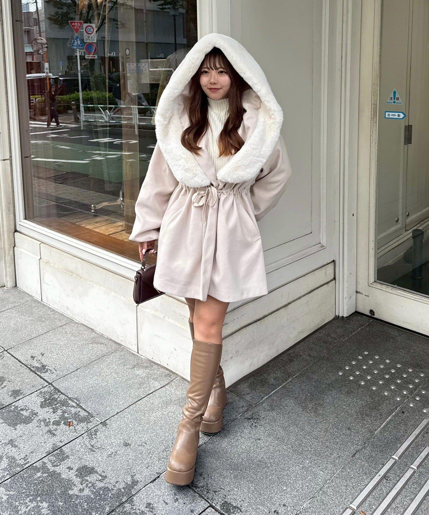 穿著感受:大面積的皮草連帽搭配出眾的小臉效果,讓人想一直穿著這件大衣。