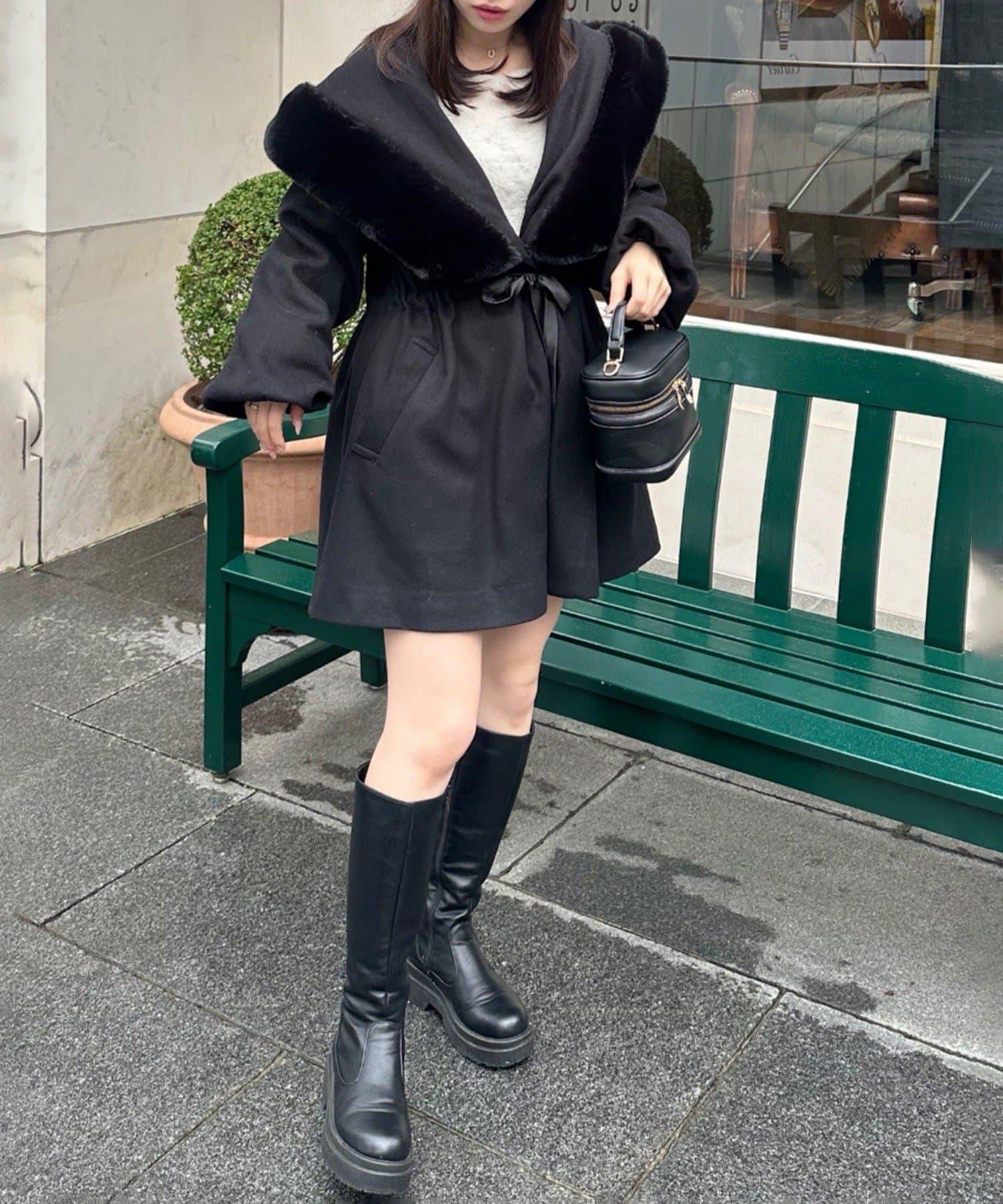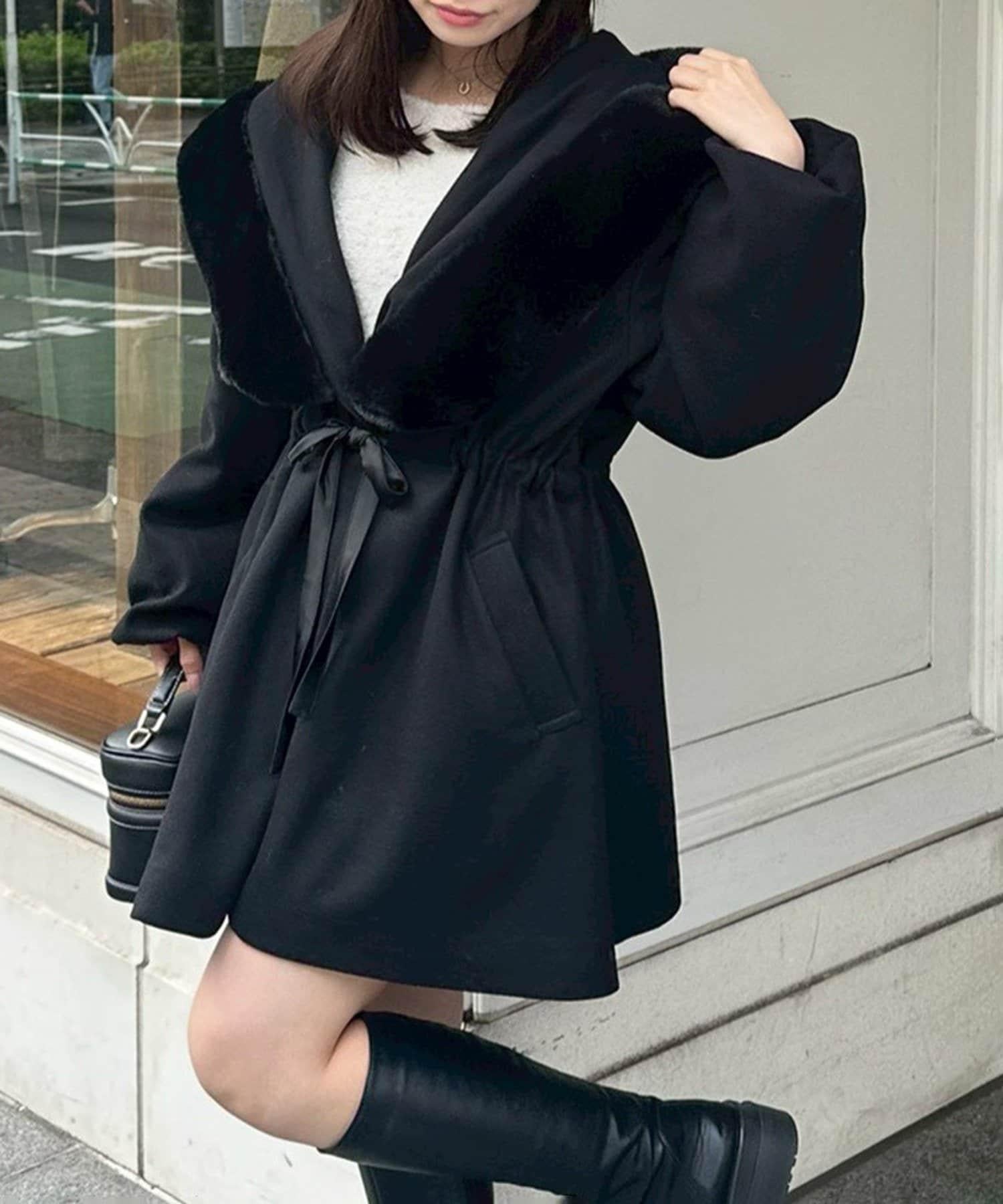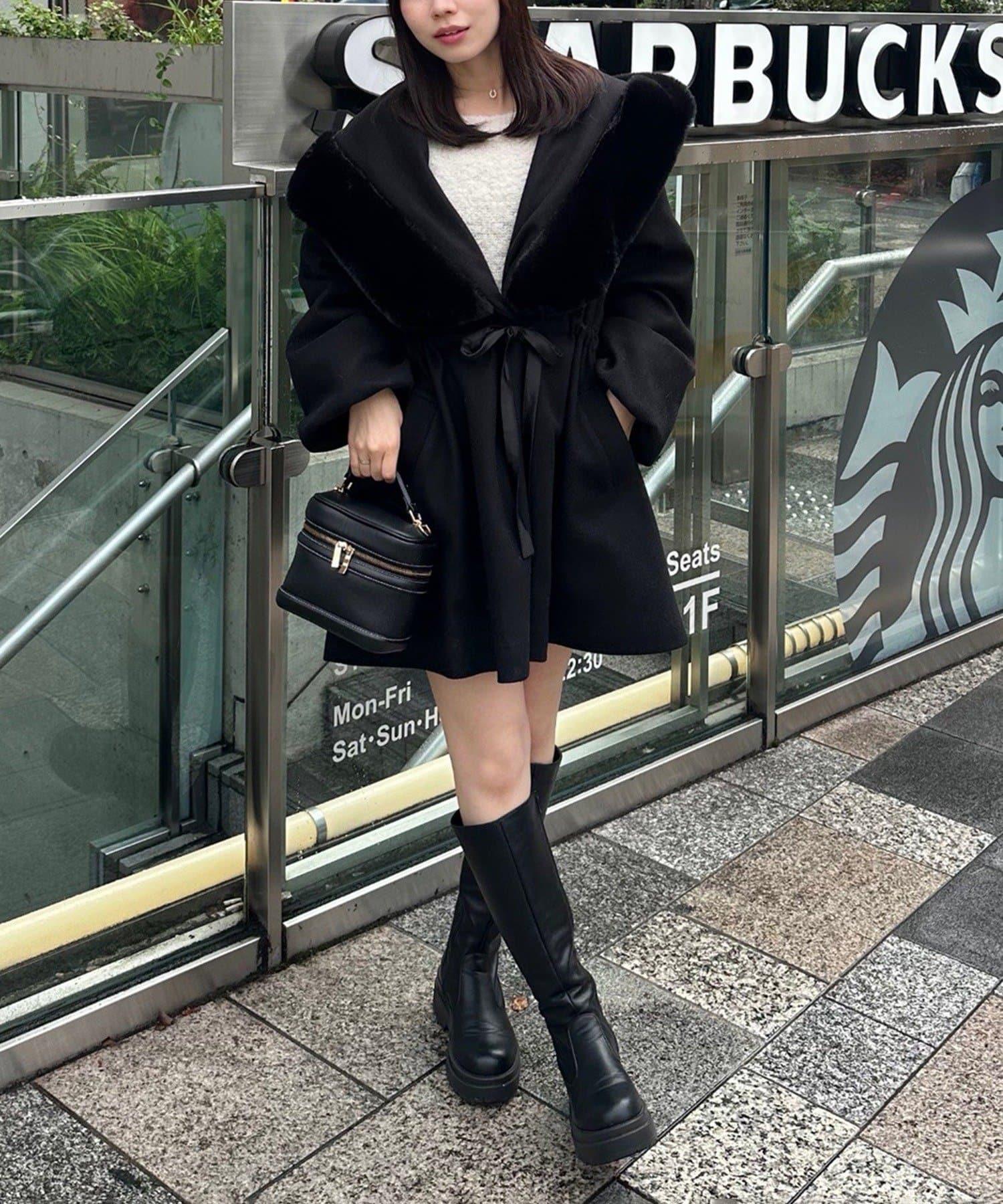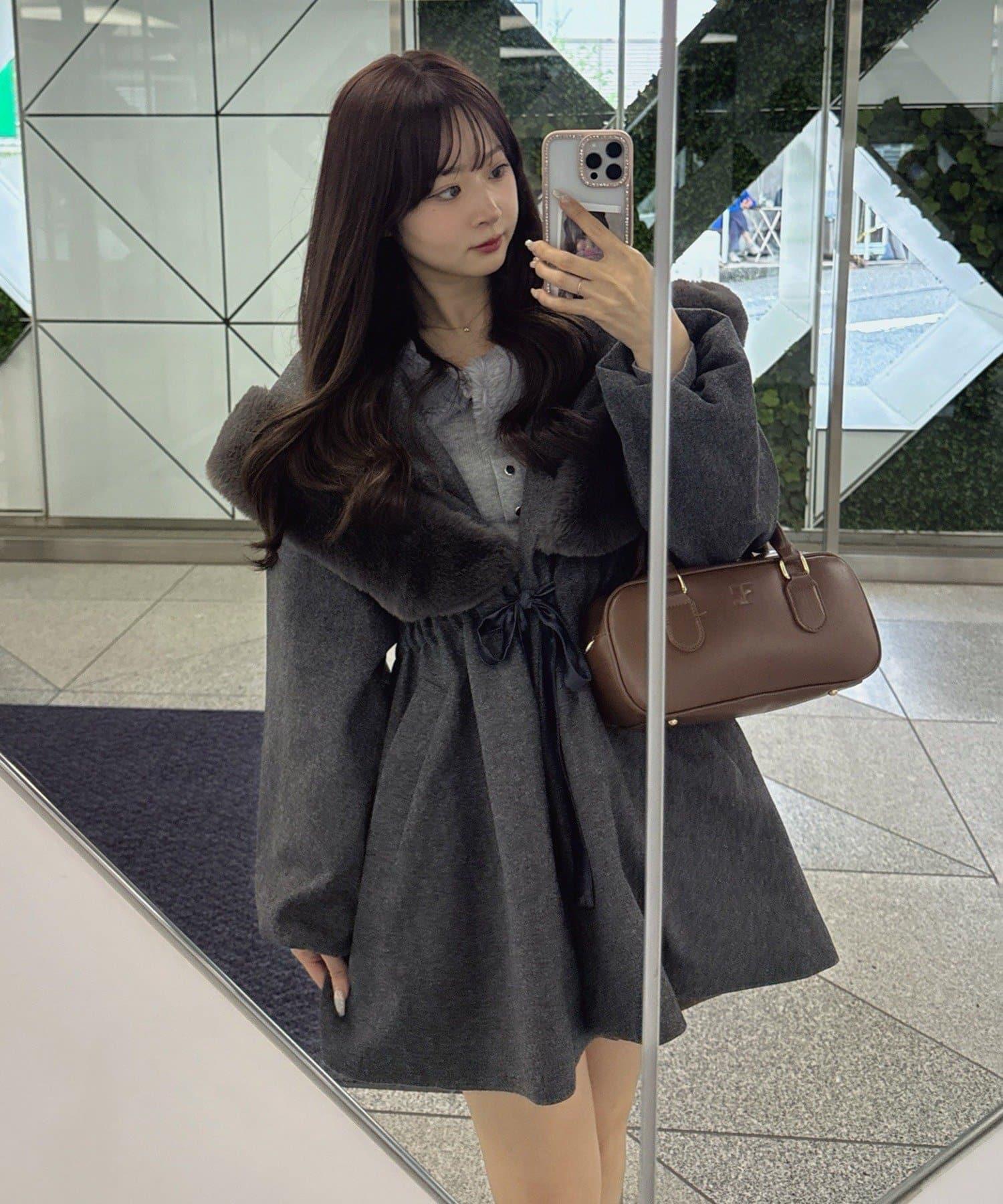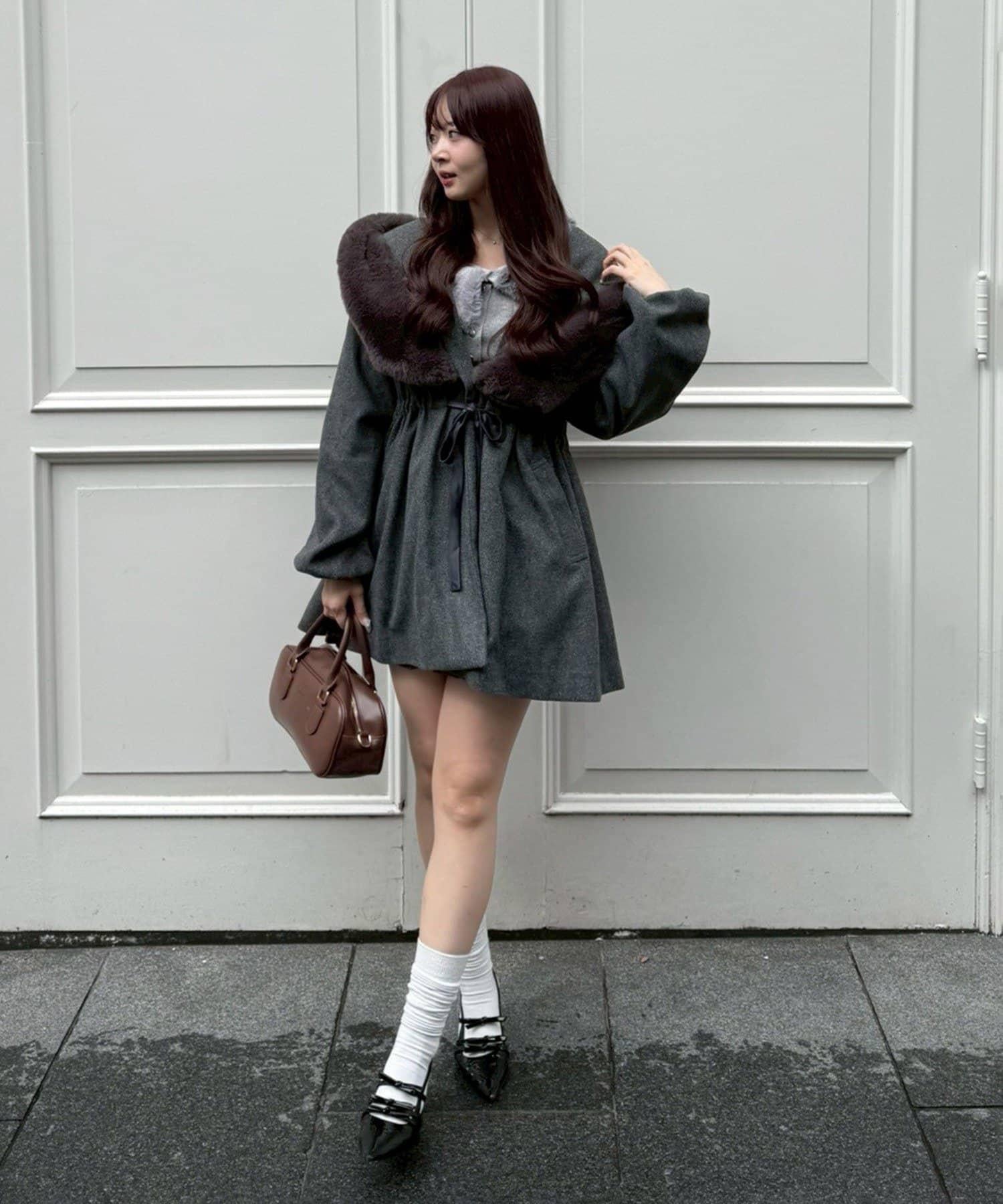 穿著感受:大面積的皮草連帽搭配出眾的小臉效果,讓人想一直穿著這件大衣。
