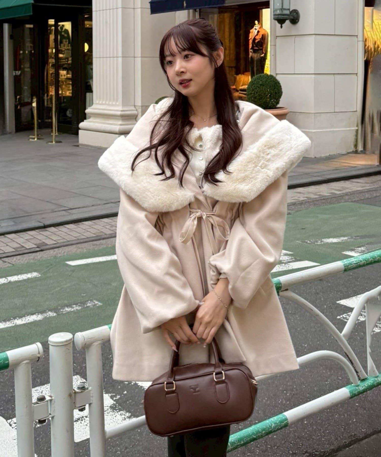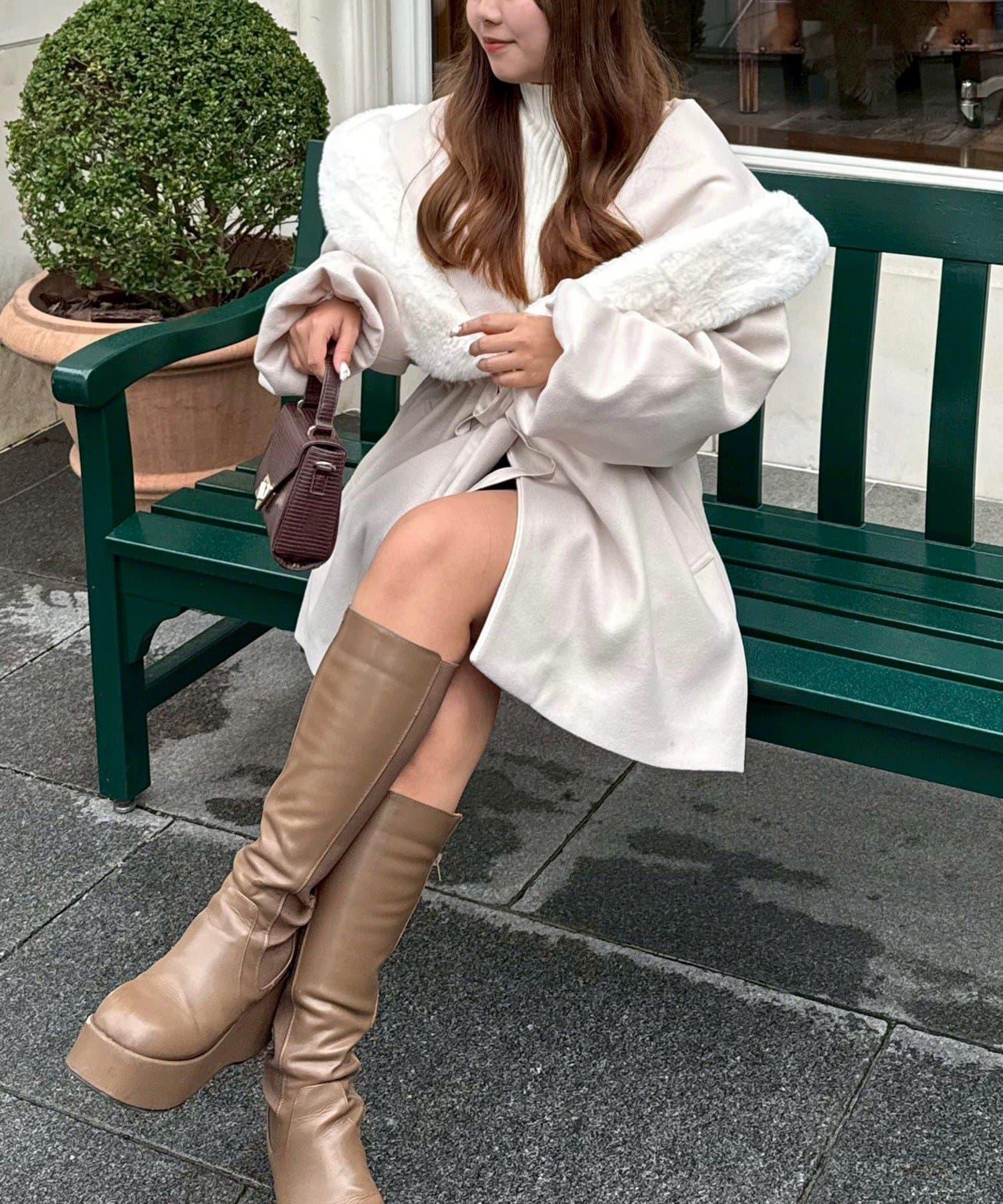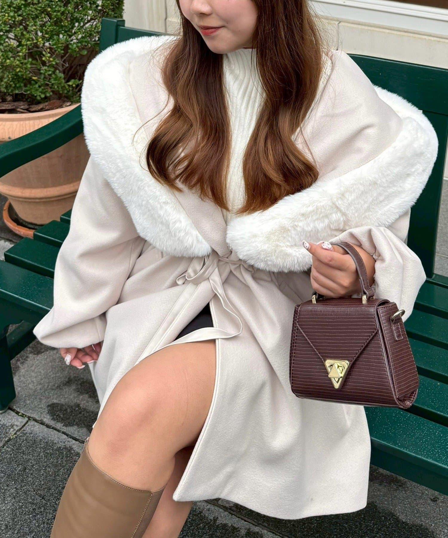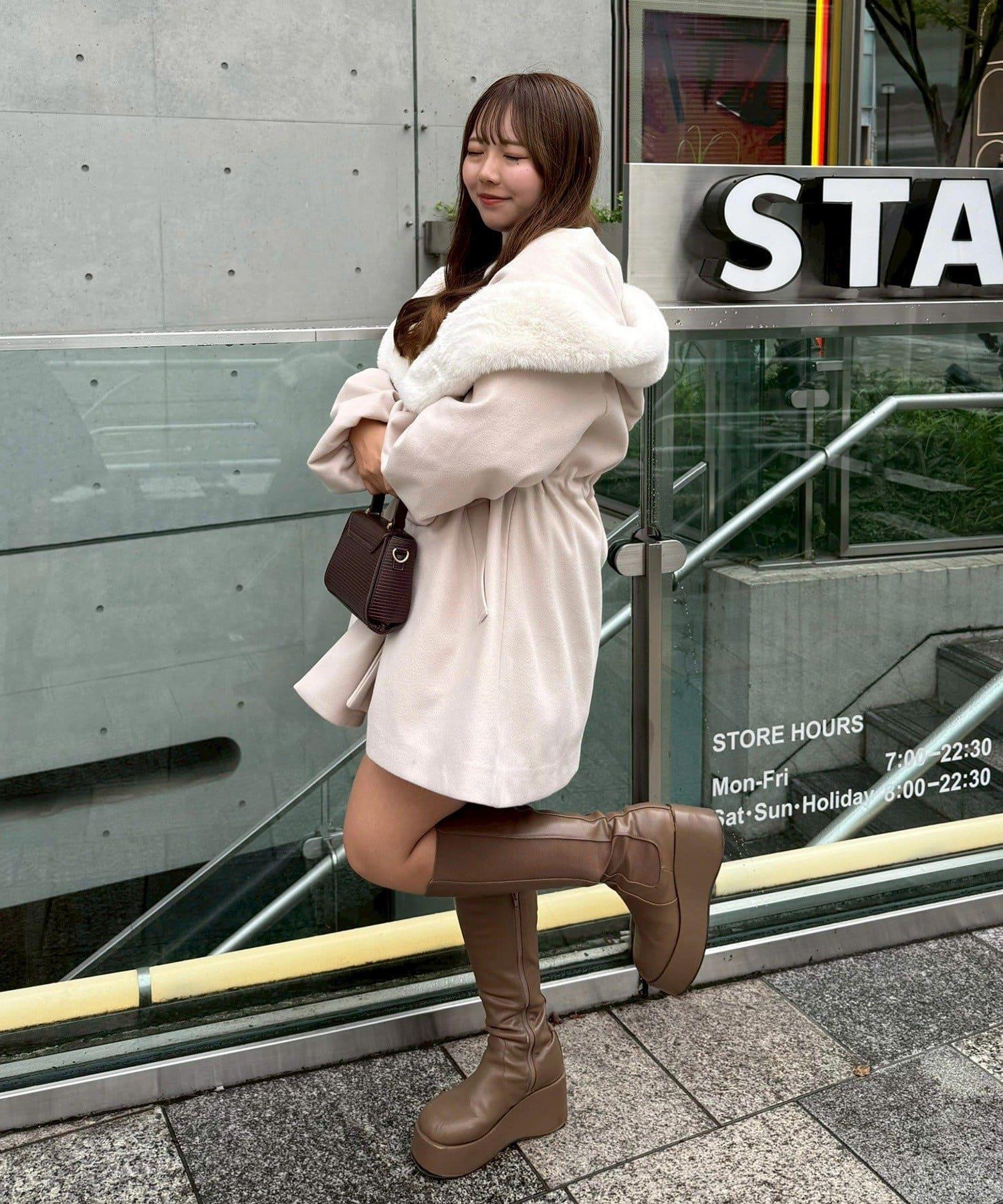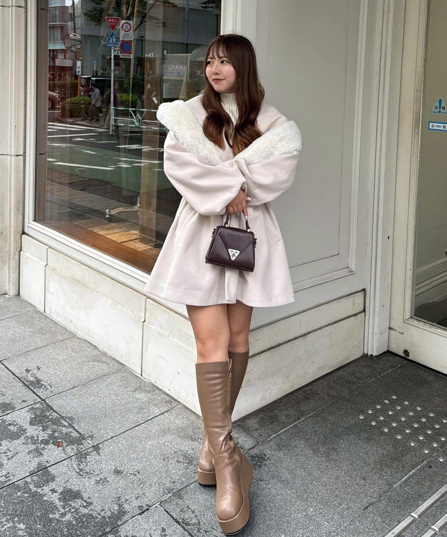 穿著感受:大面積的皮草連帽搭配出眾的小臉效果,讓人想一直穿著這件大衣。