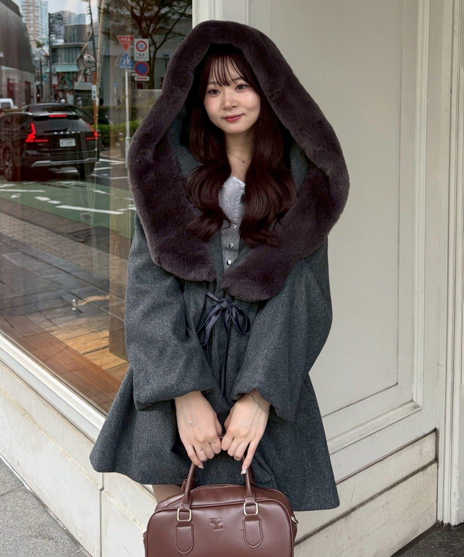 寬大的連帽設計給人留下深刻印象,蓬鬆的皮草則為大衣增添了女人味。