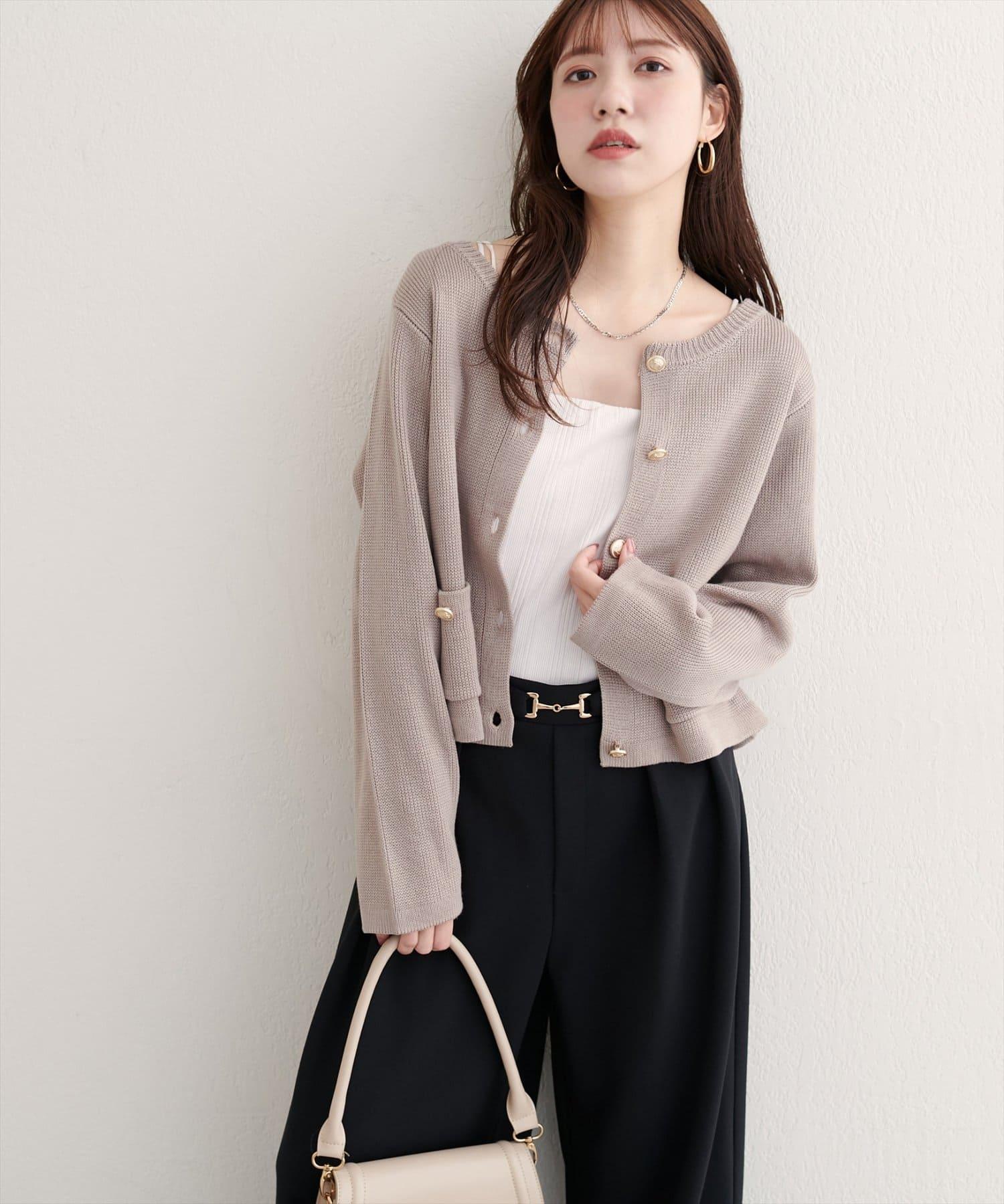 紐扣口袋開衫設計簡約,既能融入日常生活,又能彰顯微妙的個性。