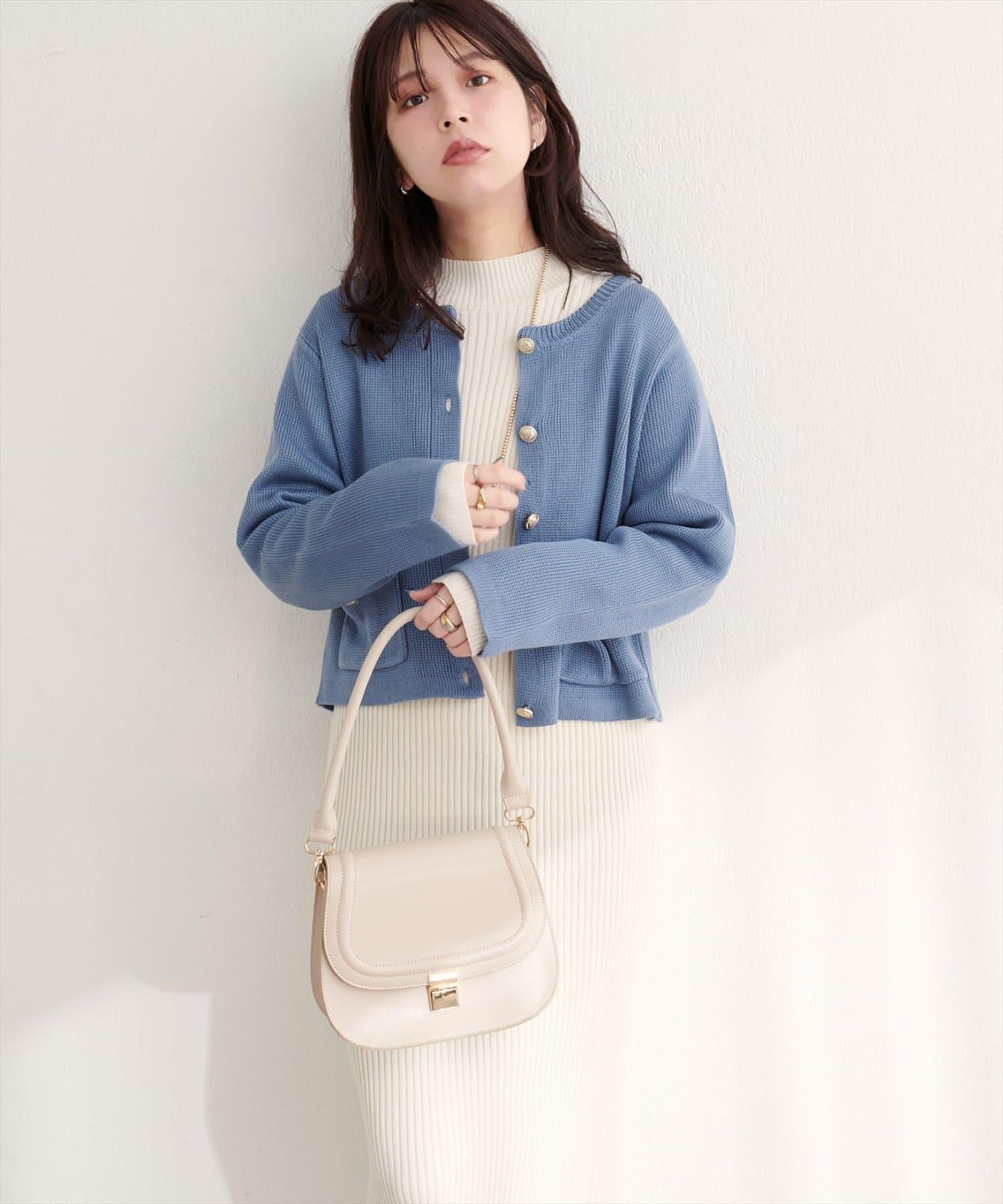 正面裝飾的金色紐扣使其看起來優雅精緻。