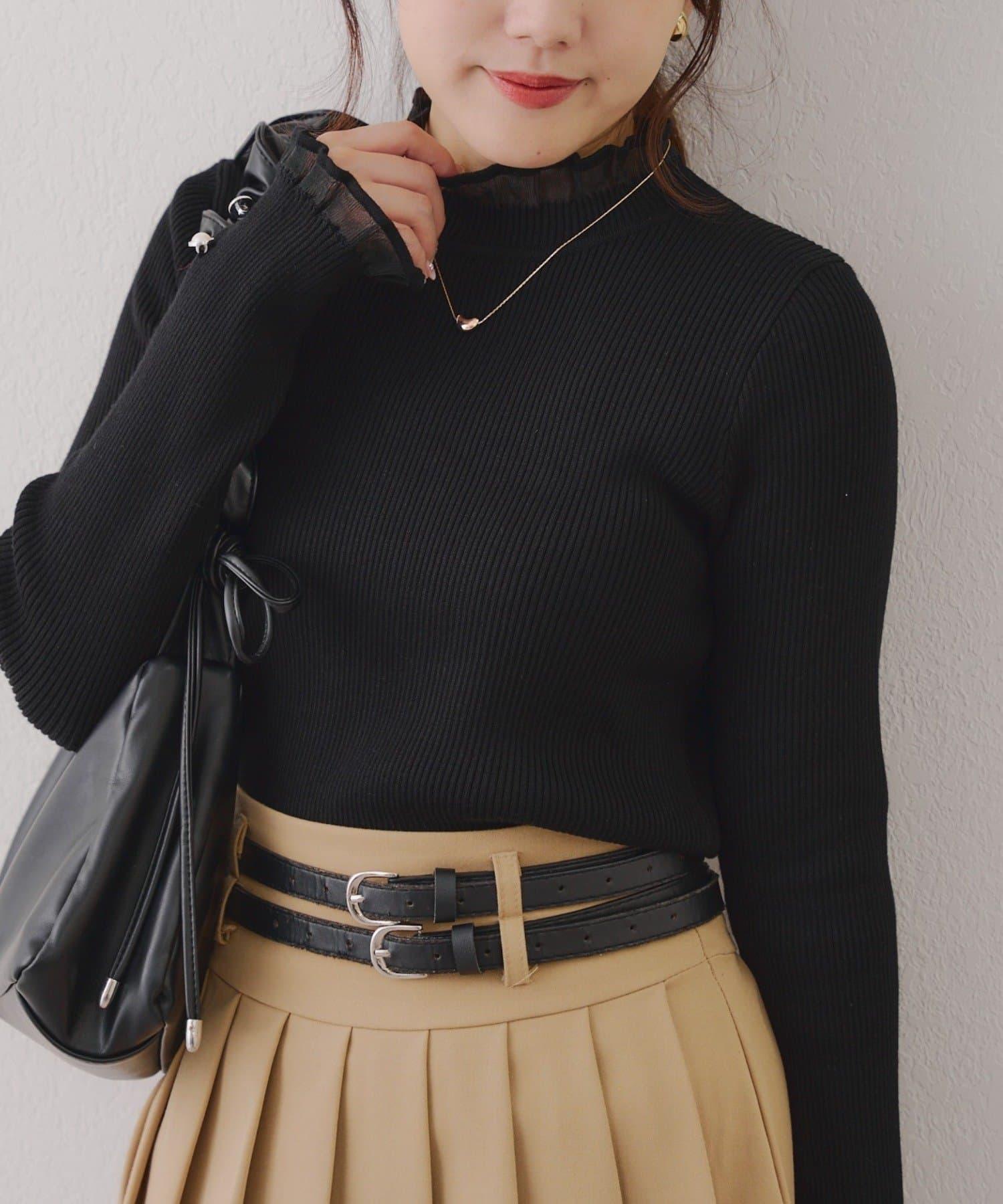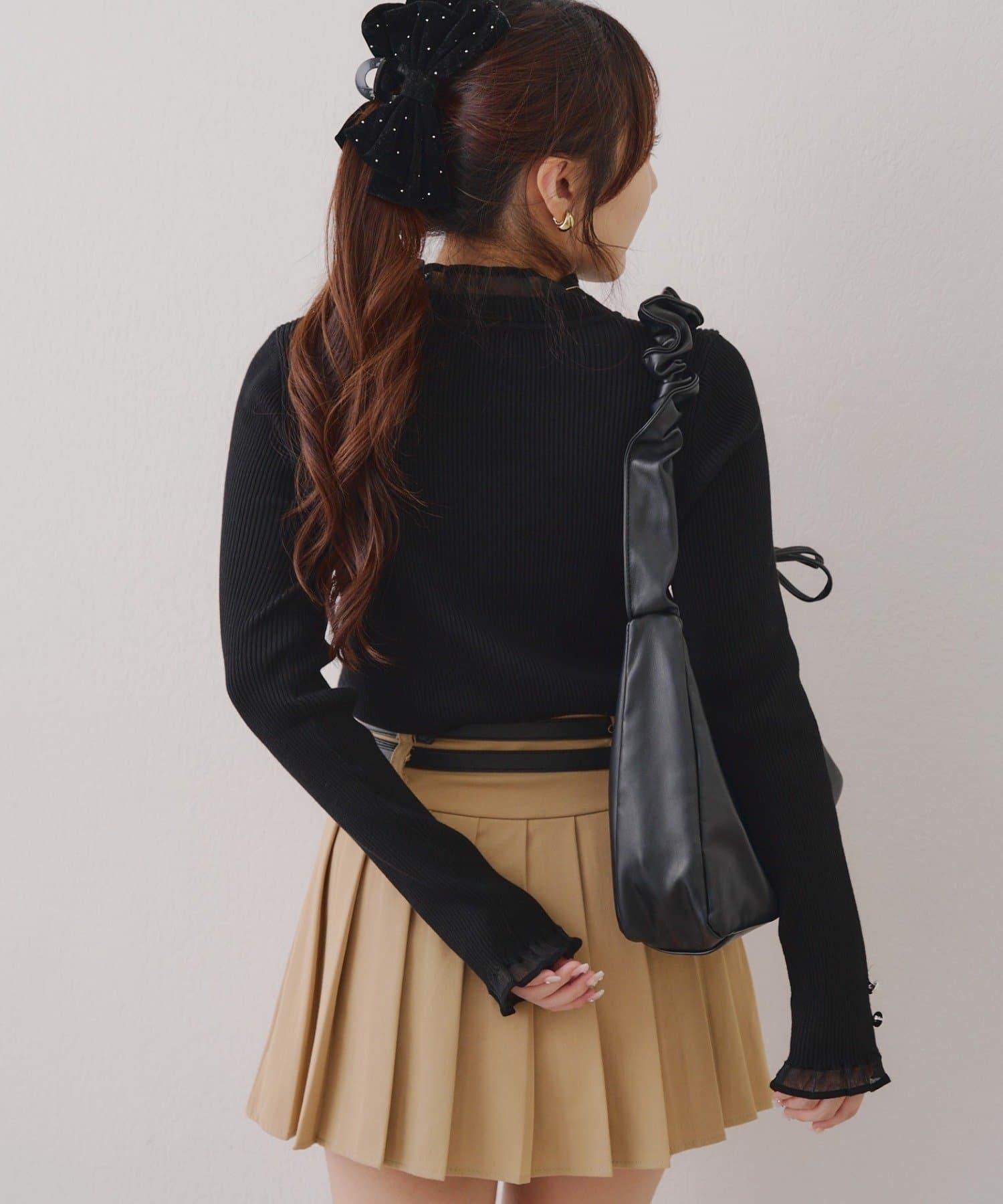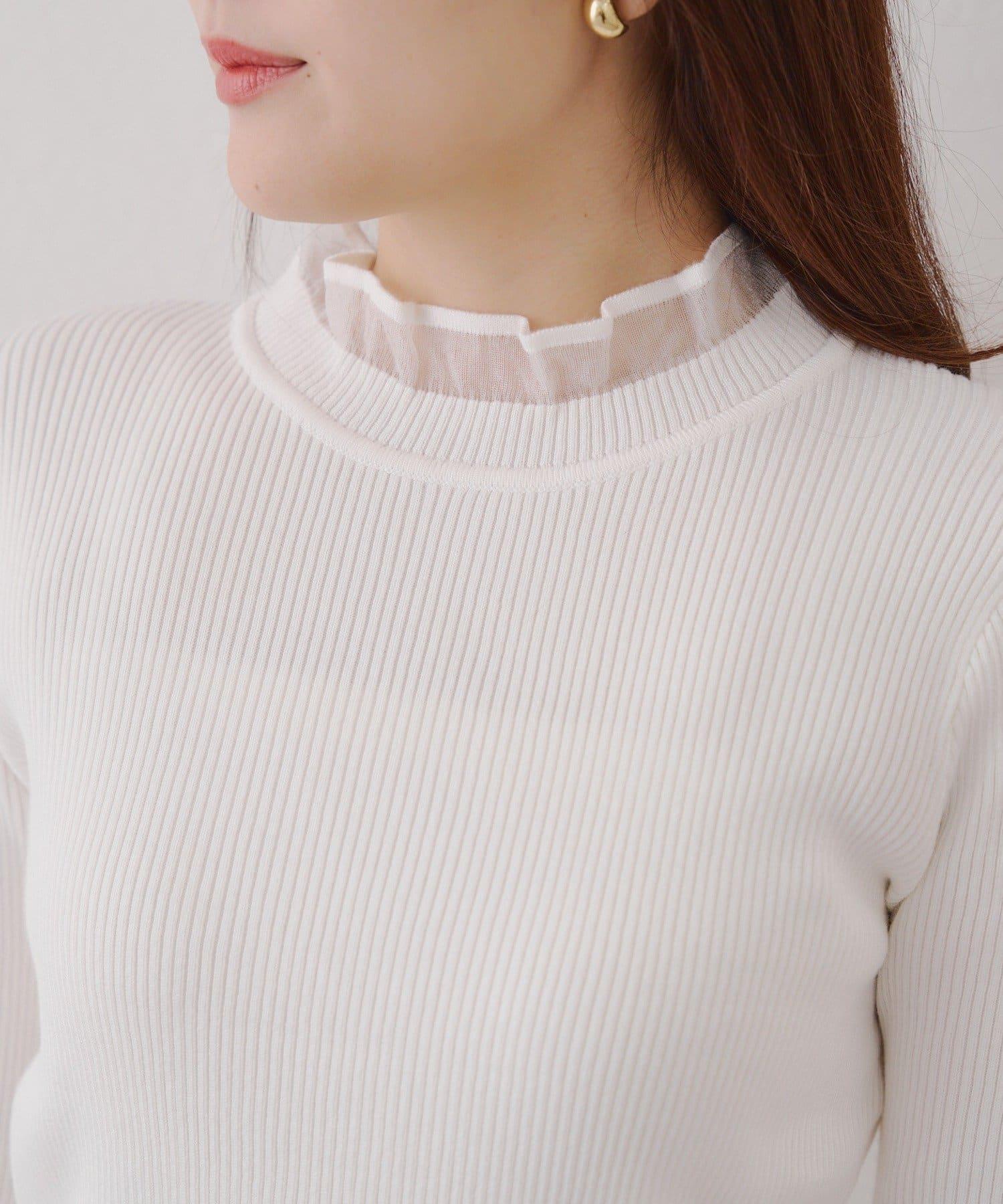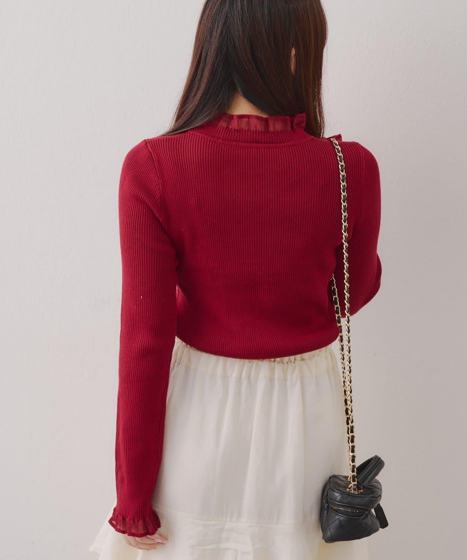 頸部和袖口採用風琴面料,使針織衫呈現出適度的半透明效果,顯得優雅大方。