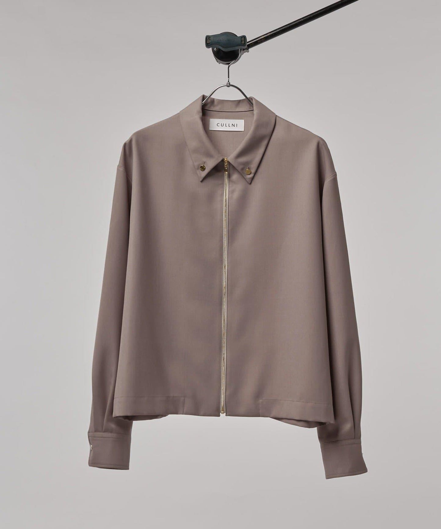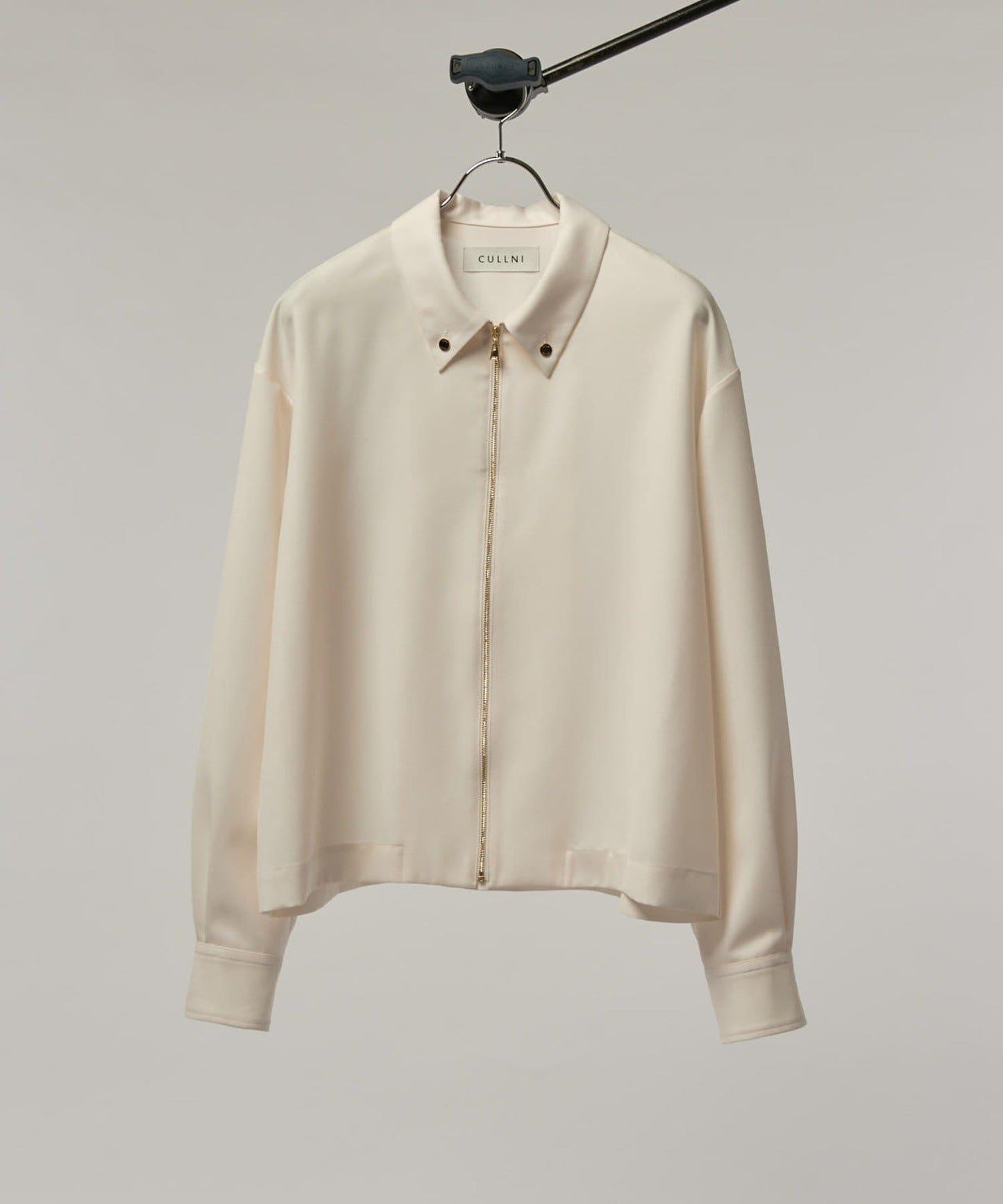 這是一款給人休閒印象的紐扣襯衫,但採用了 CULLNI 的金色紐扣,給人優雅美麗的印象。前襟有拉鍊細節,這在襯衫中並不多見。這是 CULLNI 👍的單品。