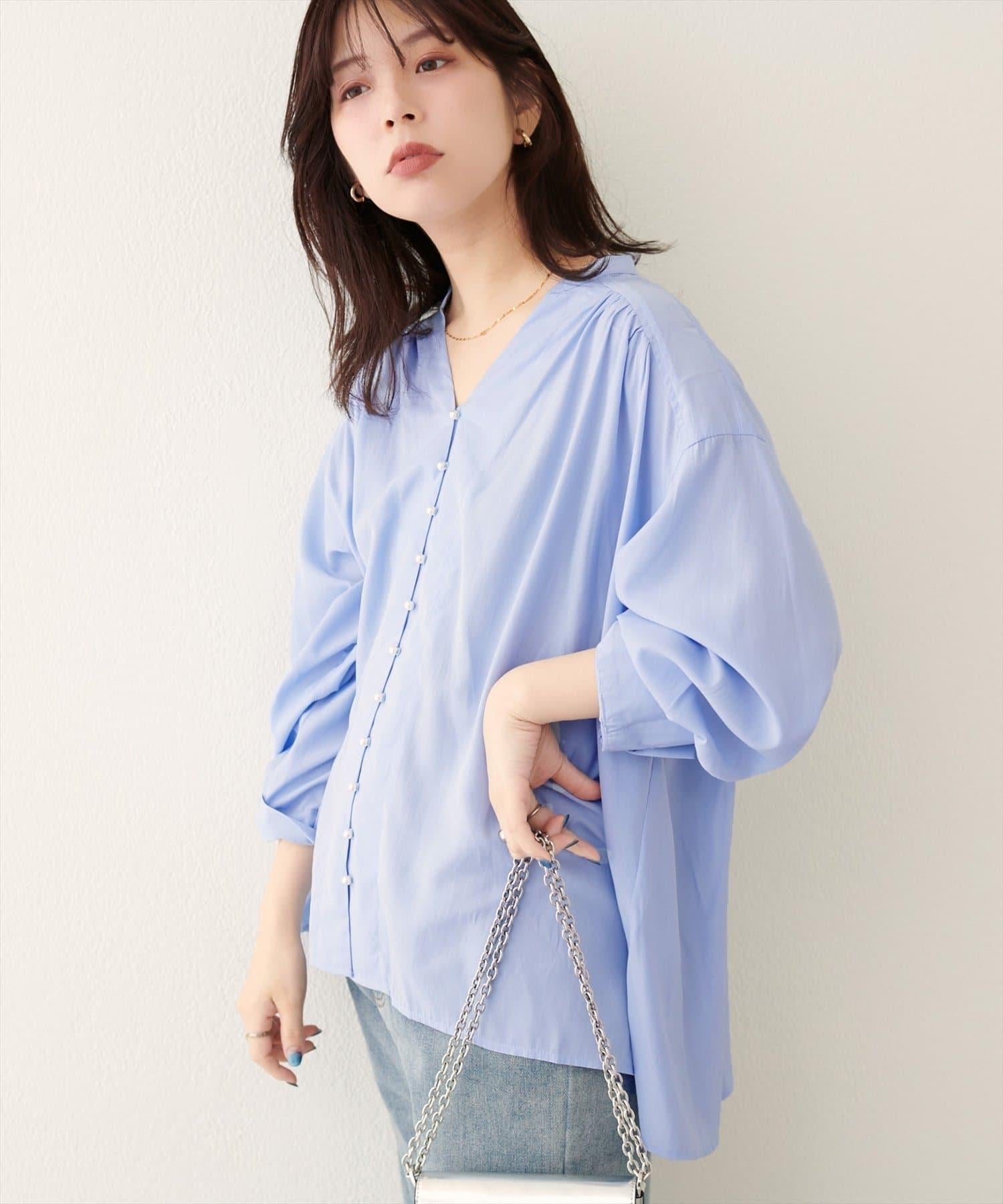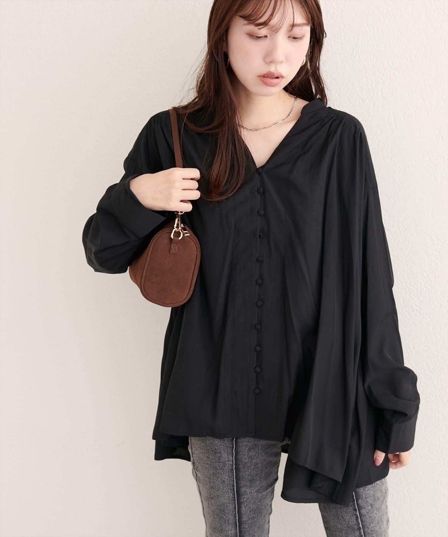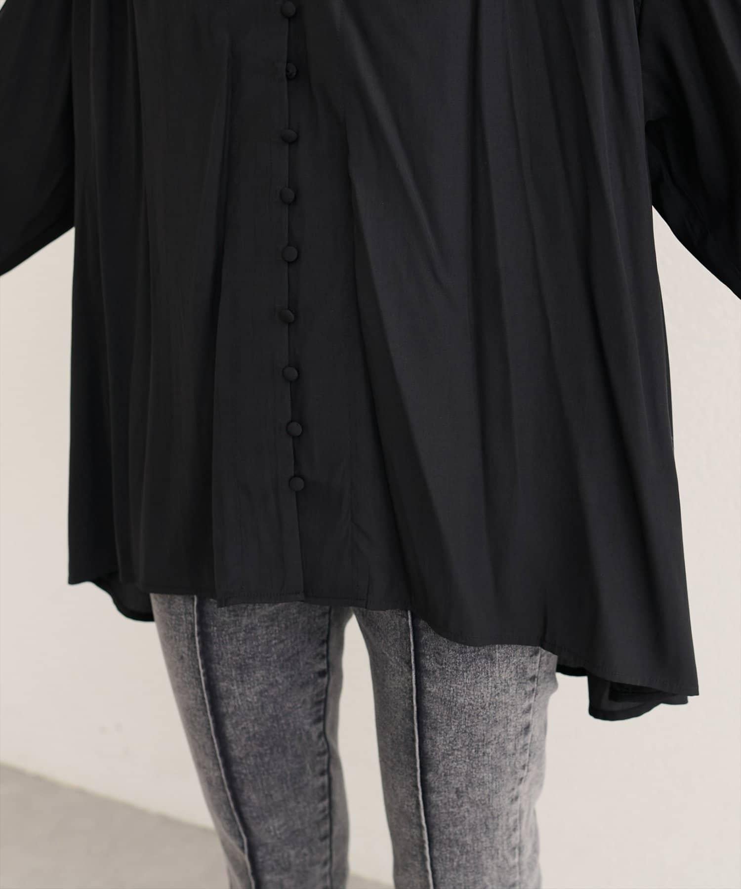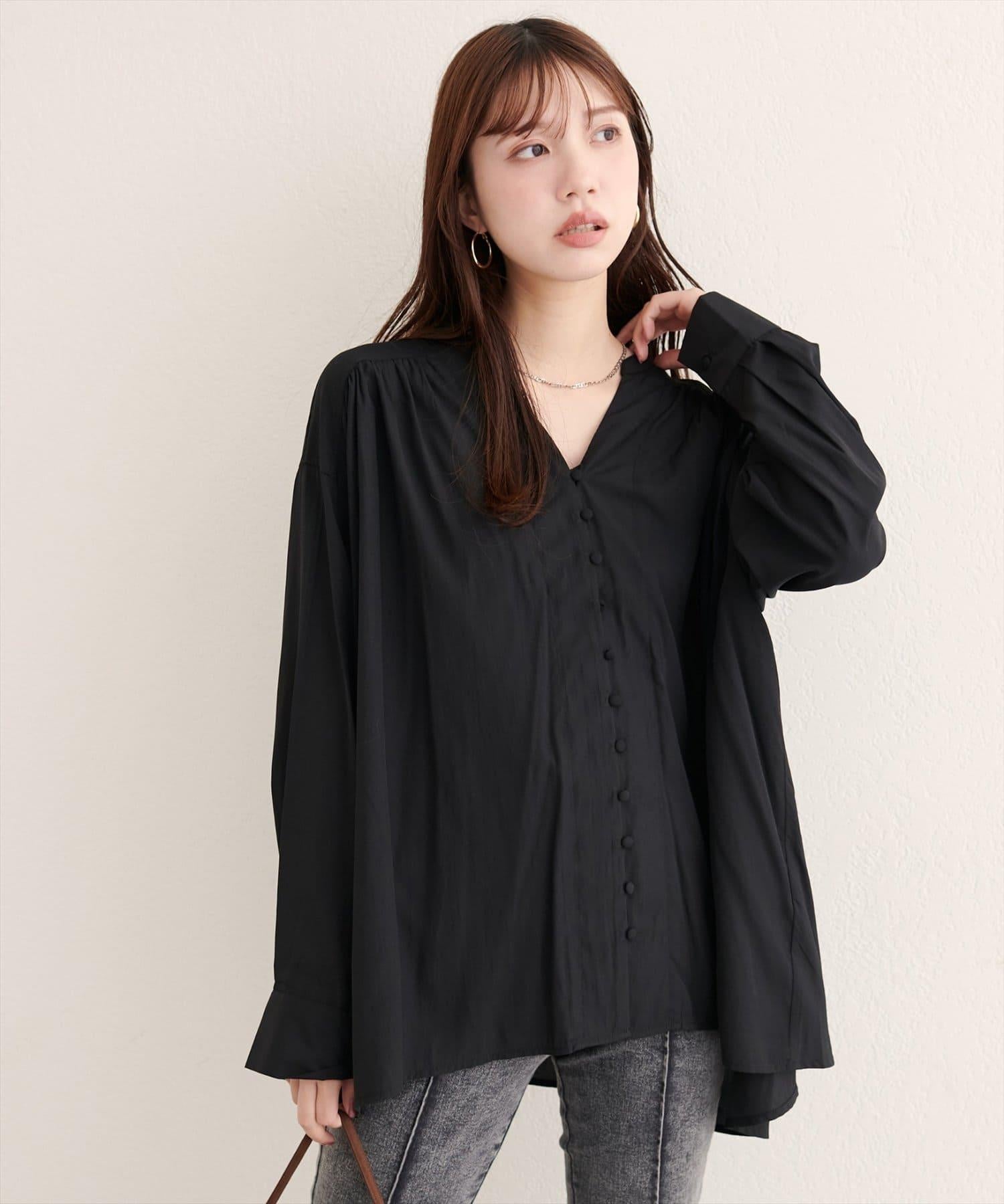帶紐扣開口的寬鬆襯衫上衣,適合成人穿著,既寬鬆又優雅。