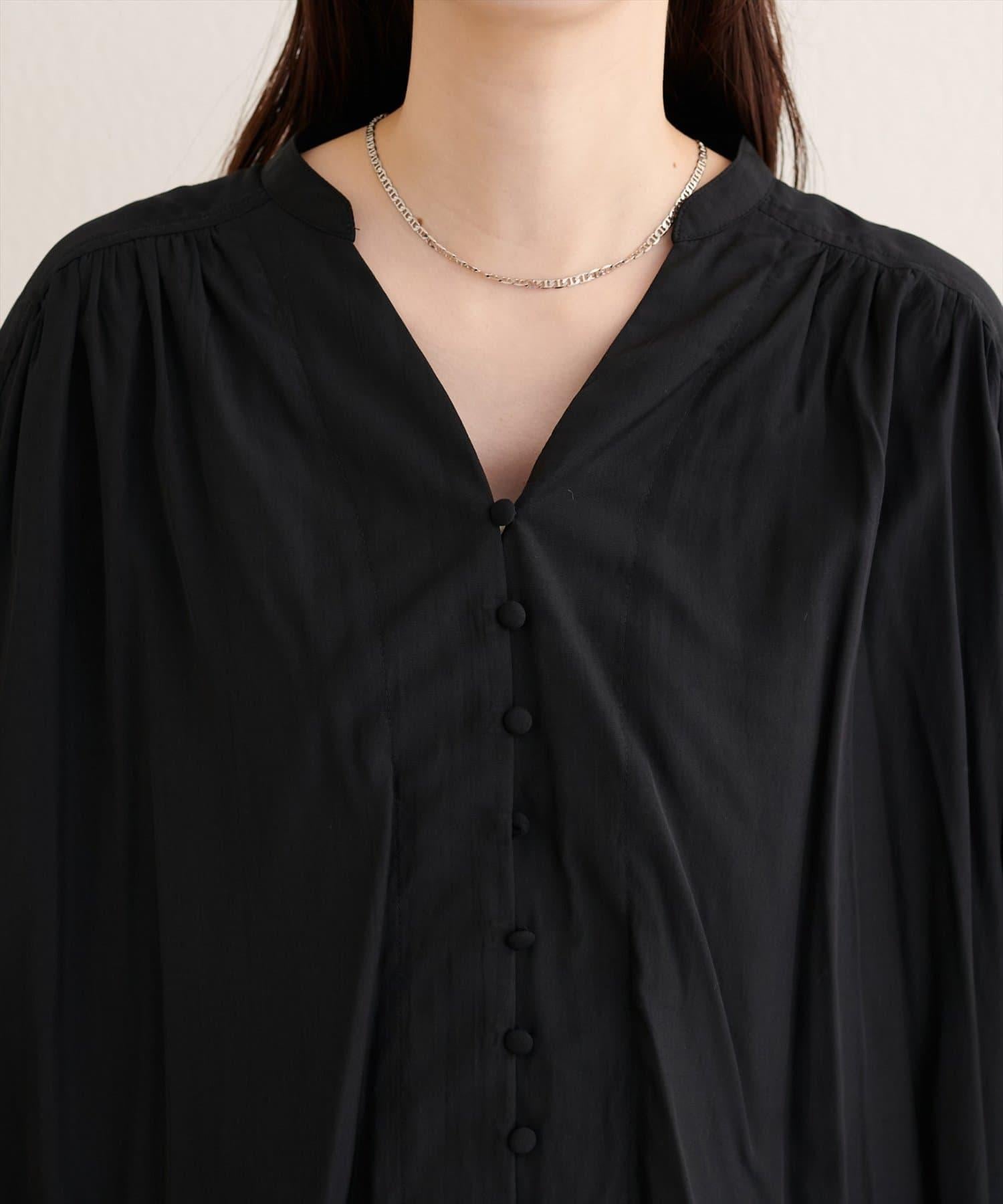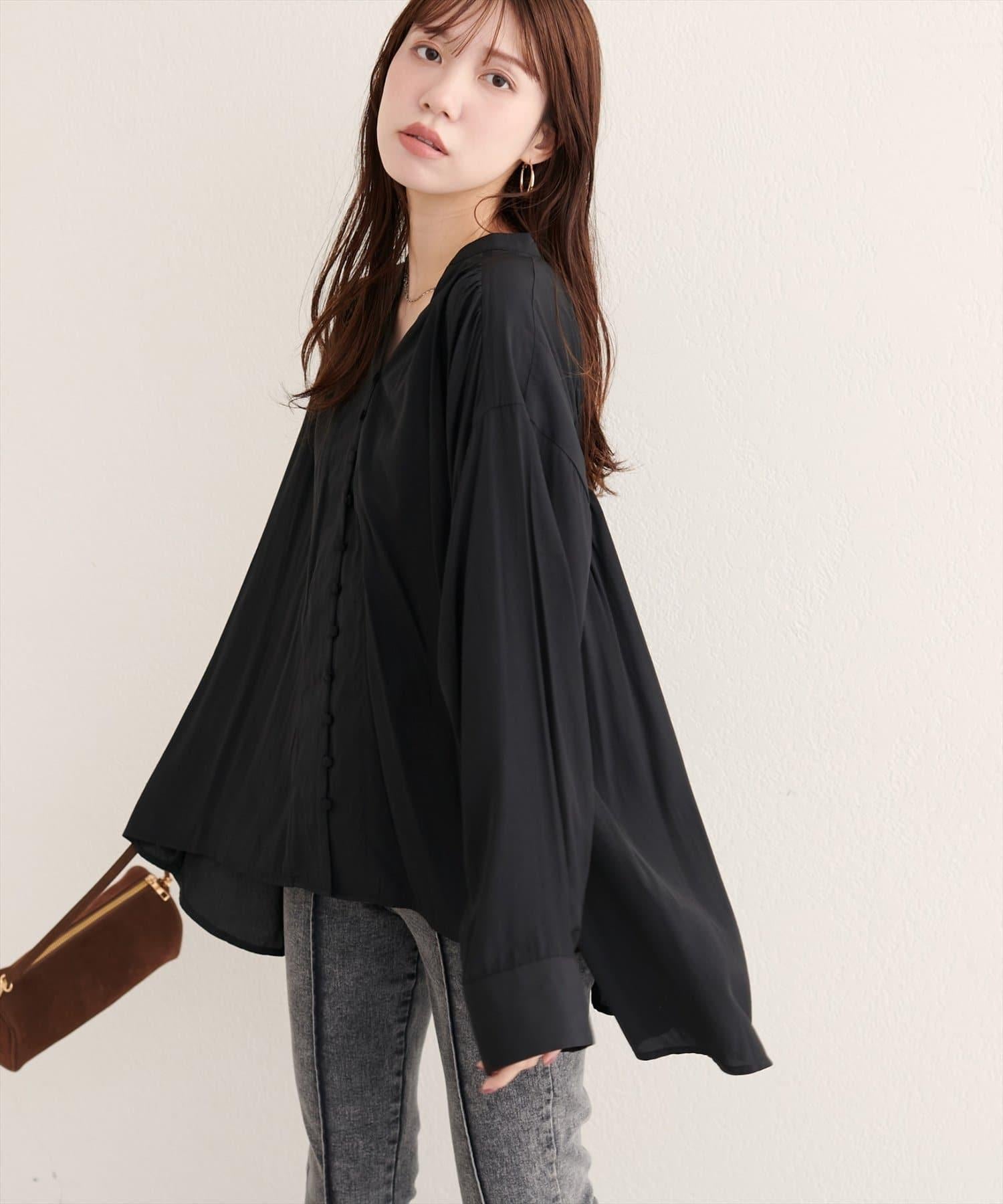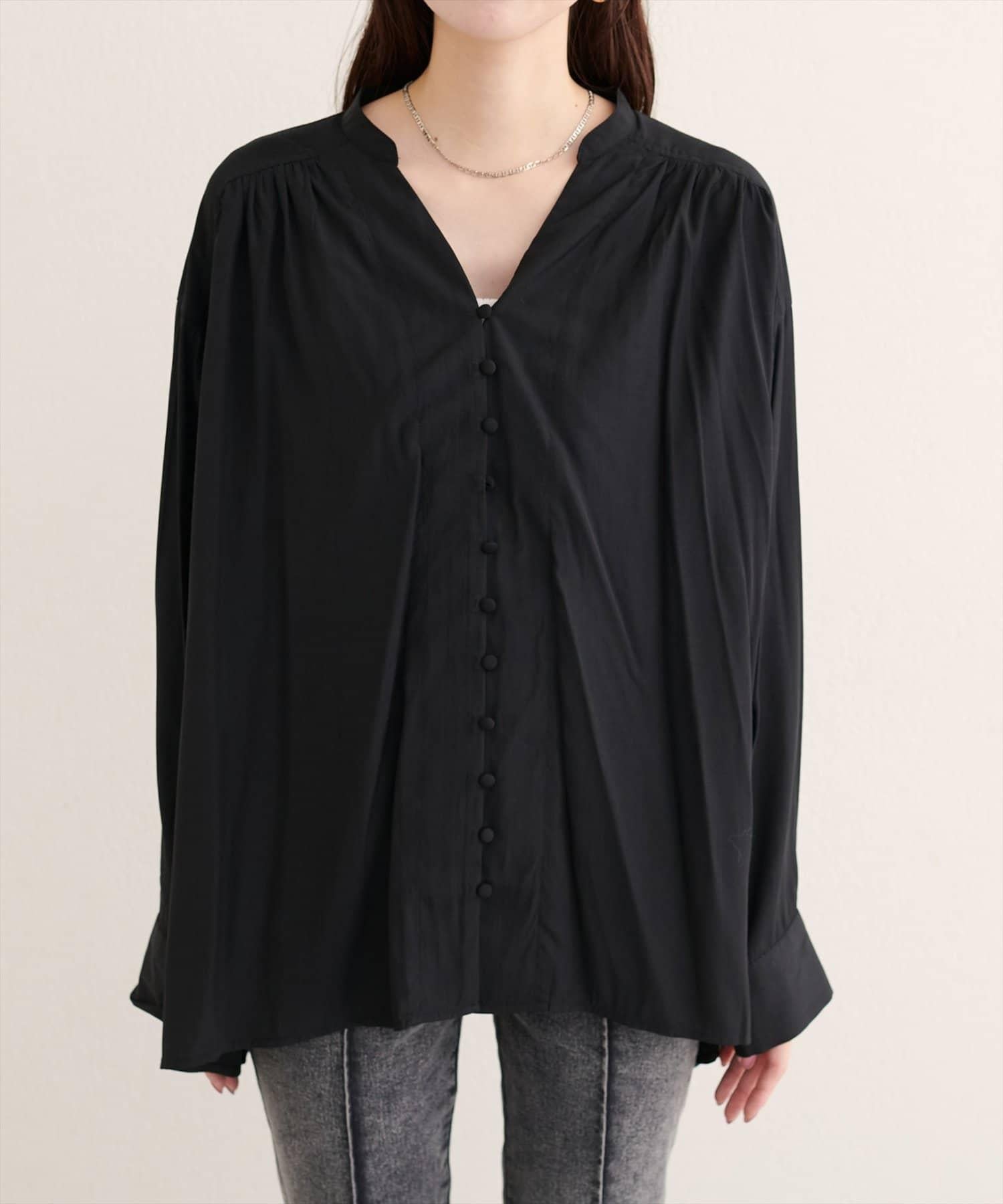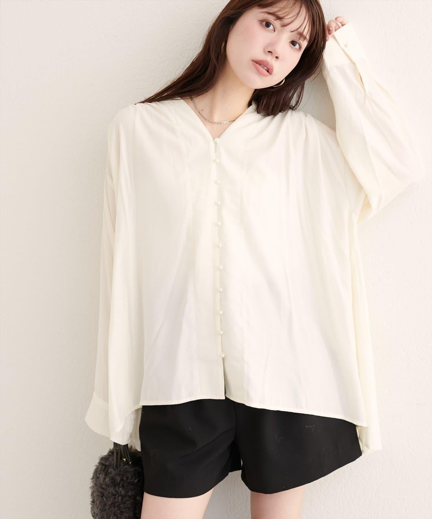 帶紐扣開口的寬鬆襯衫上衣,適合成人穿著,既寬鬆又優雅。