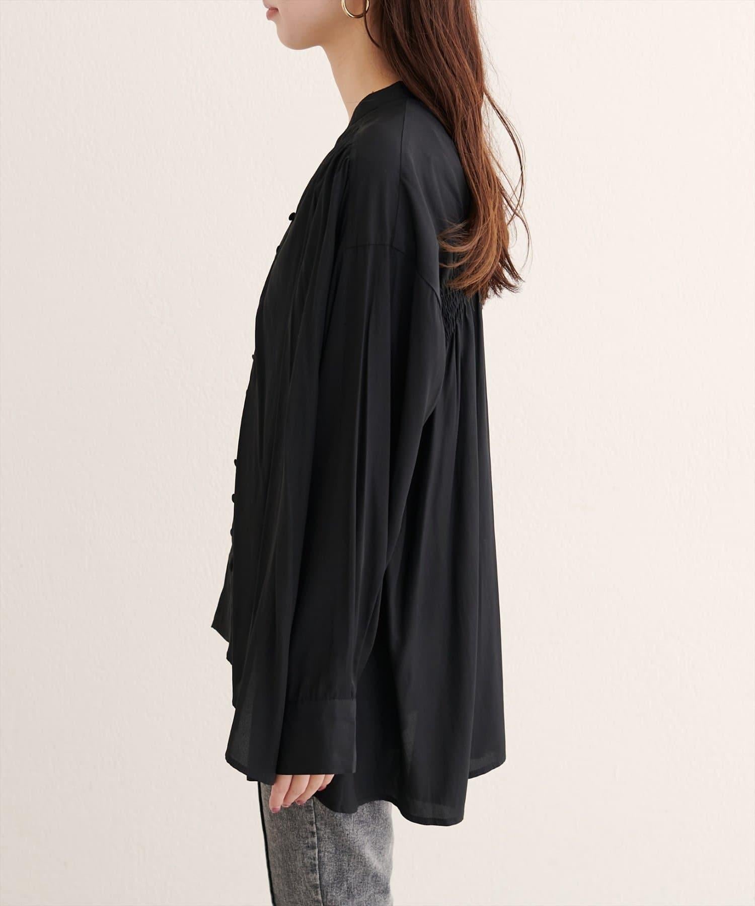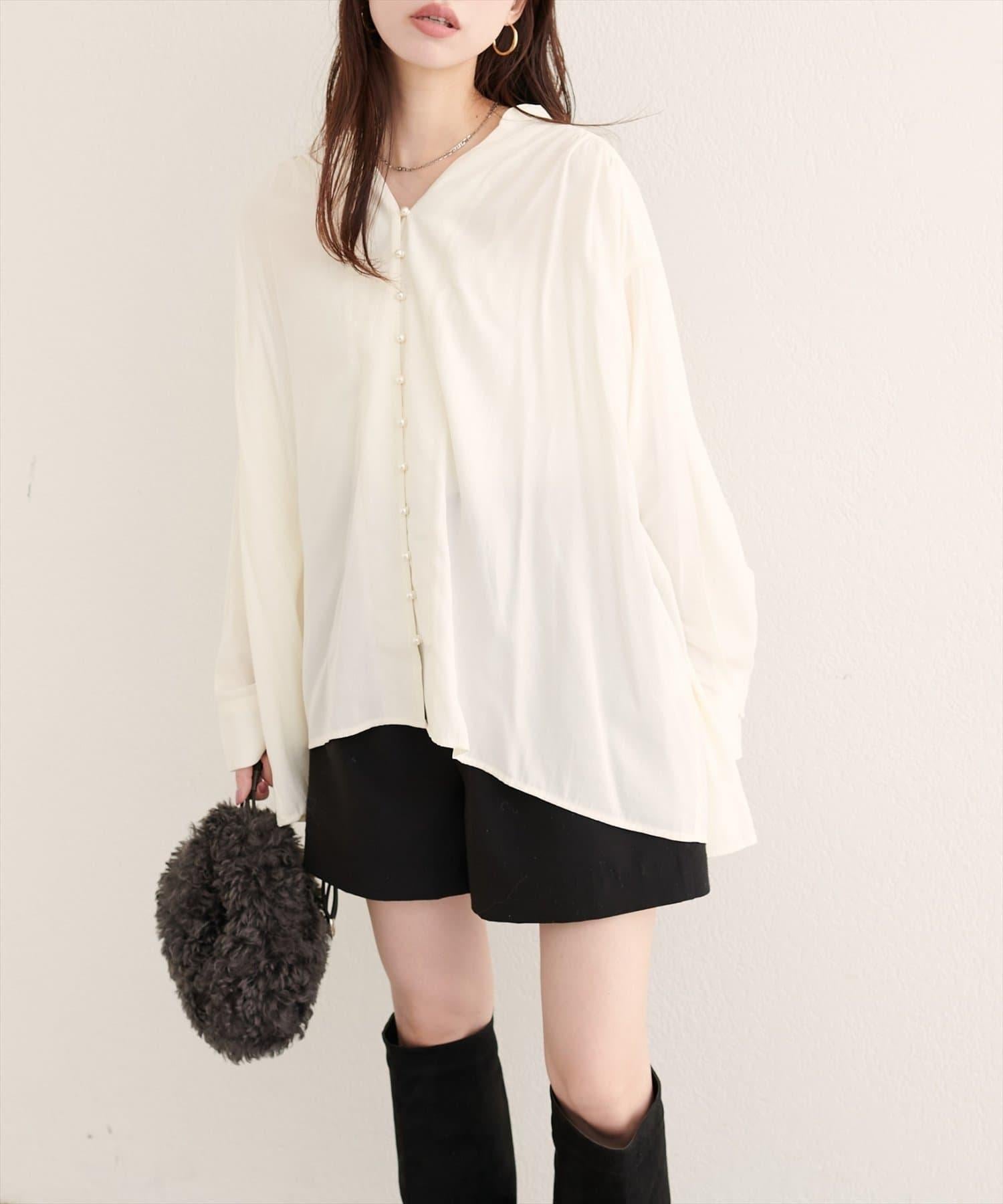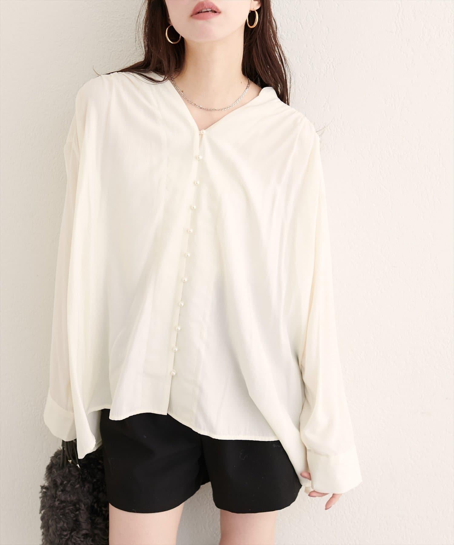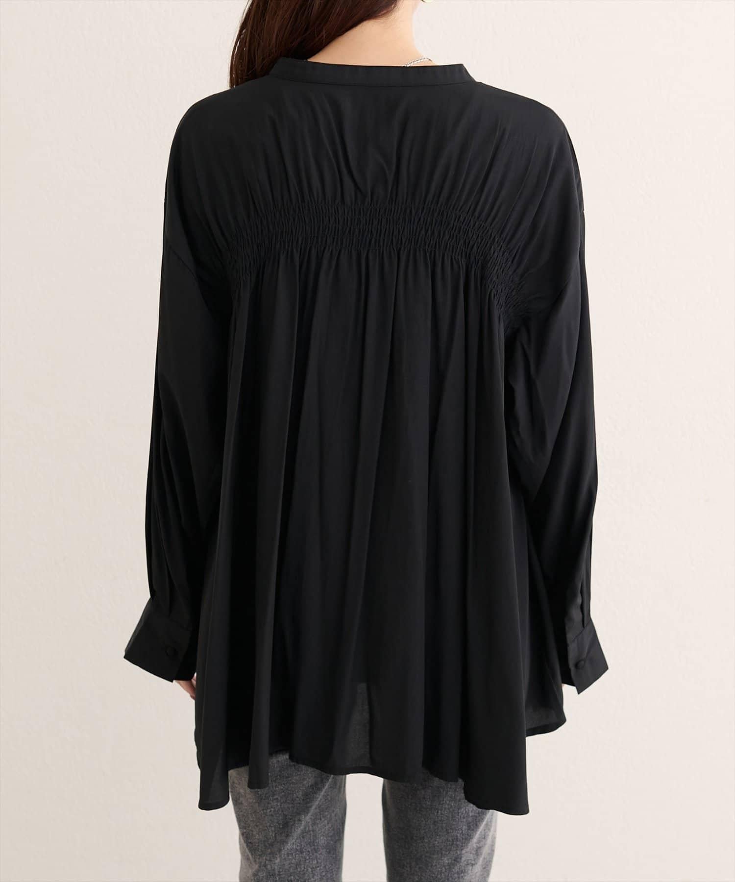 帶紐扣開口的寬鬆襯衫上衣,適合成人穿著,既寬鬆又優雅。