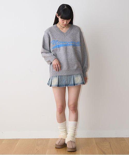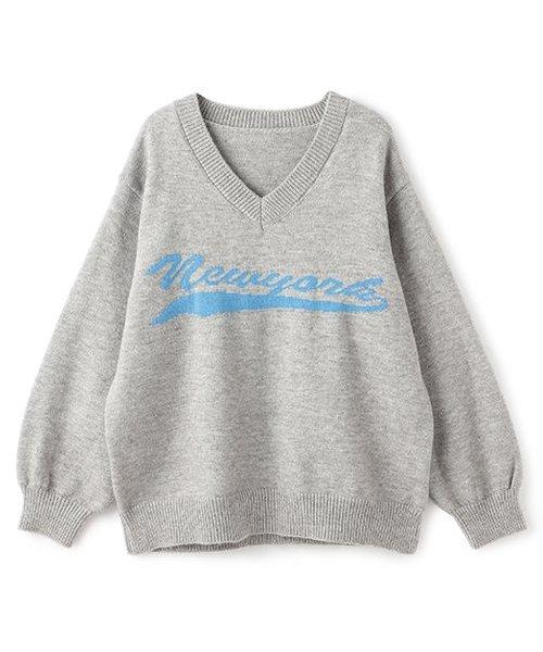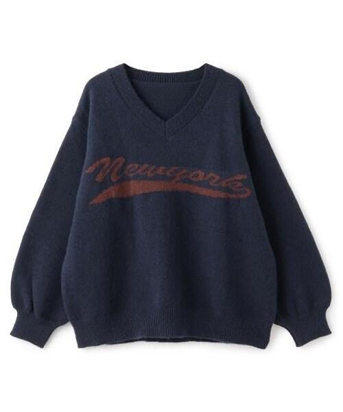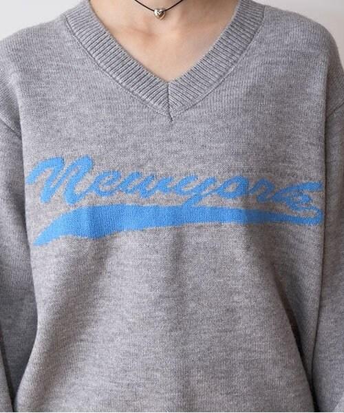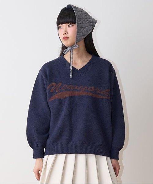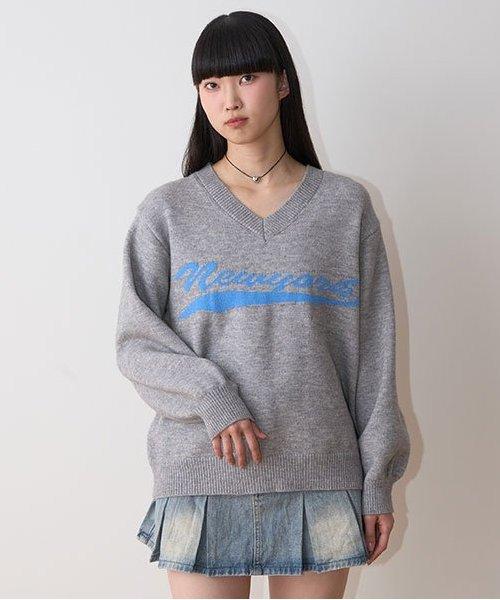 V 領針織衫,帶有徽標裝飾(韓國進口)。