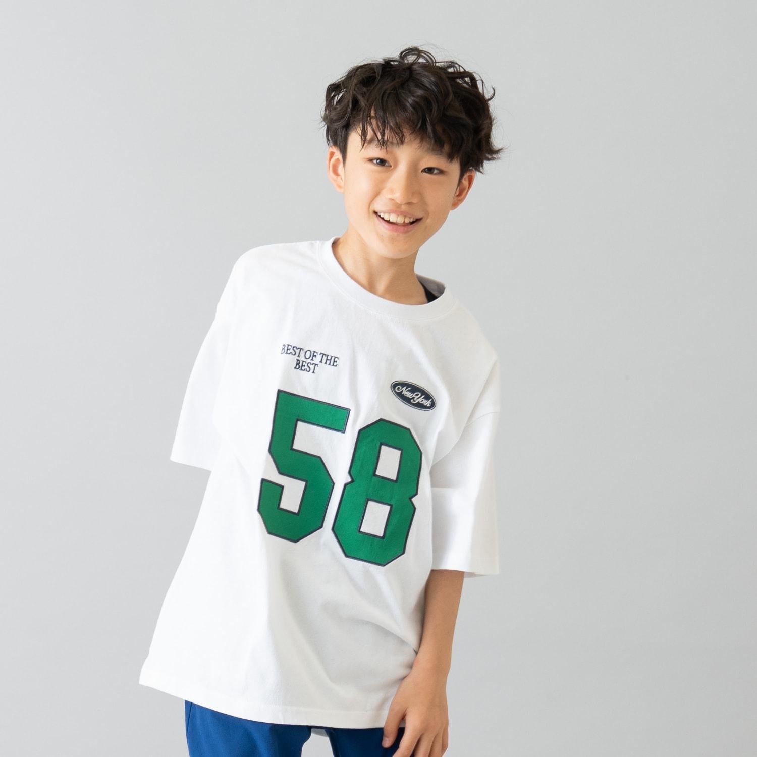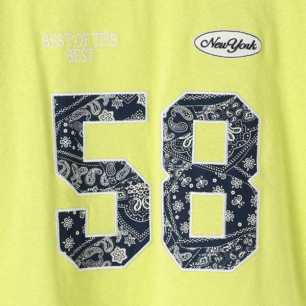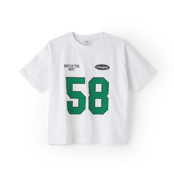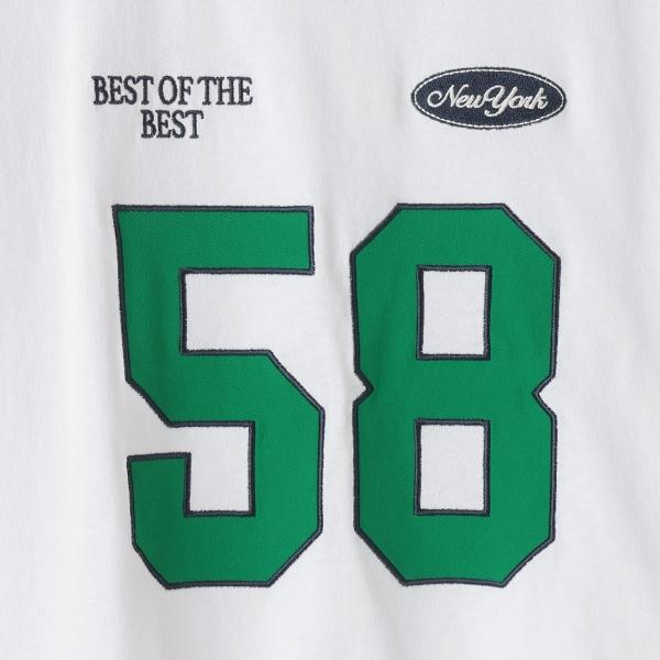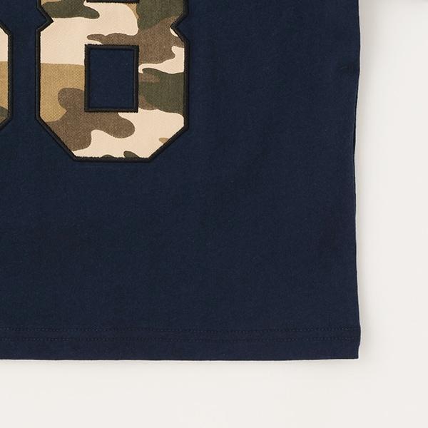 一款具有運動潮流意識的編號 T 恤,繡有徽標和拼接設計!