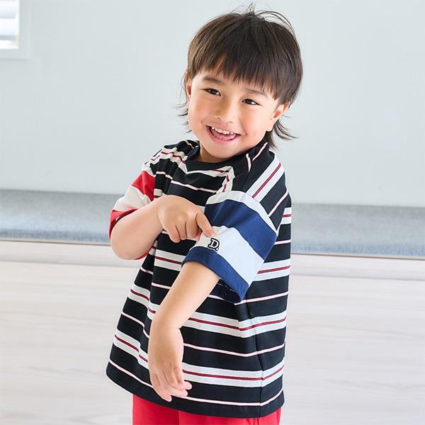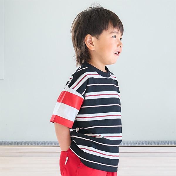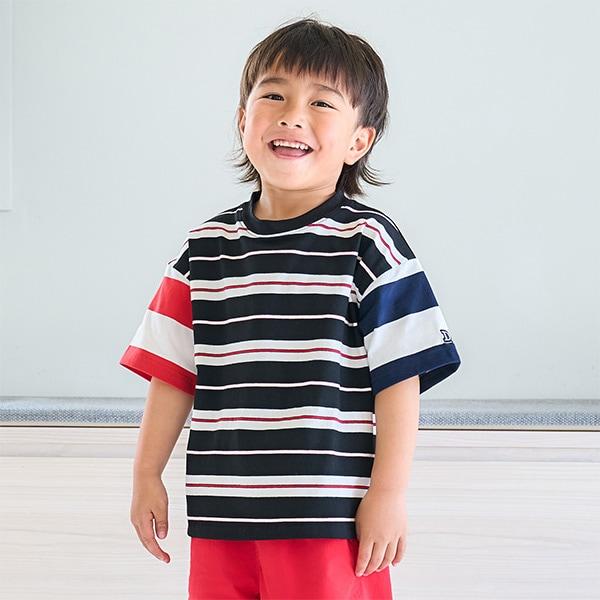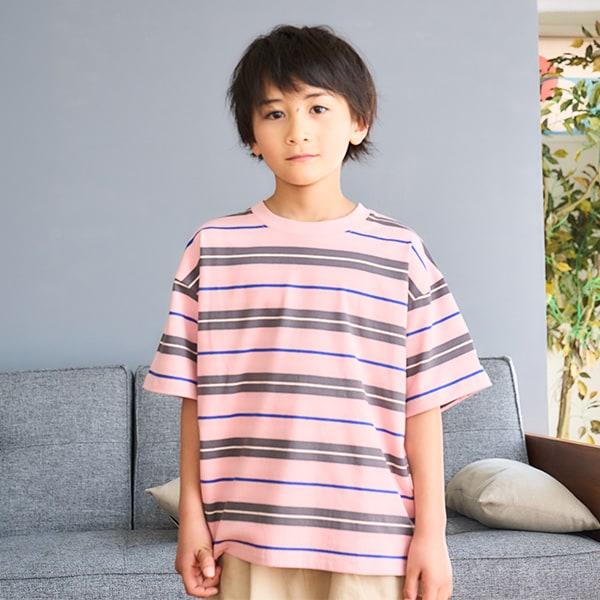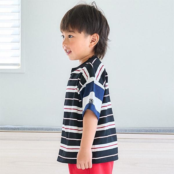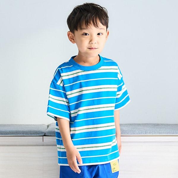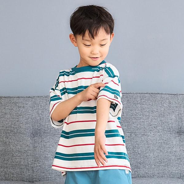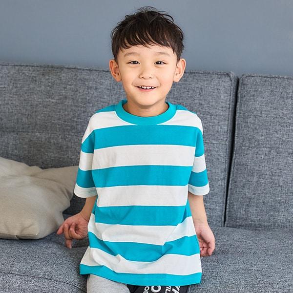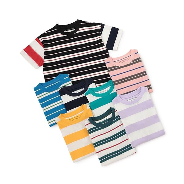 【純棉100%】【365D.】多色條紋寬鬆短袖T恤