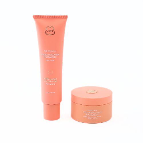 含植物膠原蛋白和維生素 C 的氨基酸洗髮水和細杏籽磨砂膏、