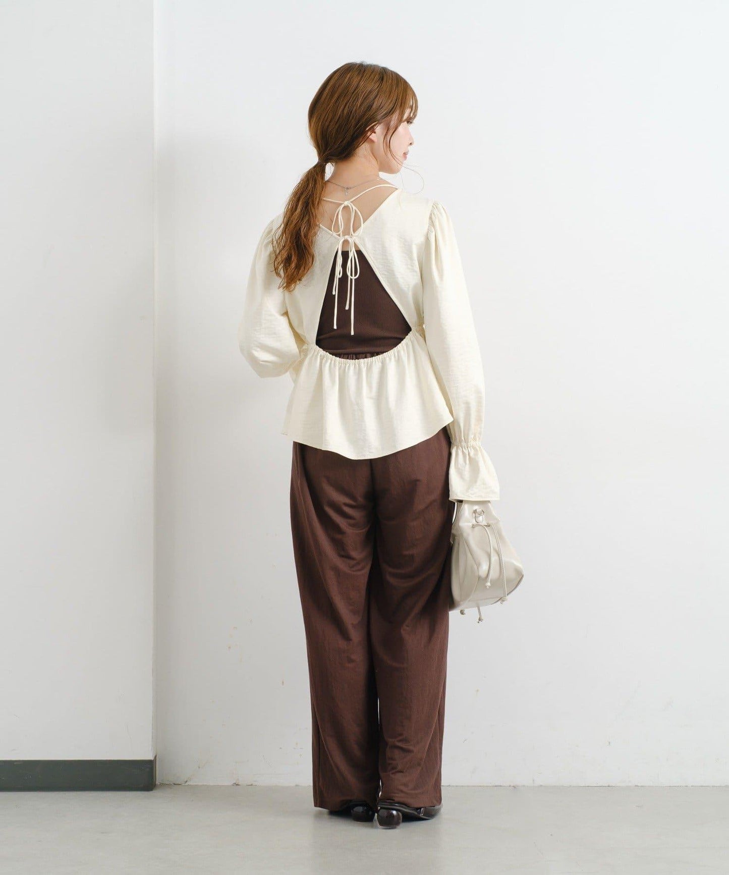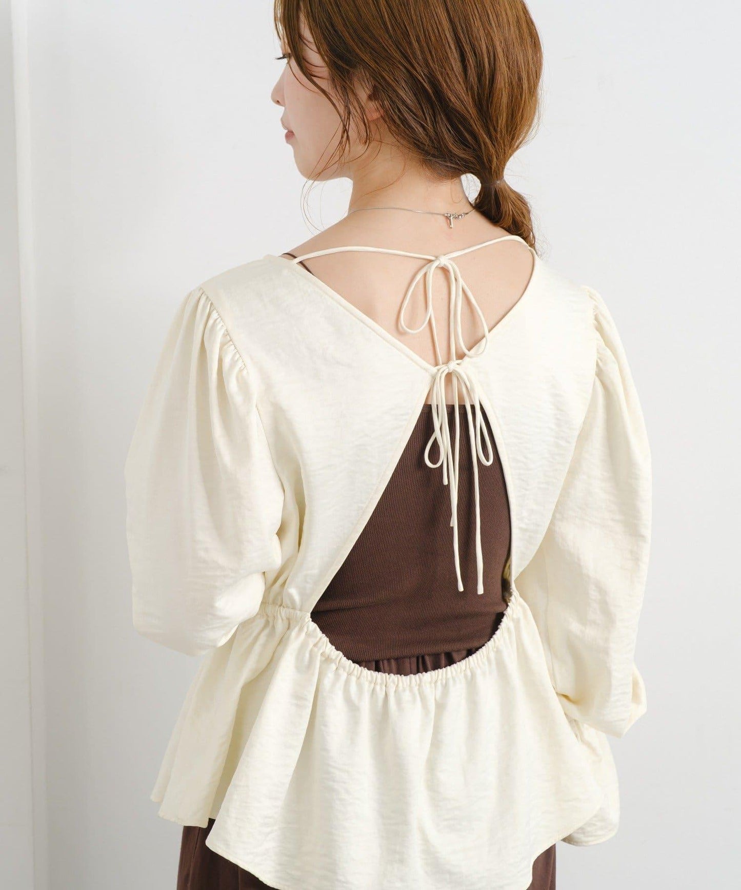 蓬蓬裙上衣,背部有大膽的鏤空設計。