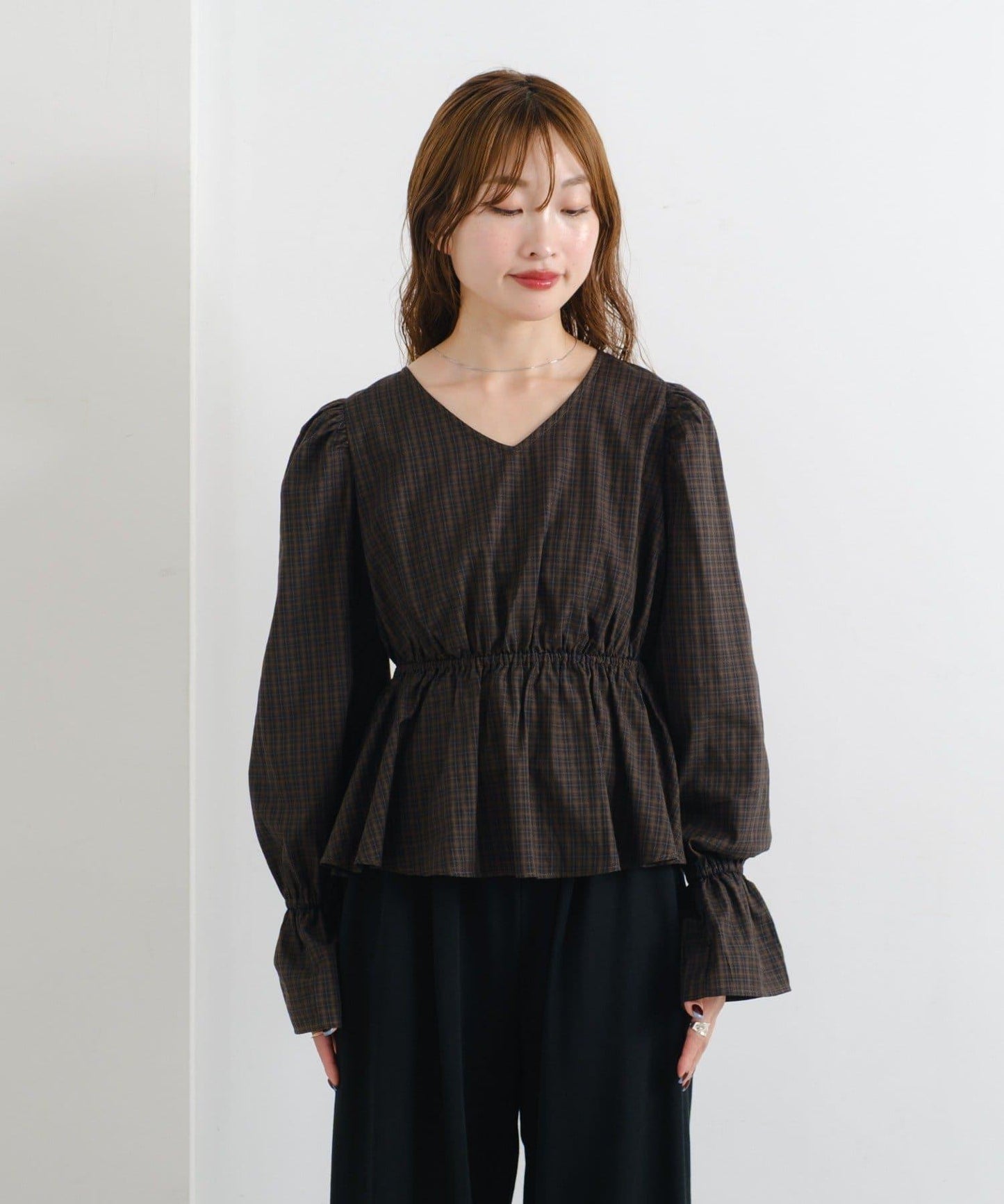 【純色&格子】B 鏤空荷葉邊上衣