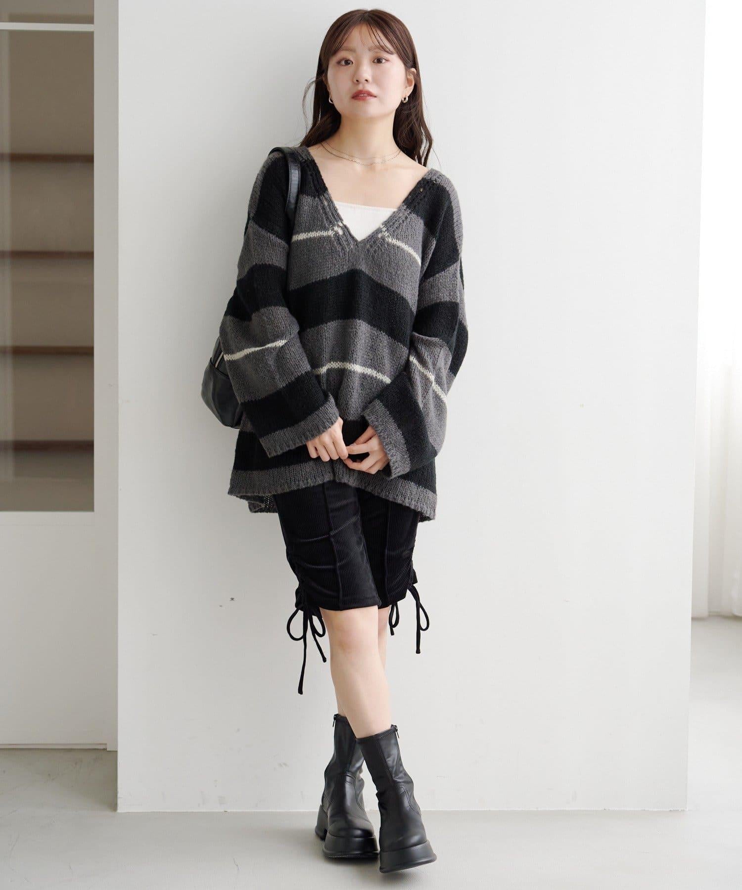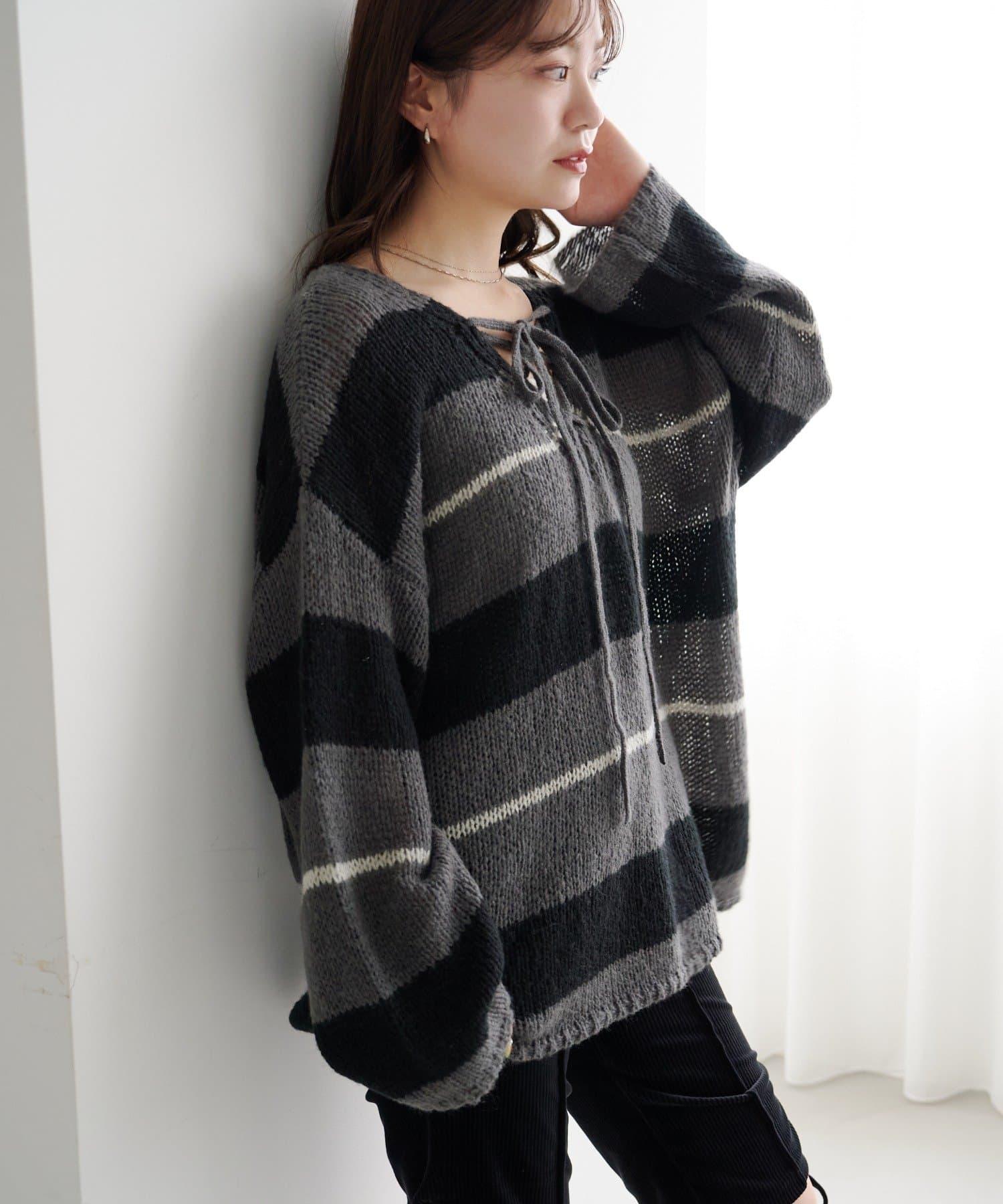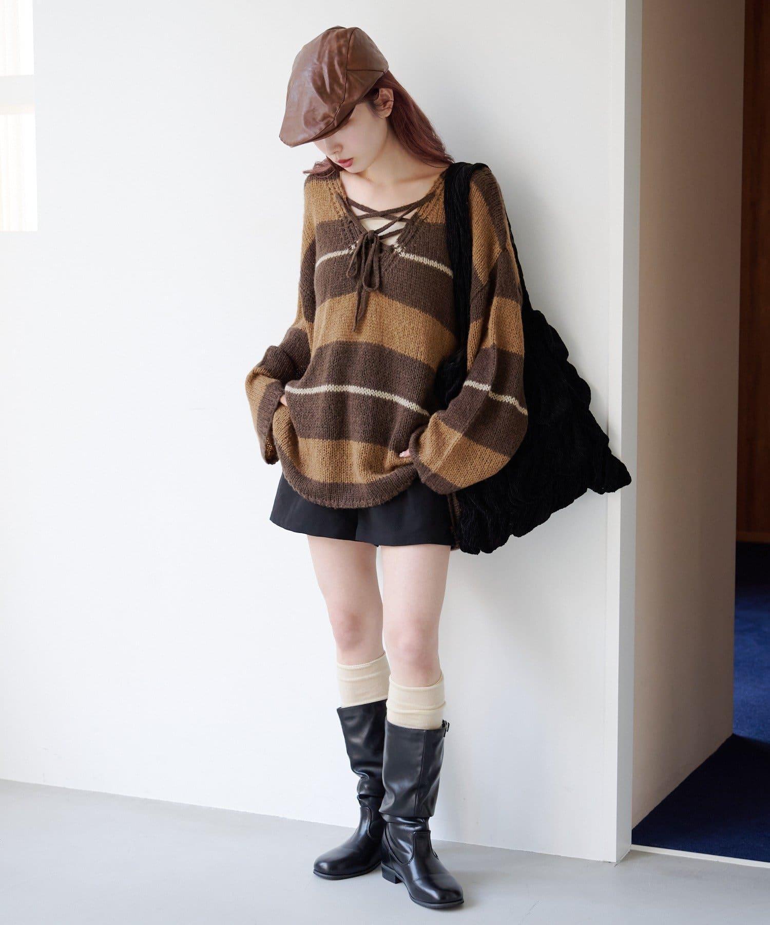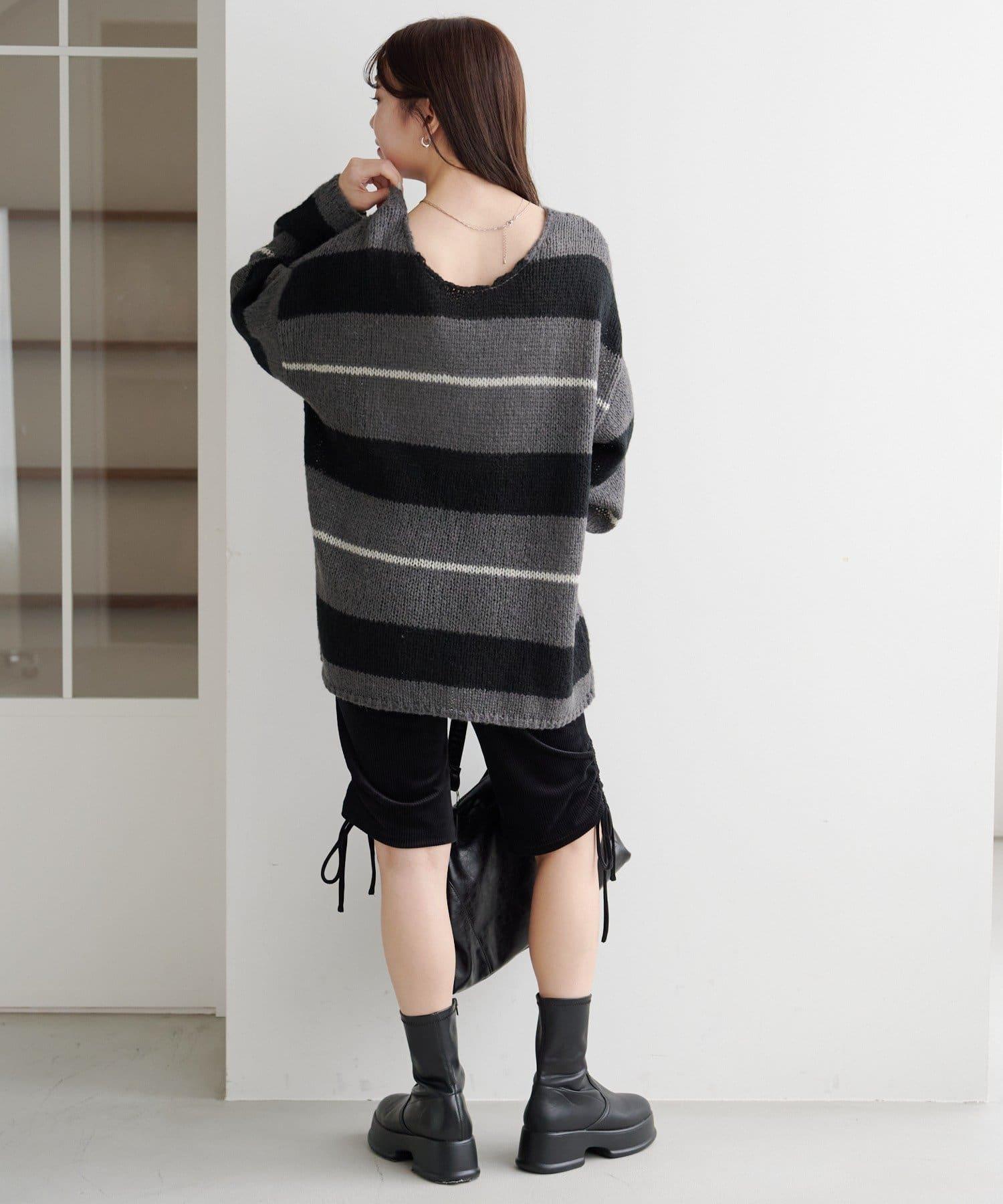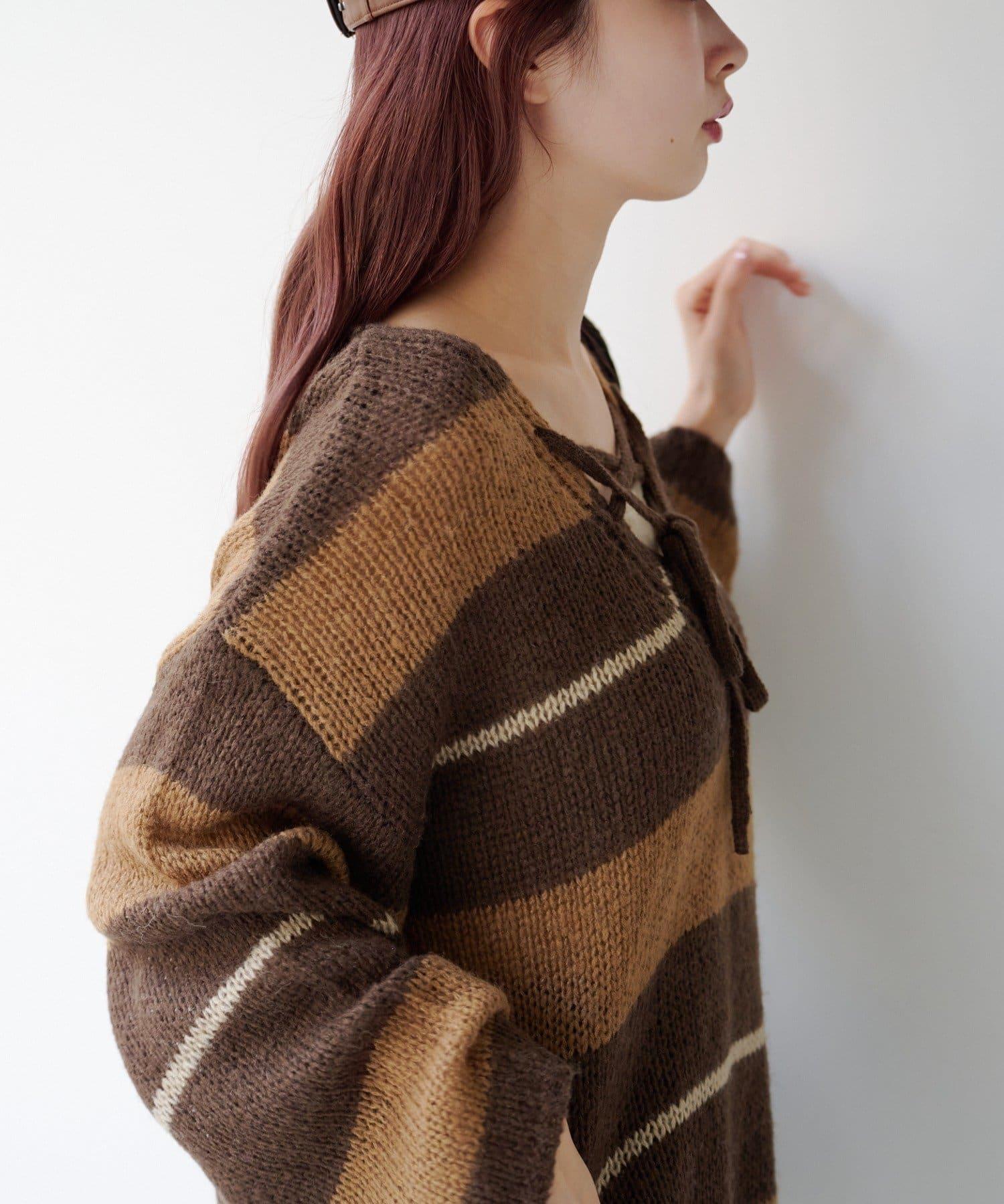 【純色&條紋/前後兩穿】繫帶寬鬆針織衫