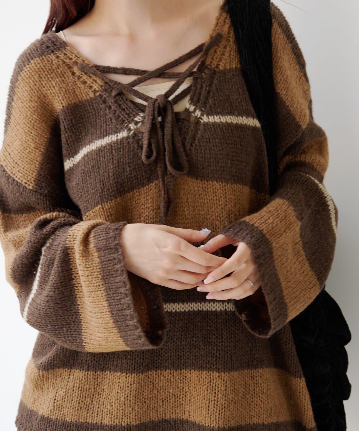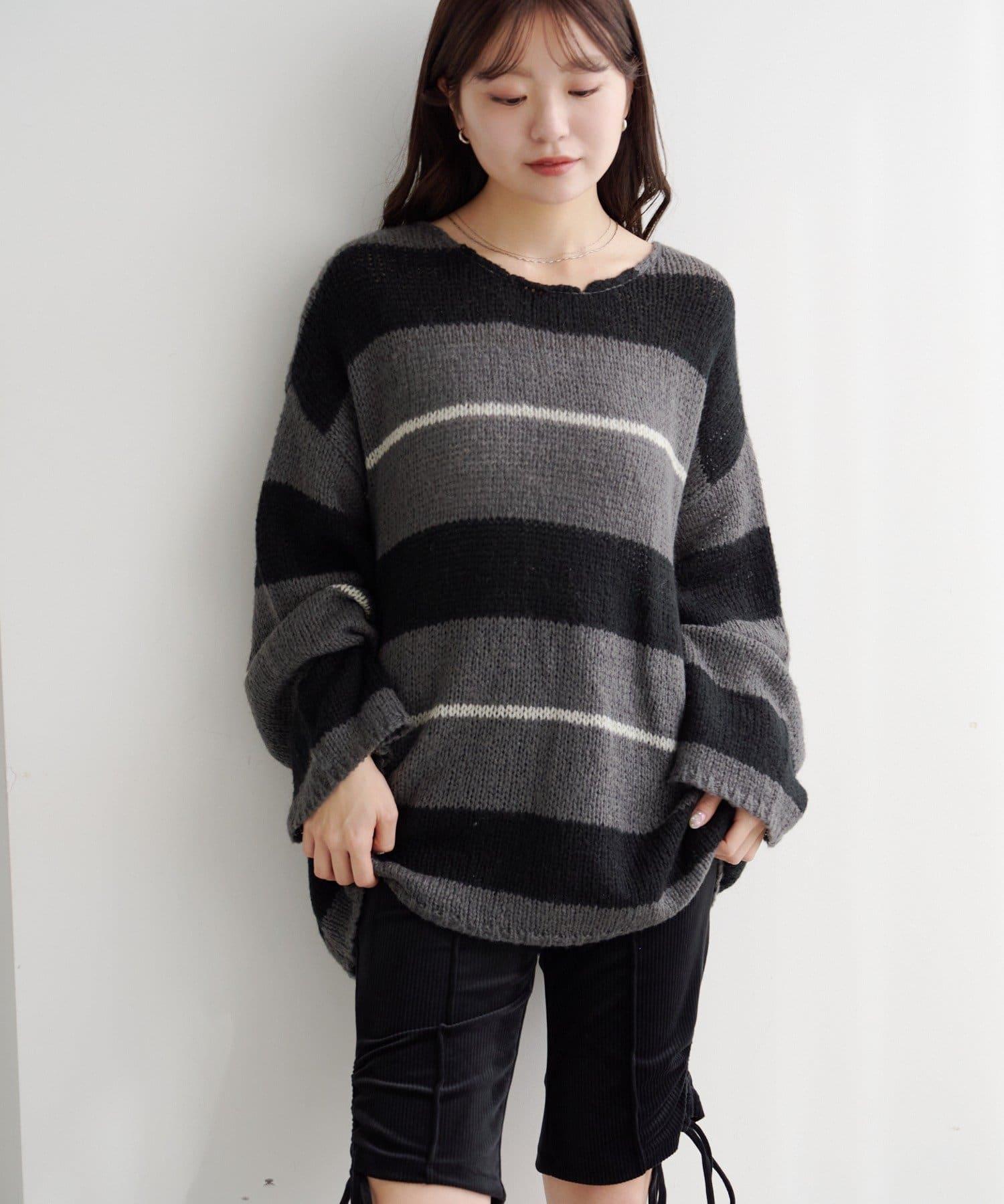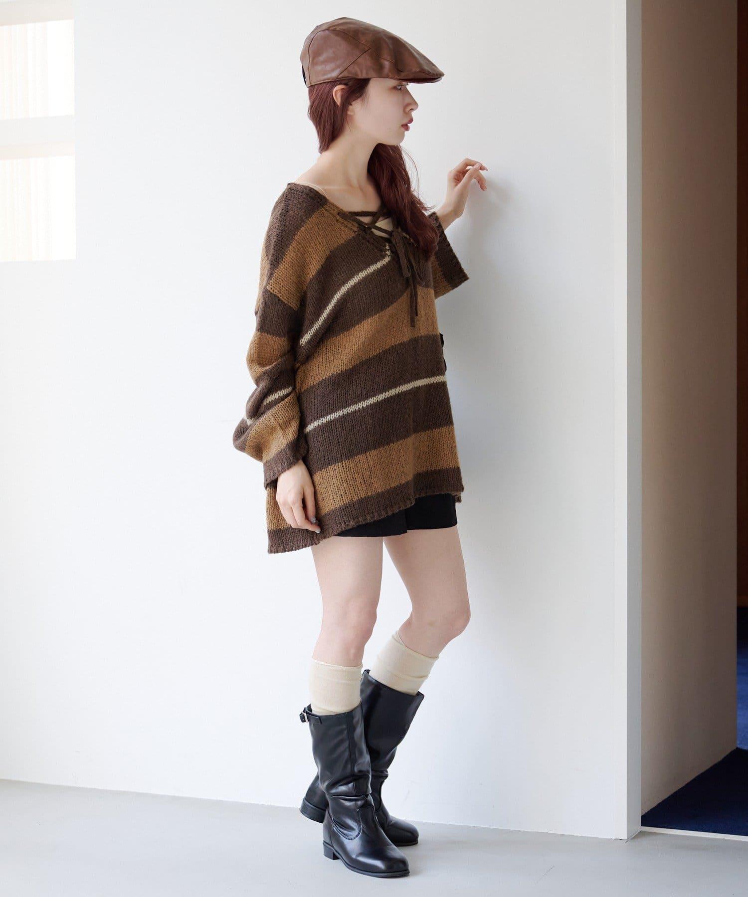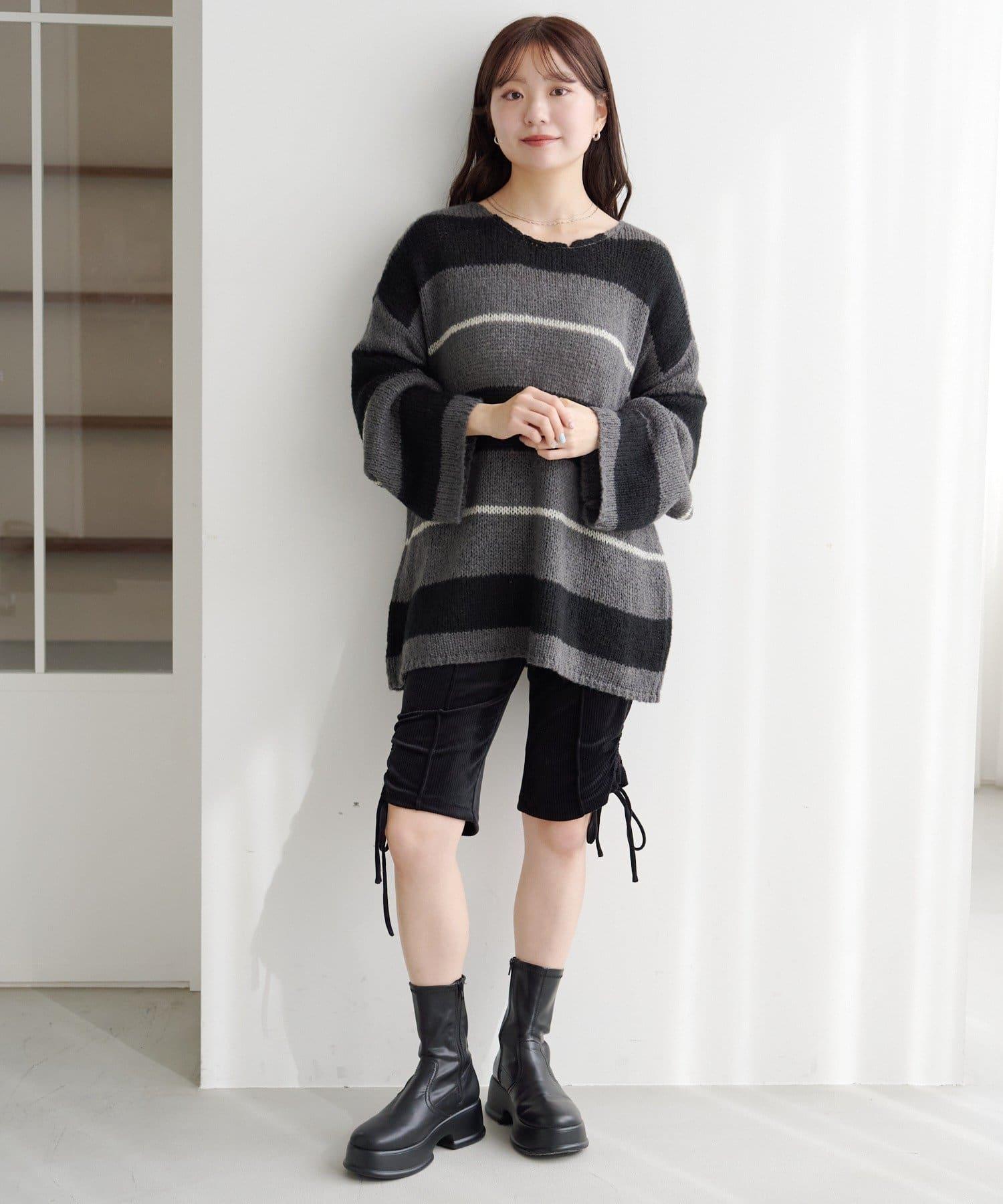 【純色&條紋/前後兩穿】繫帶寬鬆針織衫