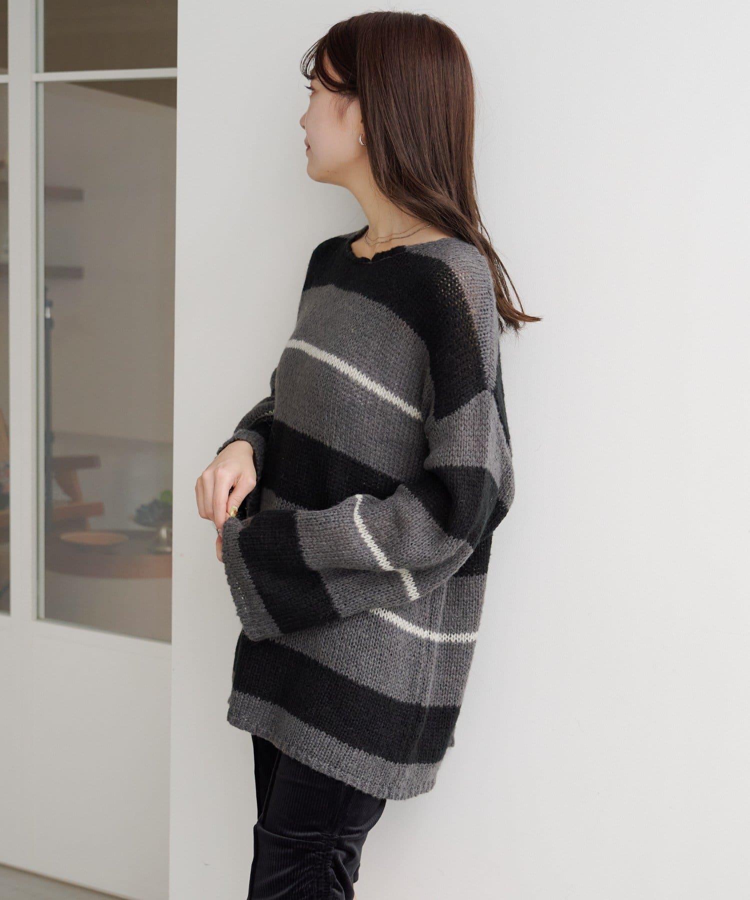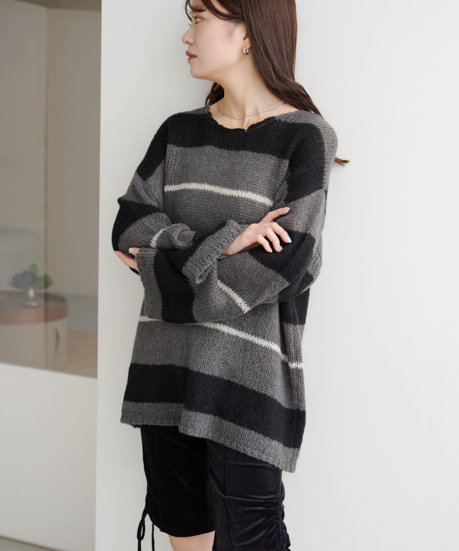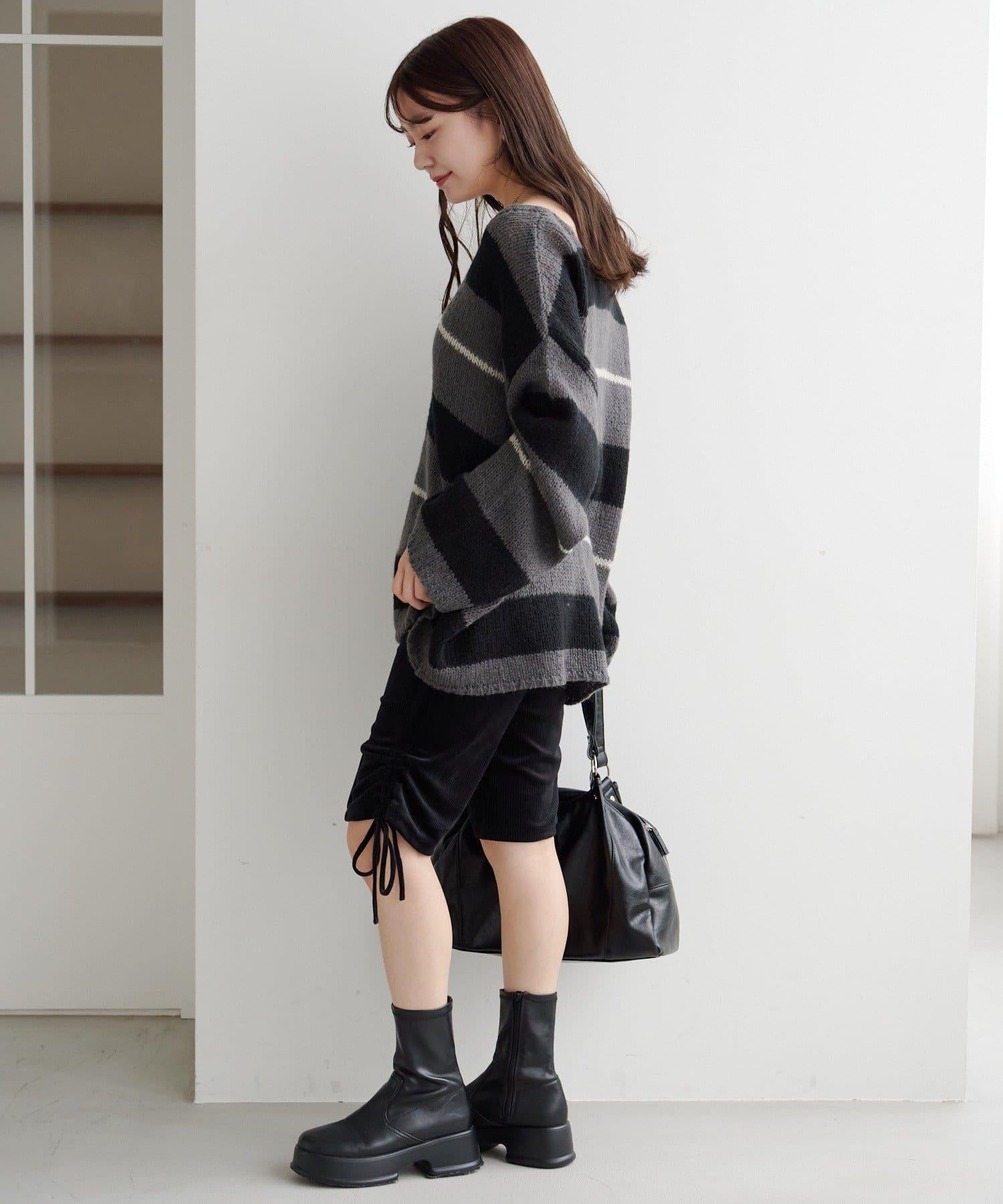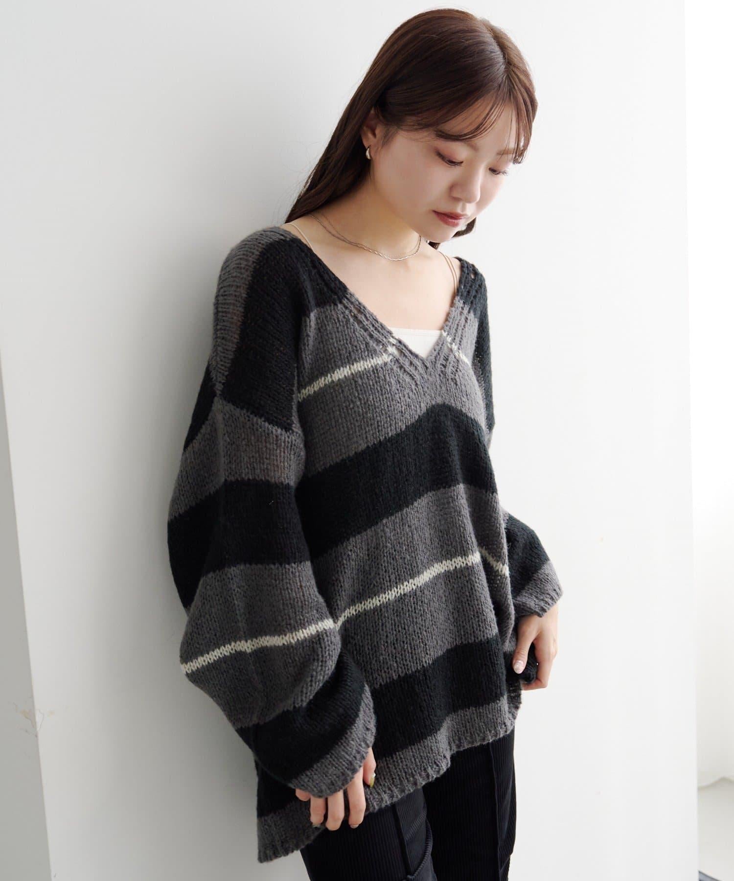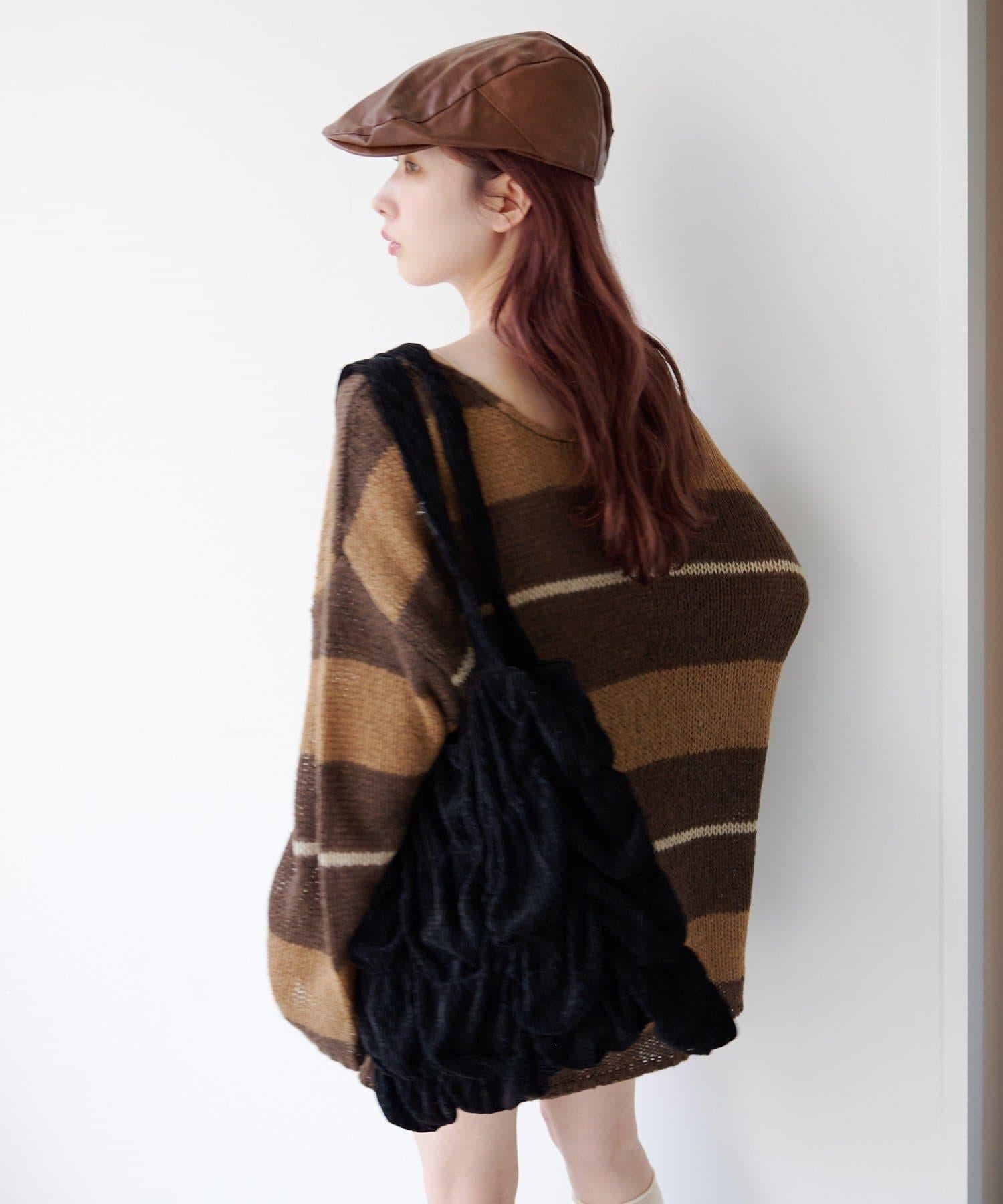 【純色&條紋/前後兩穿】繫帶寬鬆針織衫