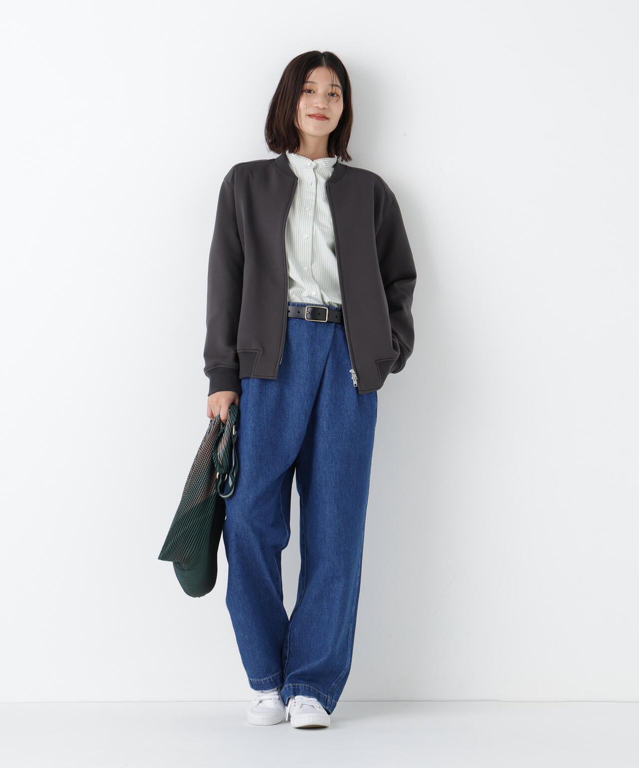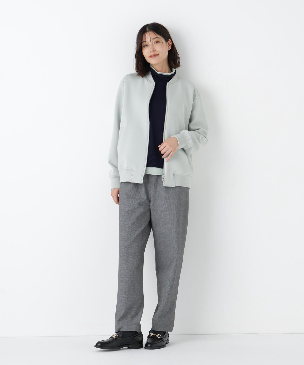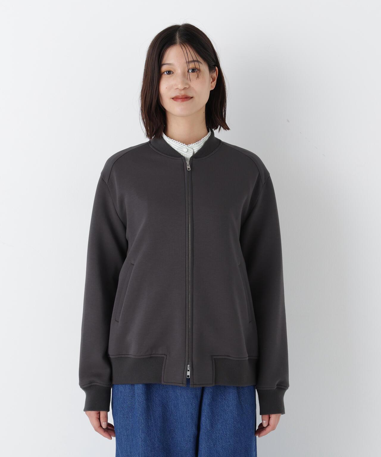 舒適的紙板罩衫,適合日常穿著 [設計特點] 採用針織肋條剪裁縫製的轟炸式罩衫。反向開啟的拉鍊設計也是一大亮點。面料為棉混硬紙板面料,手感自然。其特點是彈性好,手感柔軟。有炭灰色和淺綠色兩種顏色可供選擇。推薦搭配】這款輕便的外套在季節交替時非常實用。在寒冷的天氣裡,它可以作為保暖外套使用。
