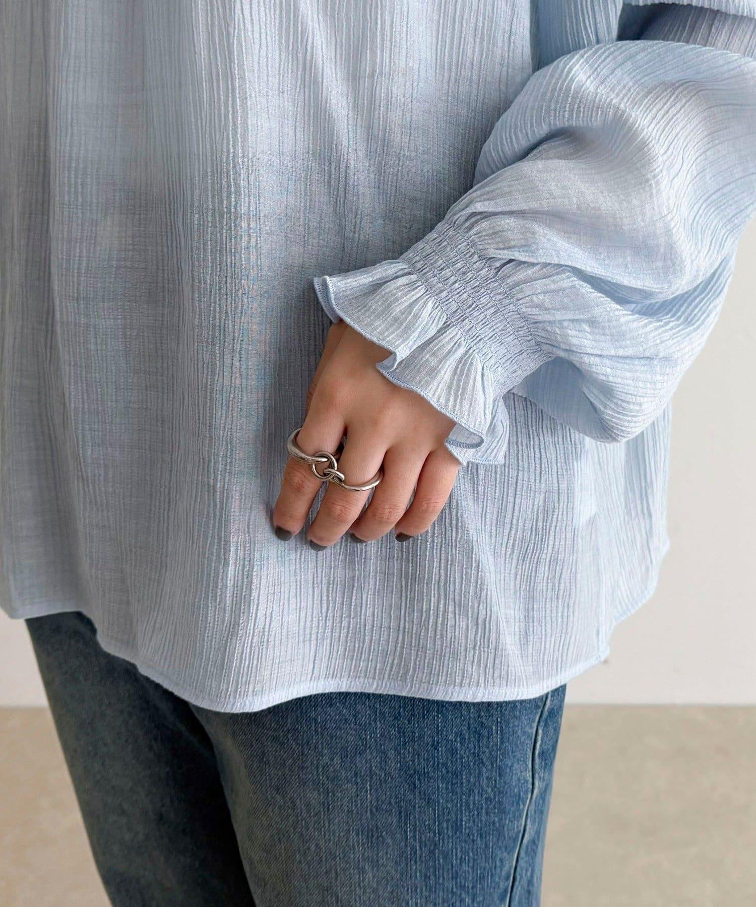 袖口的鬆緊設計營造出蓬鬆的輪廓,讓手感看起來更加迷人。