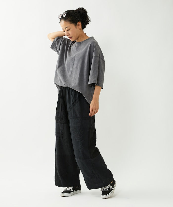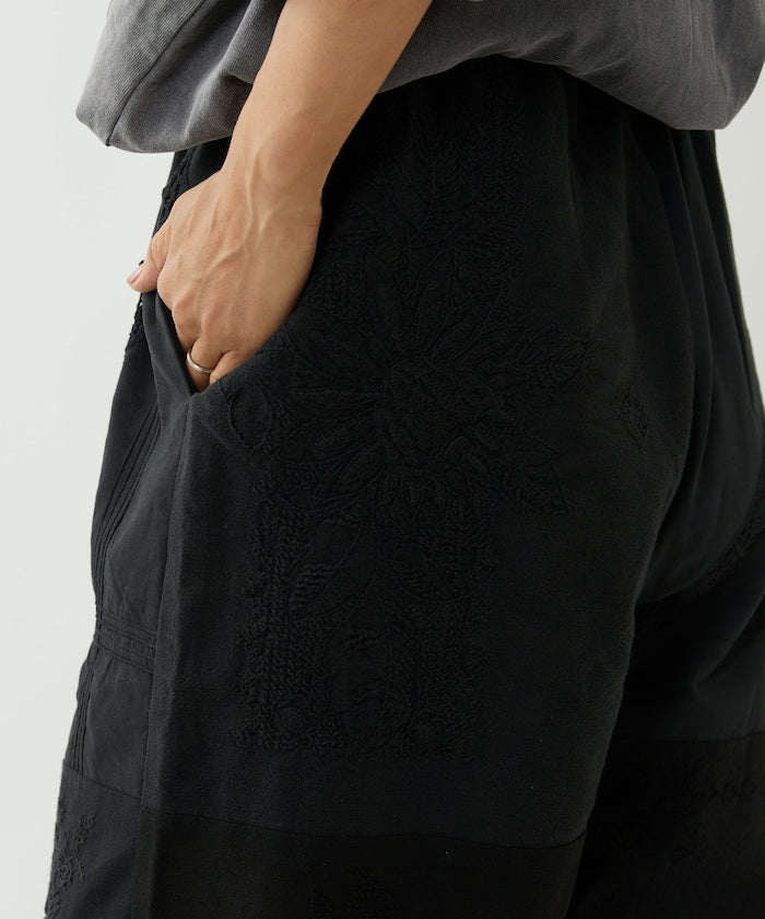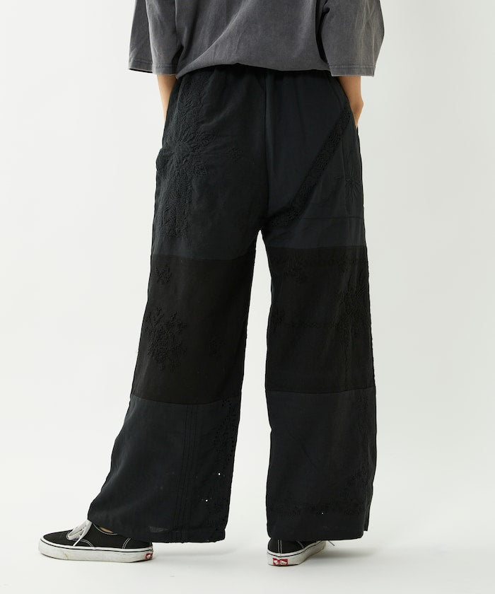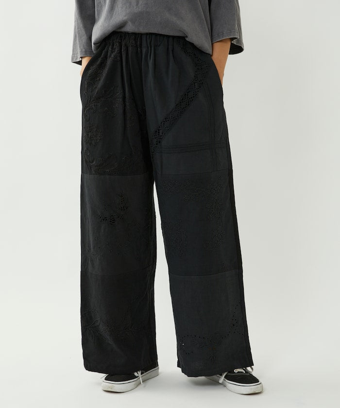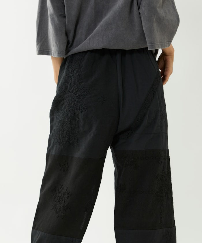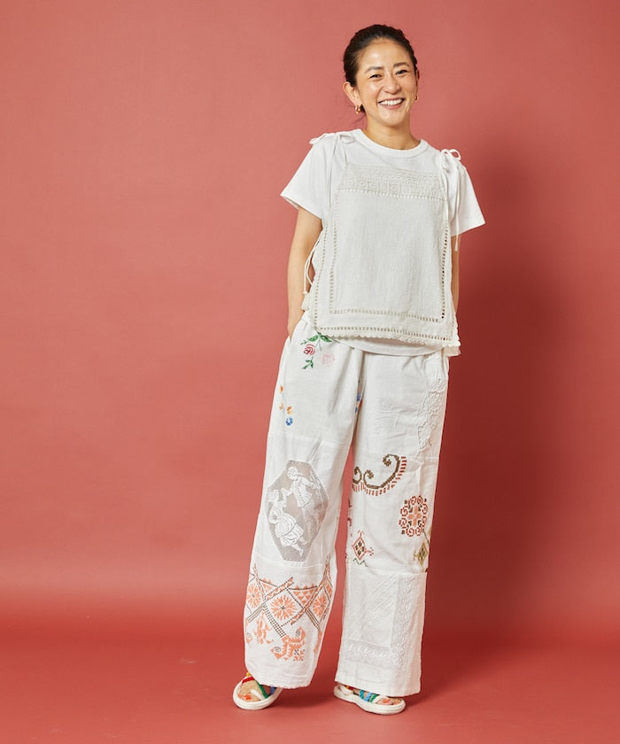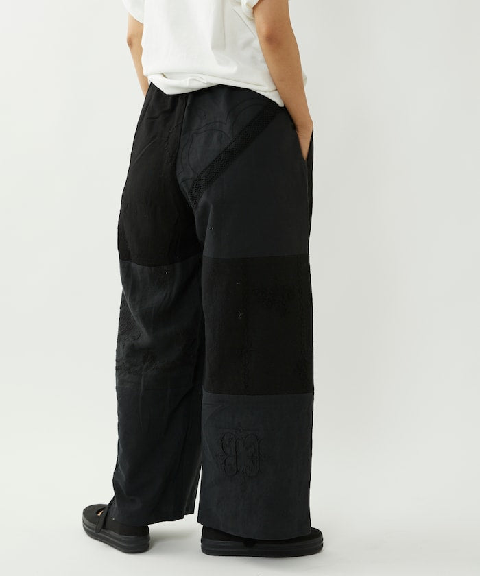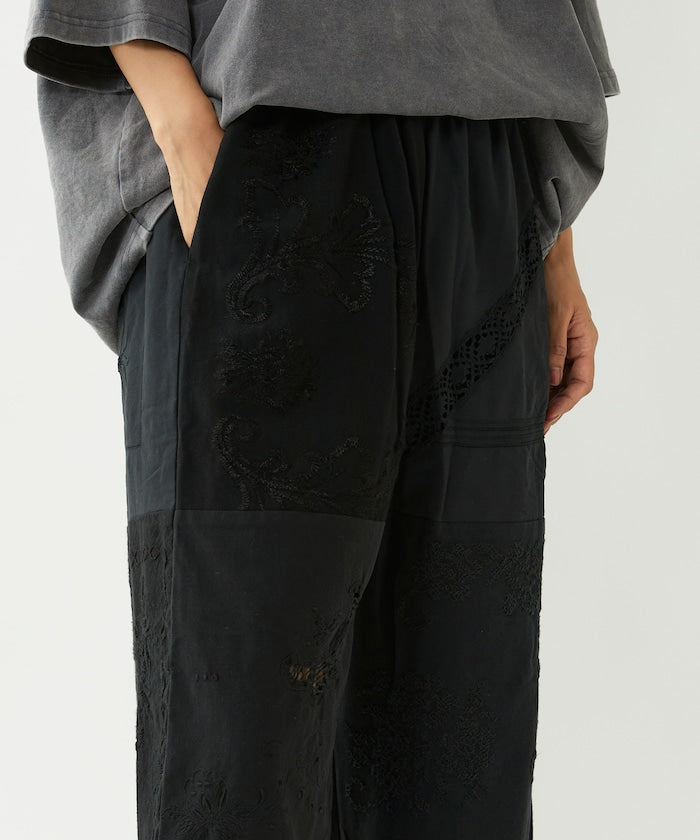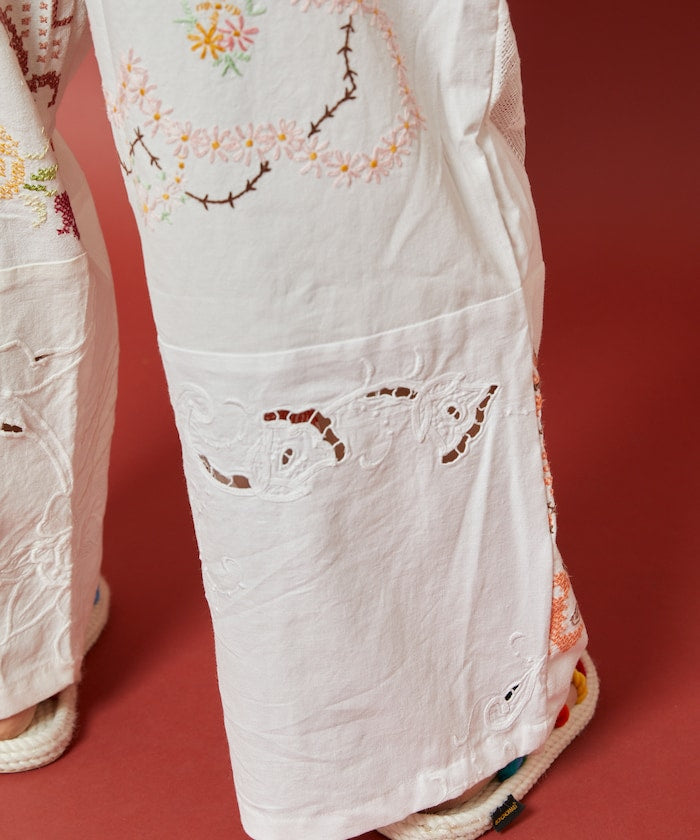 該系列將法式復古床單、枕套和桌布改造成褲子。