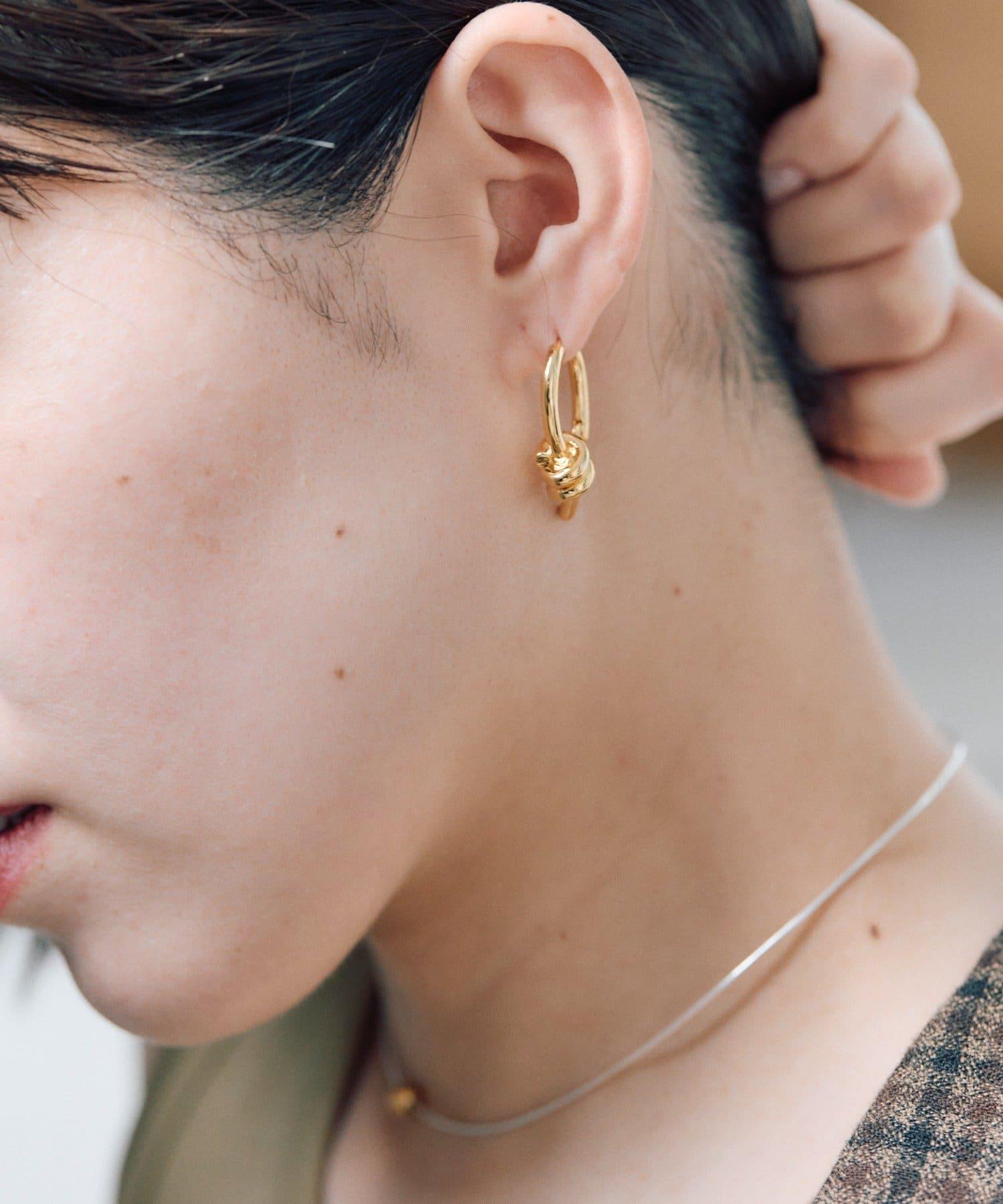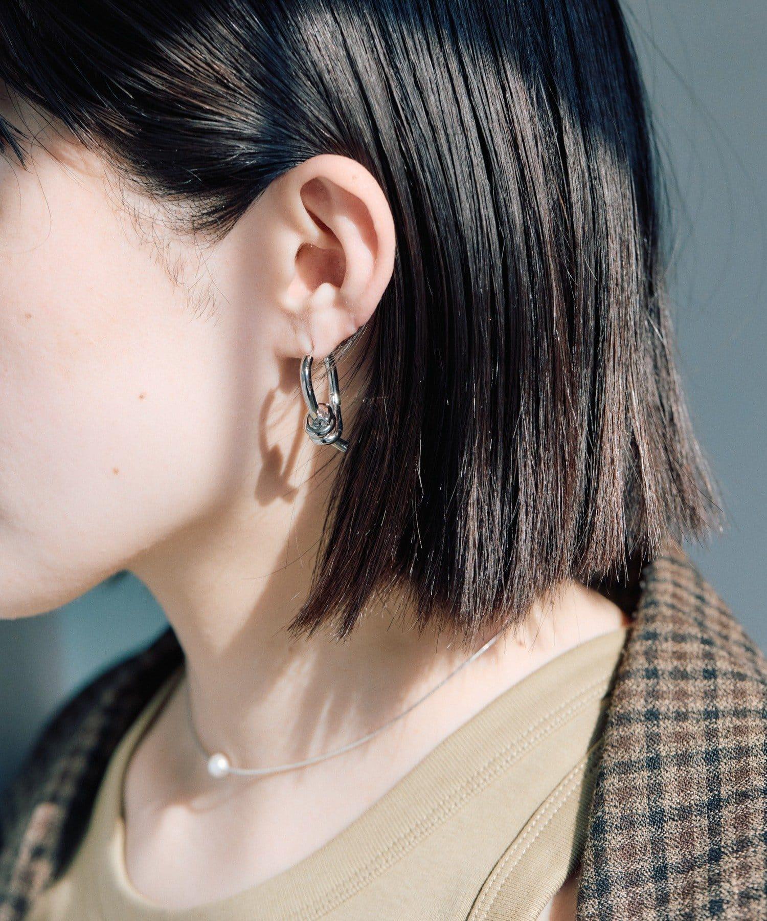 粗細適中的耳環和前衛的鏤空造型給人以時尚的印象。