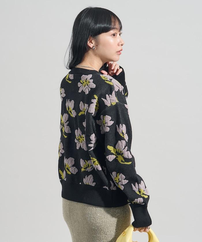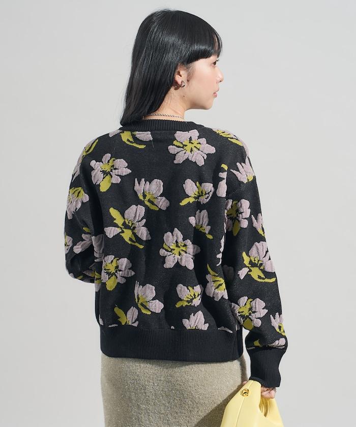 華麗的辮子提花針織衫,帶有立體花朵圖案。