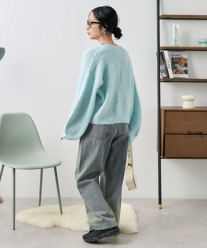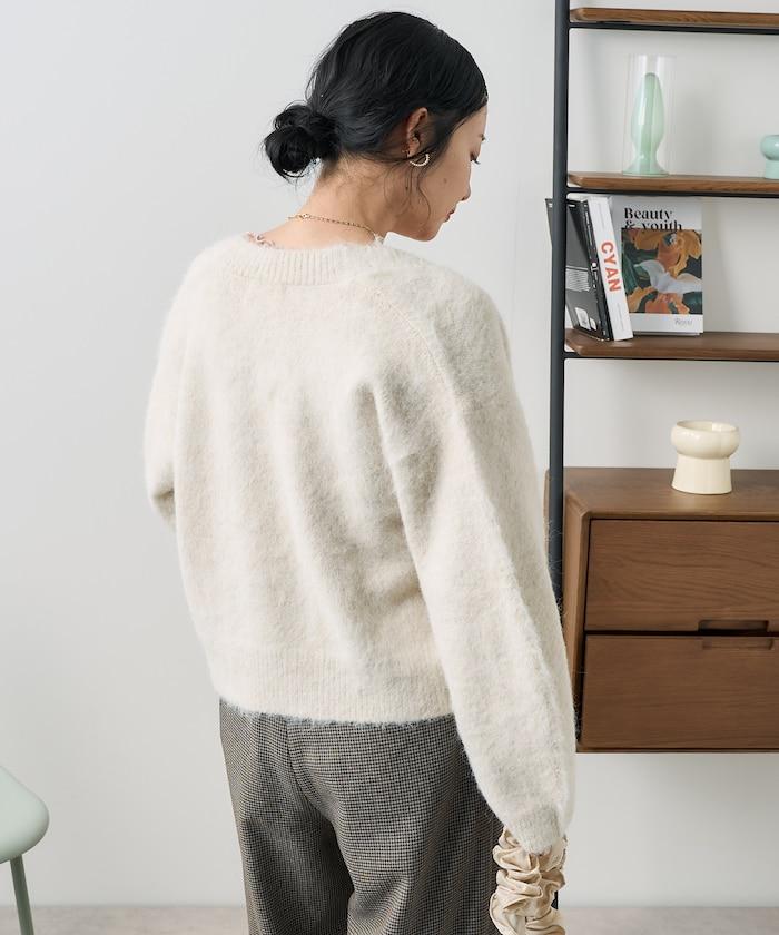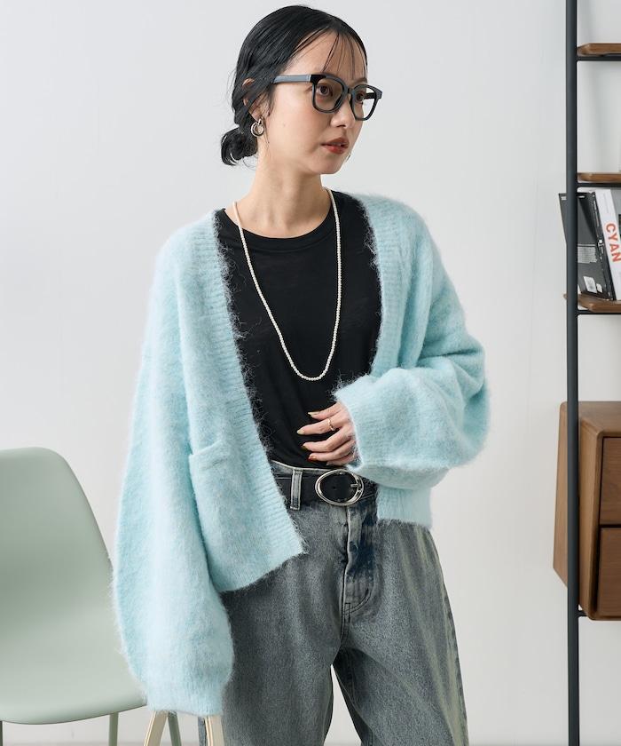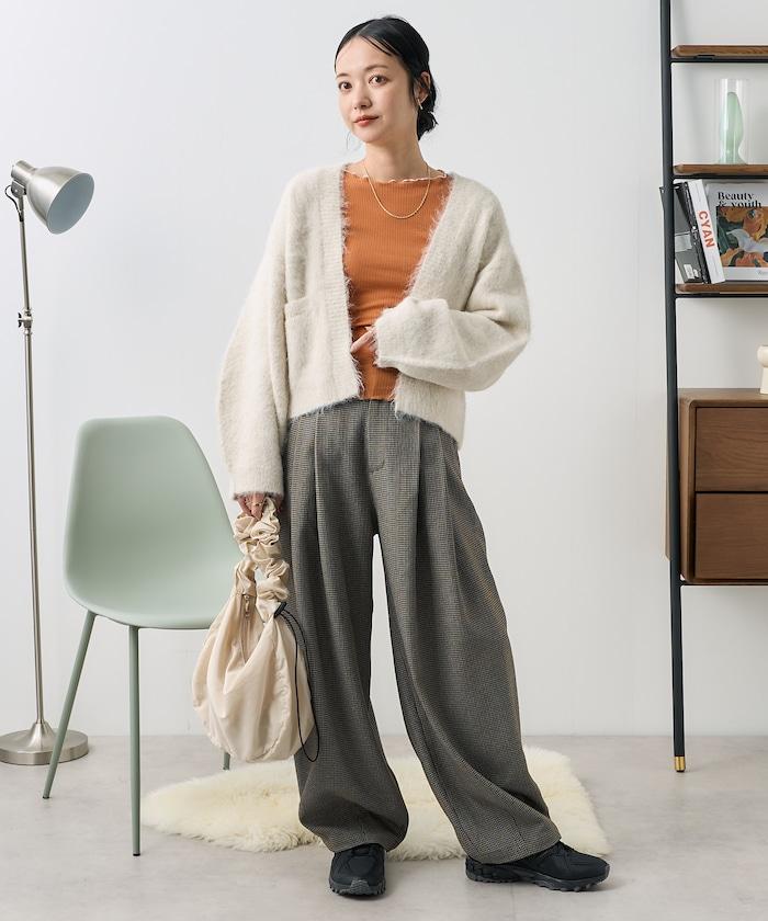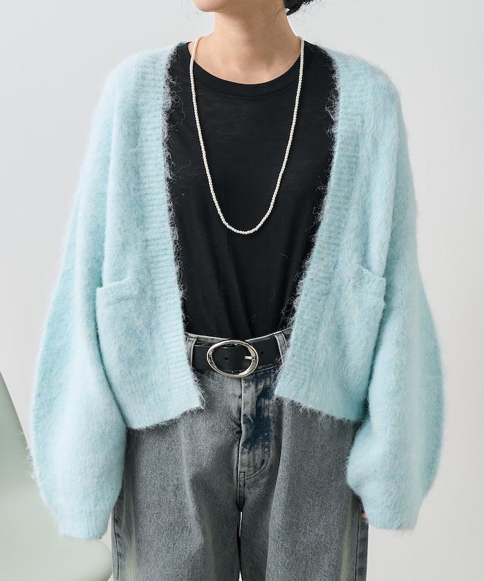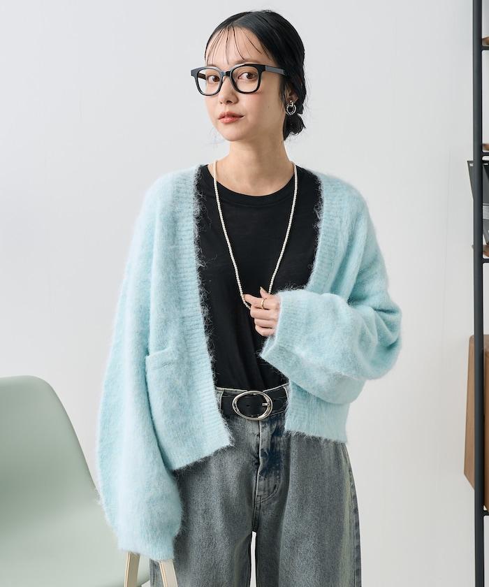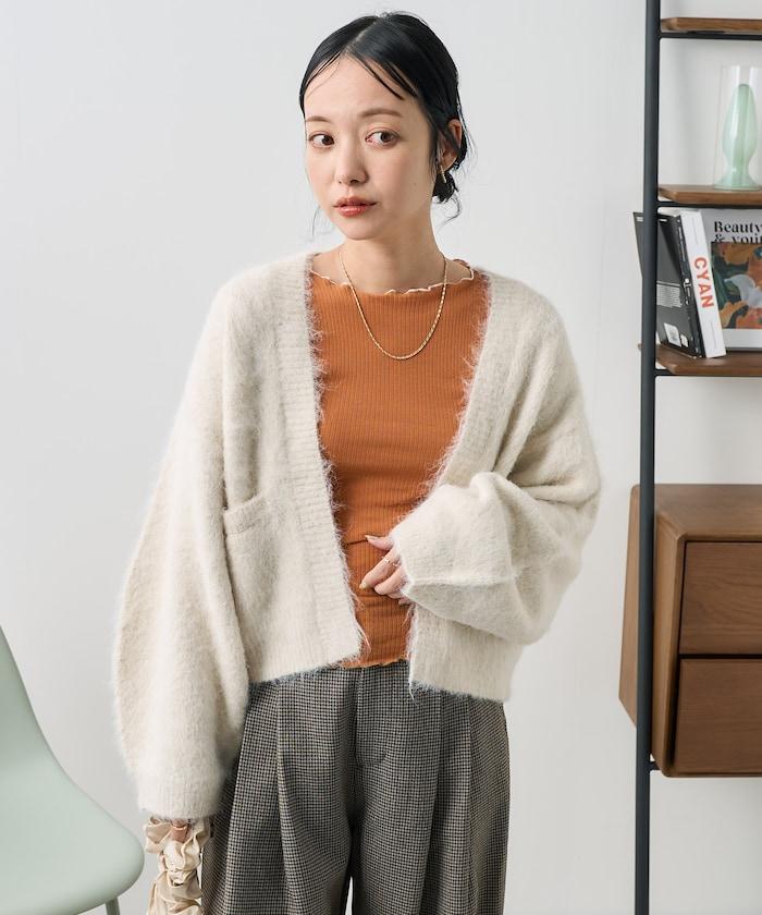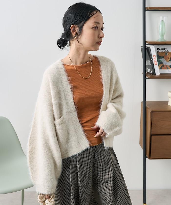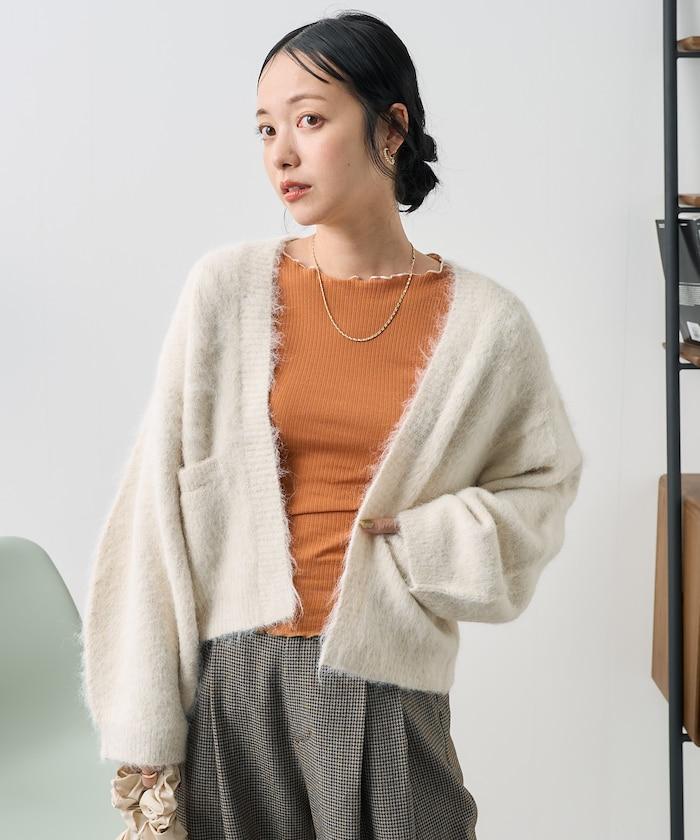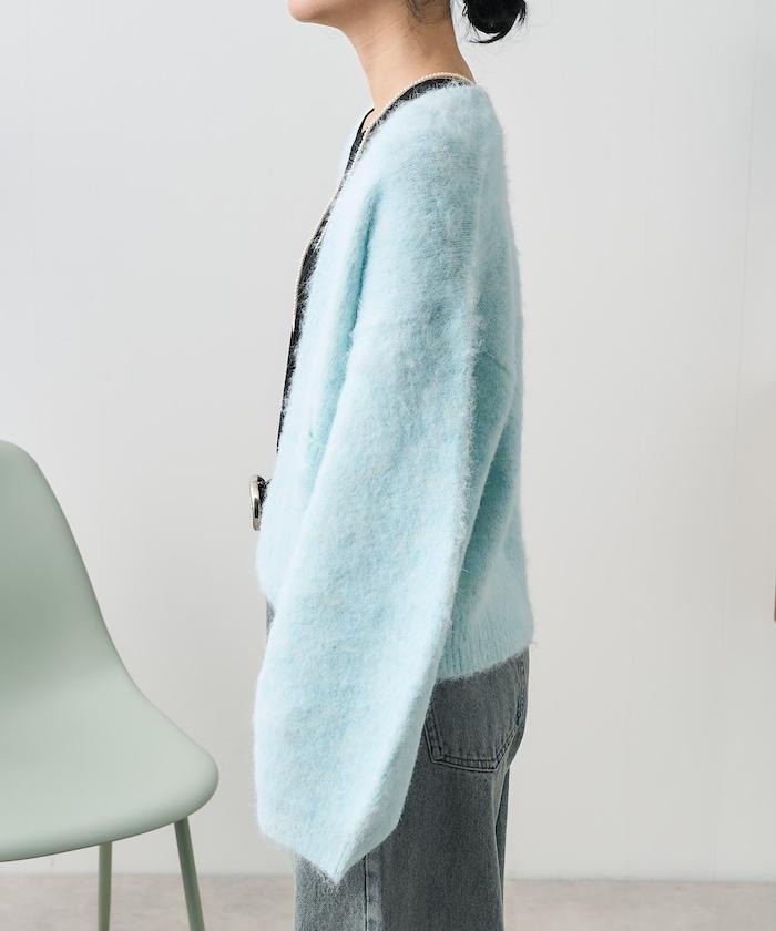 蓬鬆感的長毛針織開衫洋溢著季節的氣息。