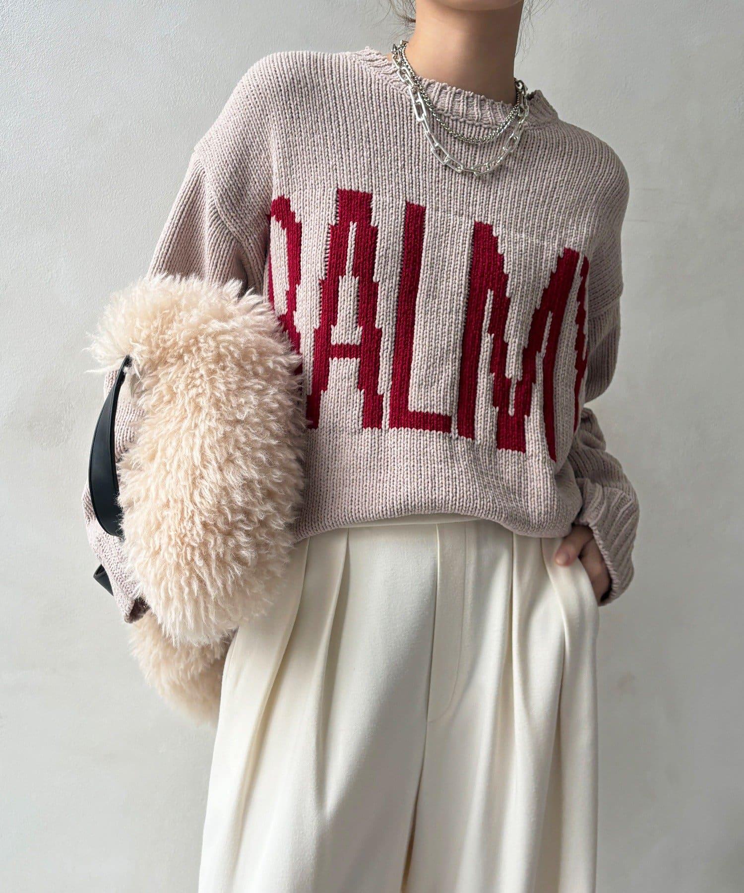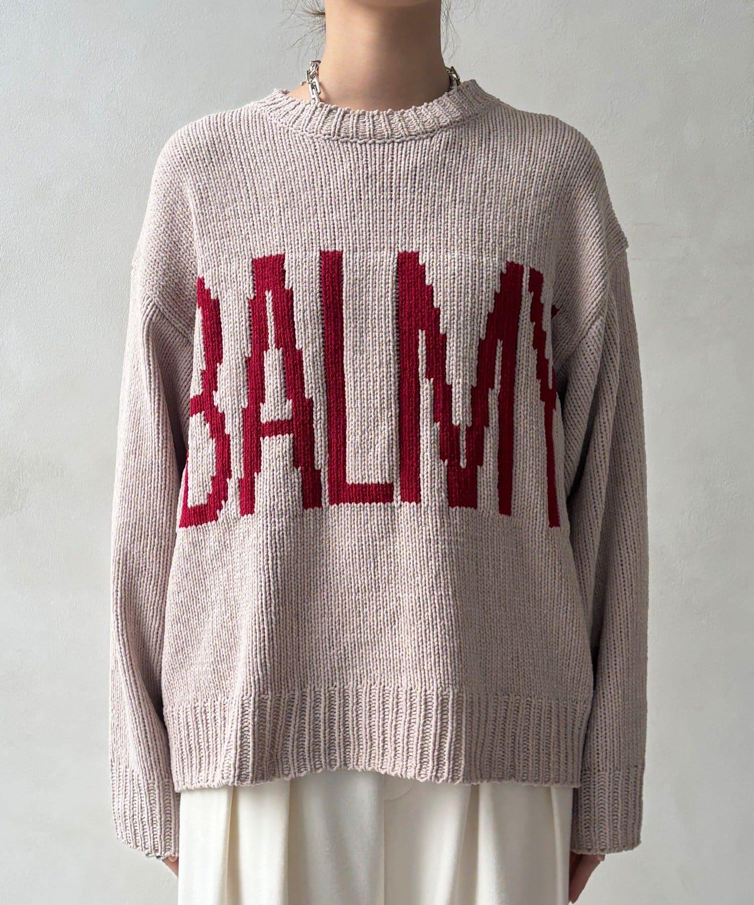 這款搶眼的針織套頭衫採用觸感柔軟的編織紗線編織而成,上面印有徽標圖案。