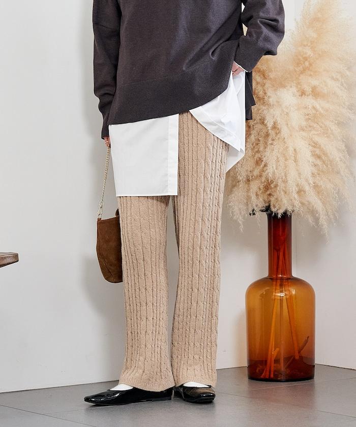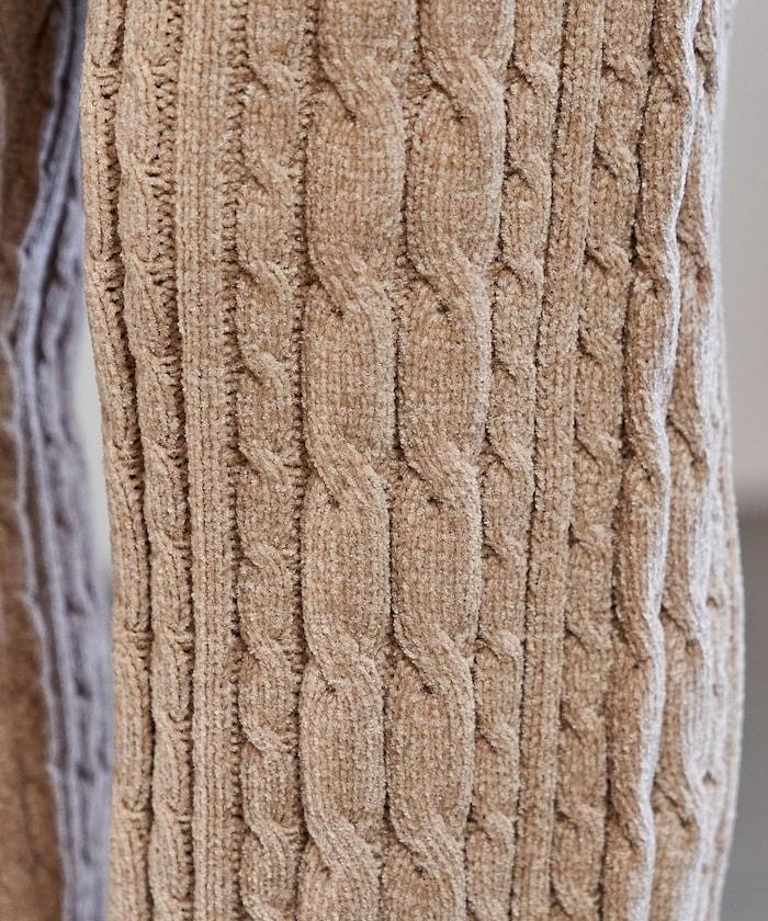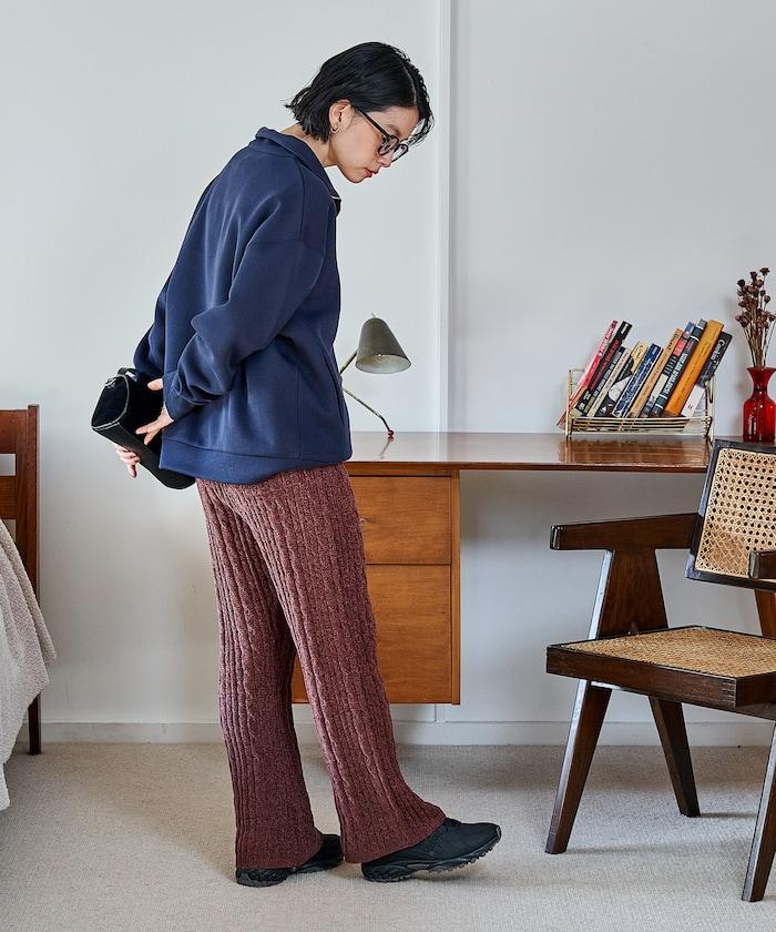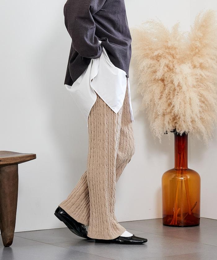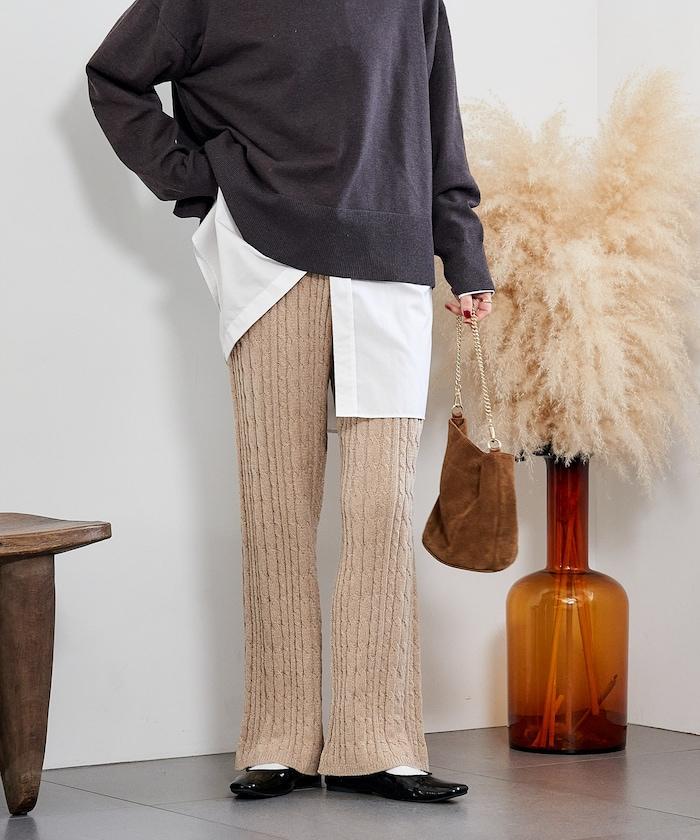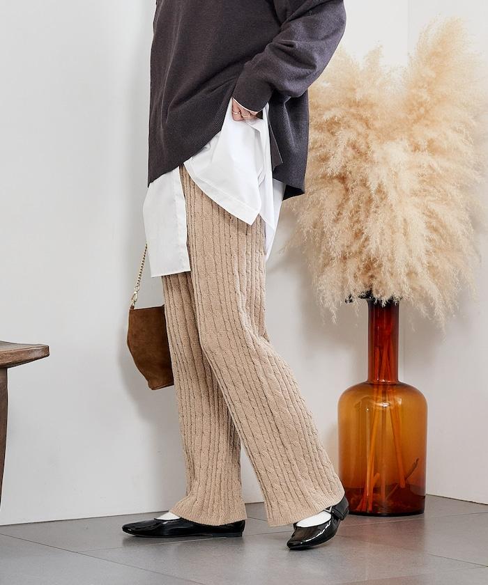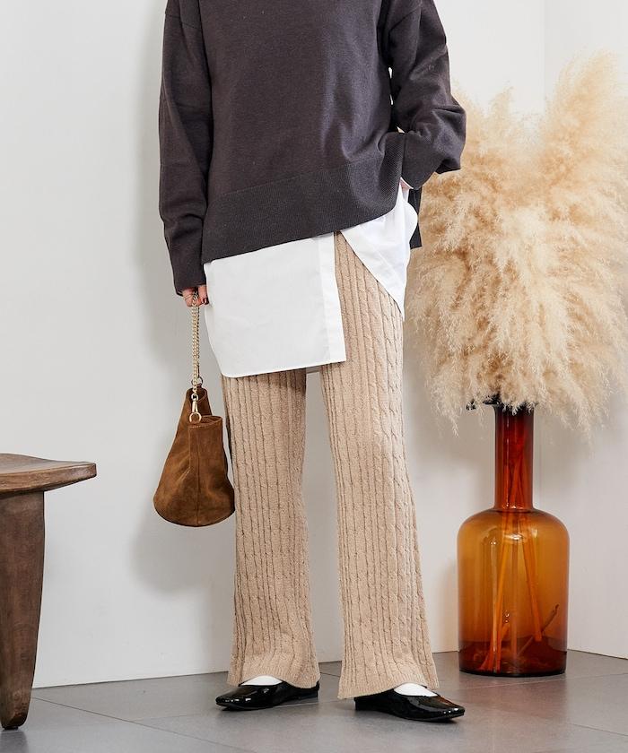 電纜編織的豎線使褲腿顯得圓潤,提升了時尚感。