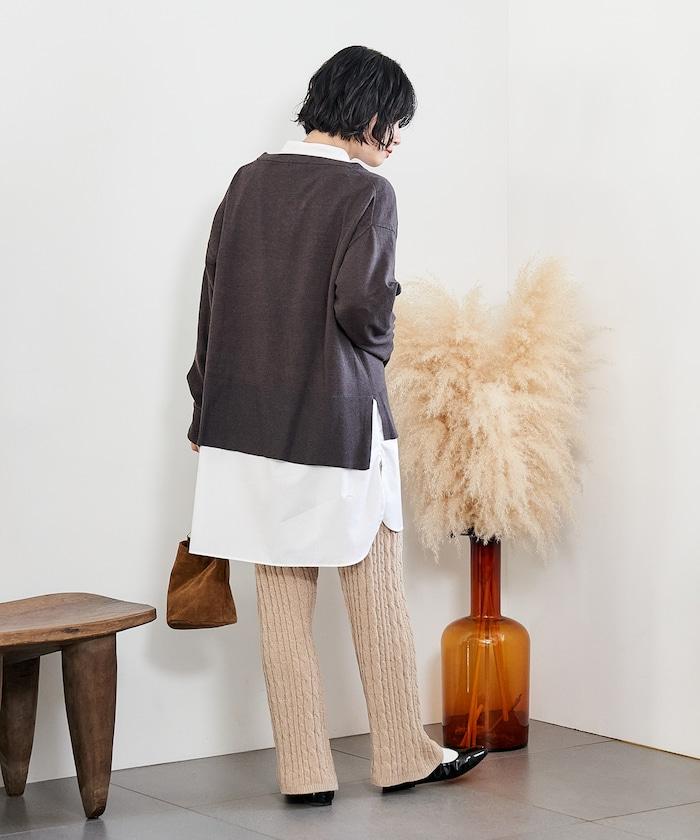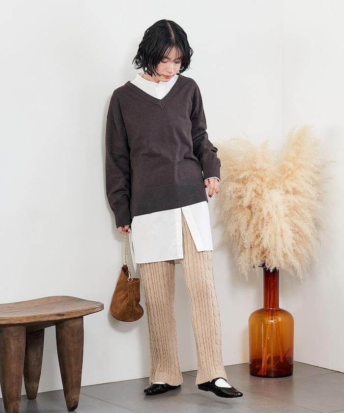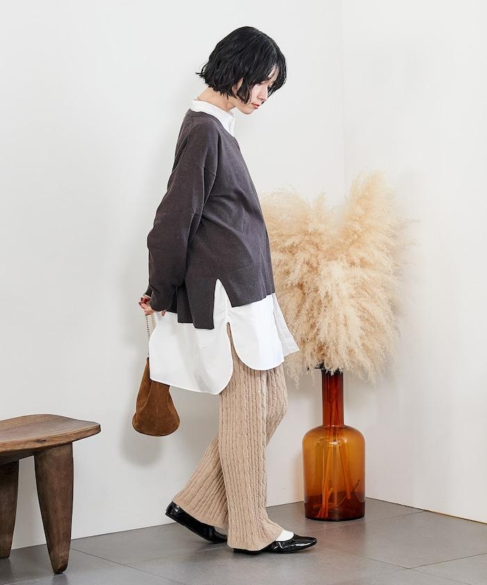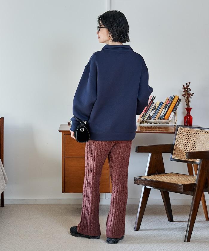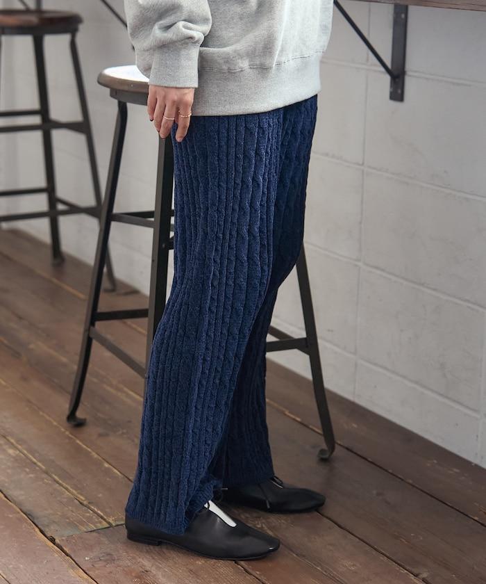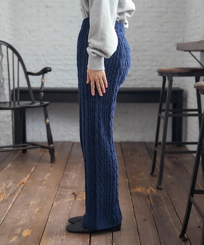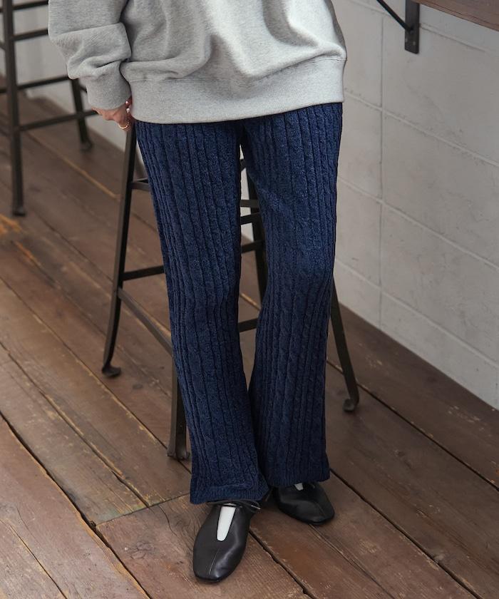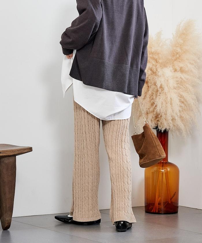 電纜編織的豎線使褲腿顯得圓潤,提升了時尚感。