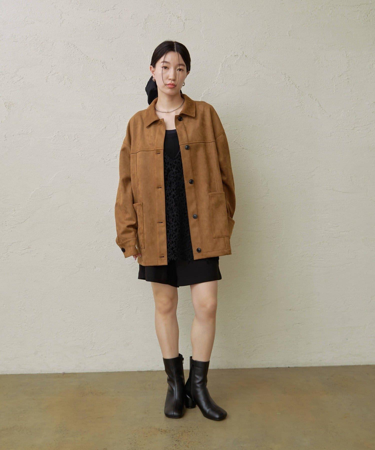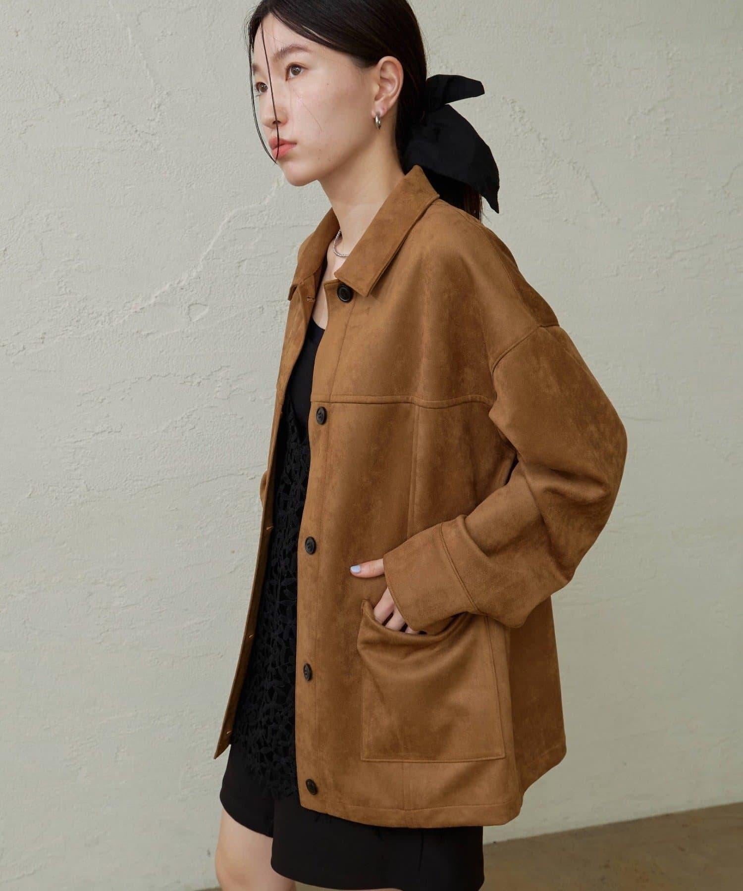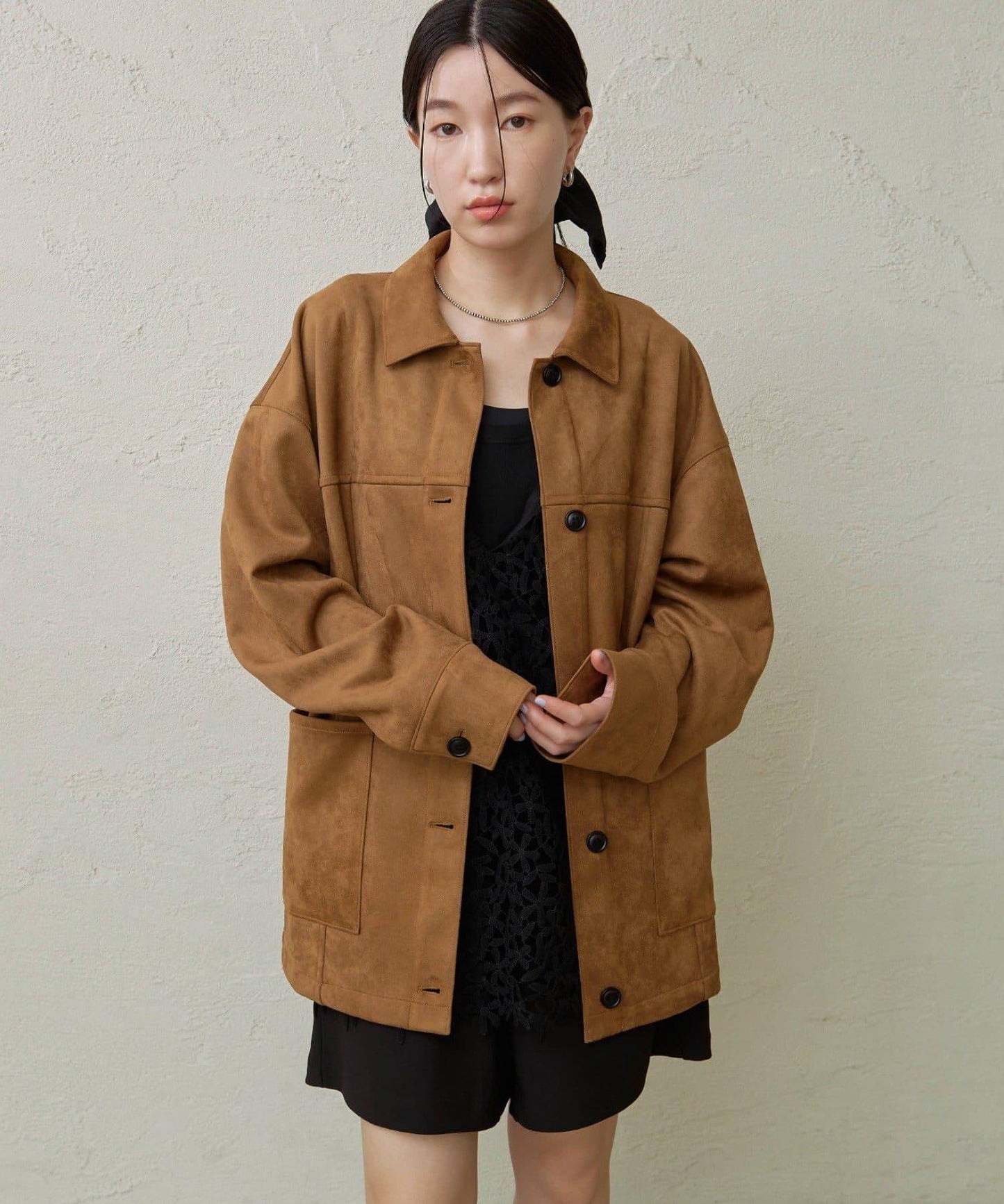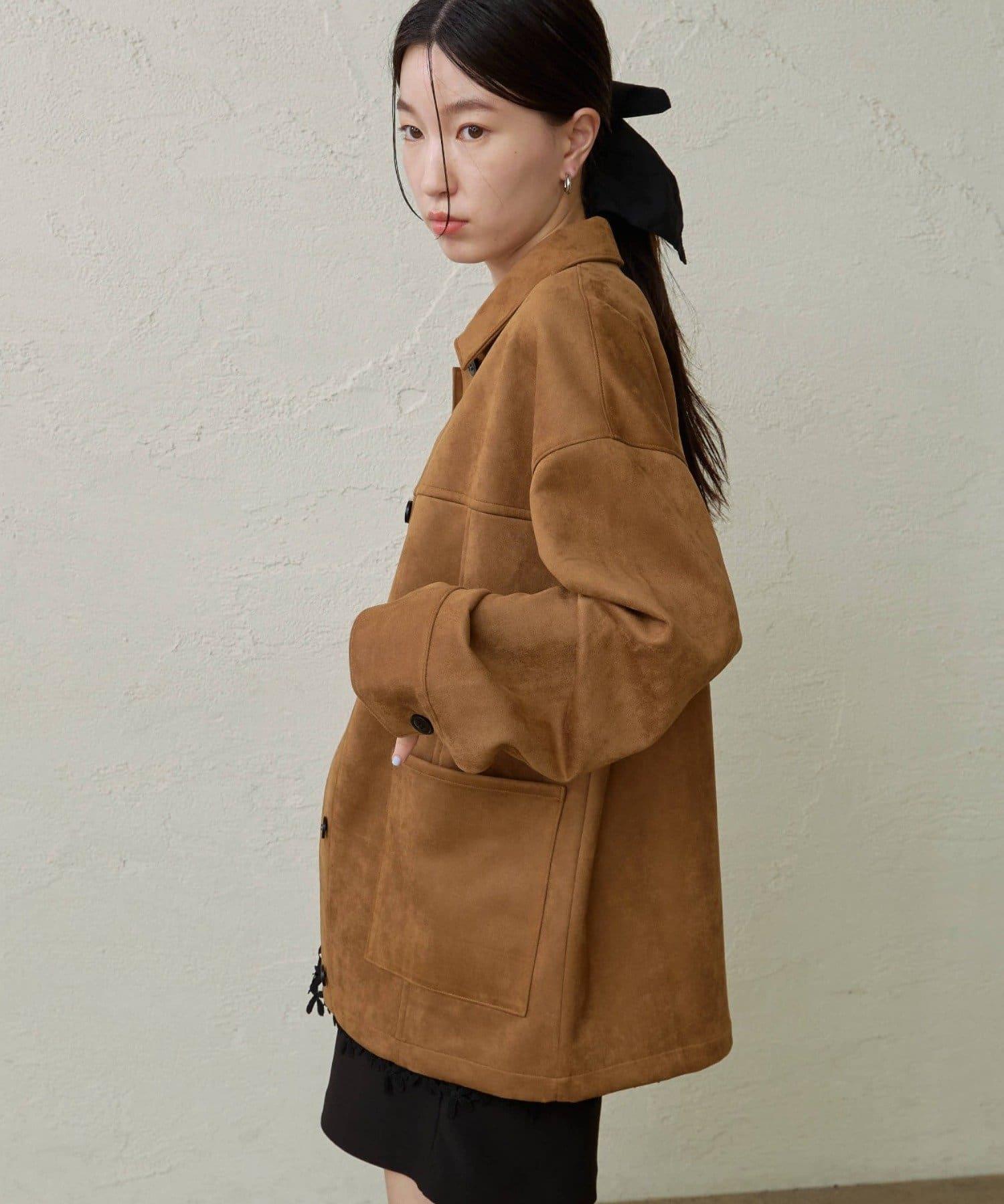 這款夾克採用時下流行的麂皮絨面料製成,穿上它就能感受到秋天的氣息。