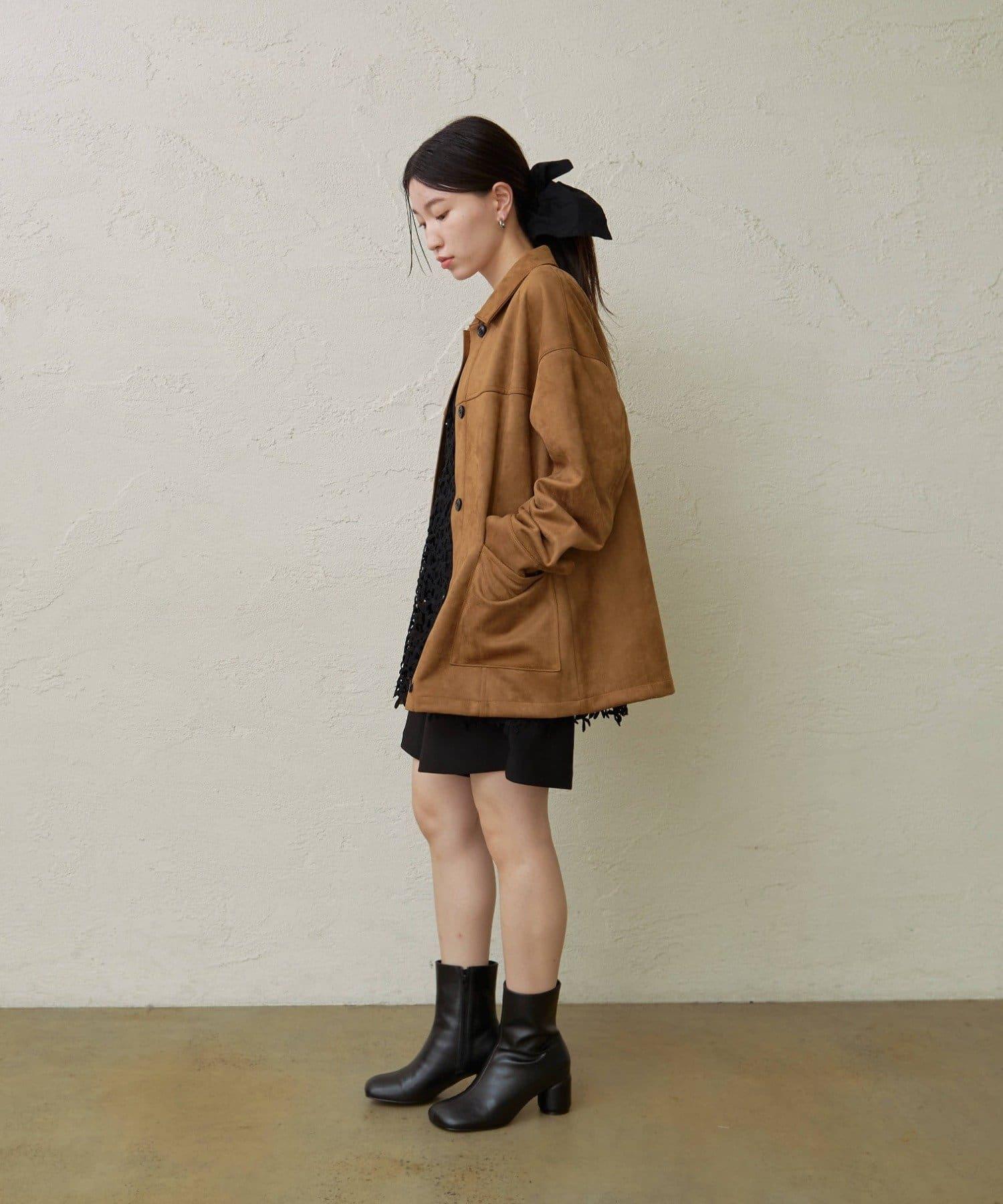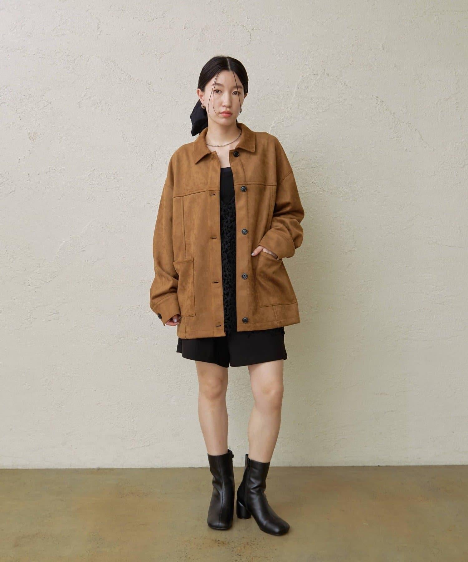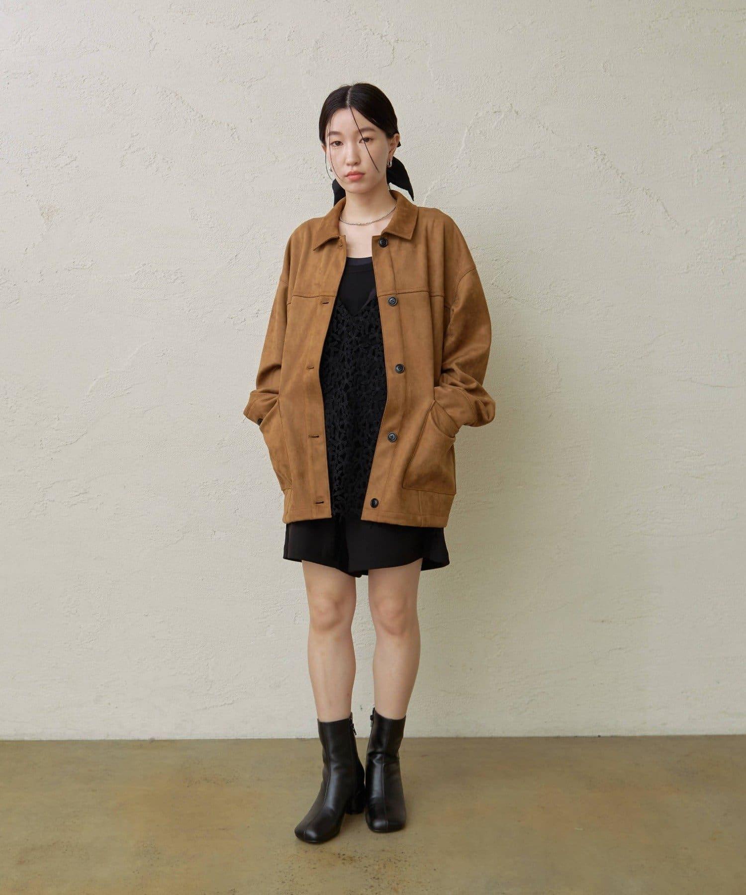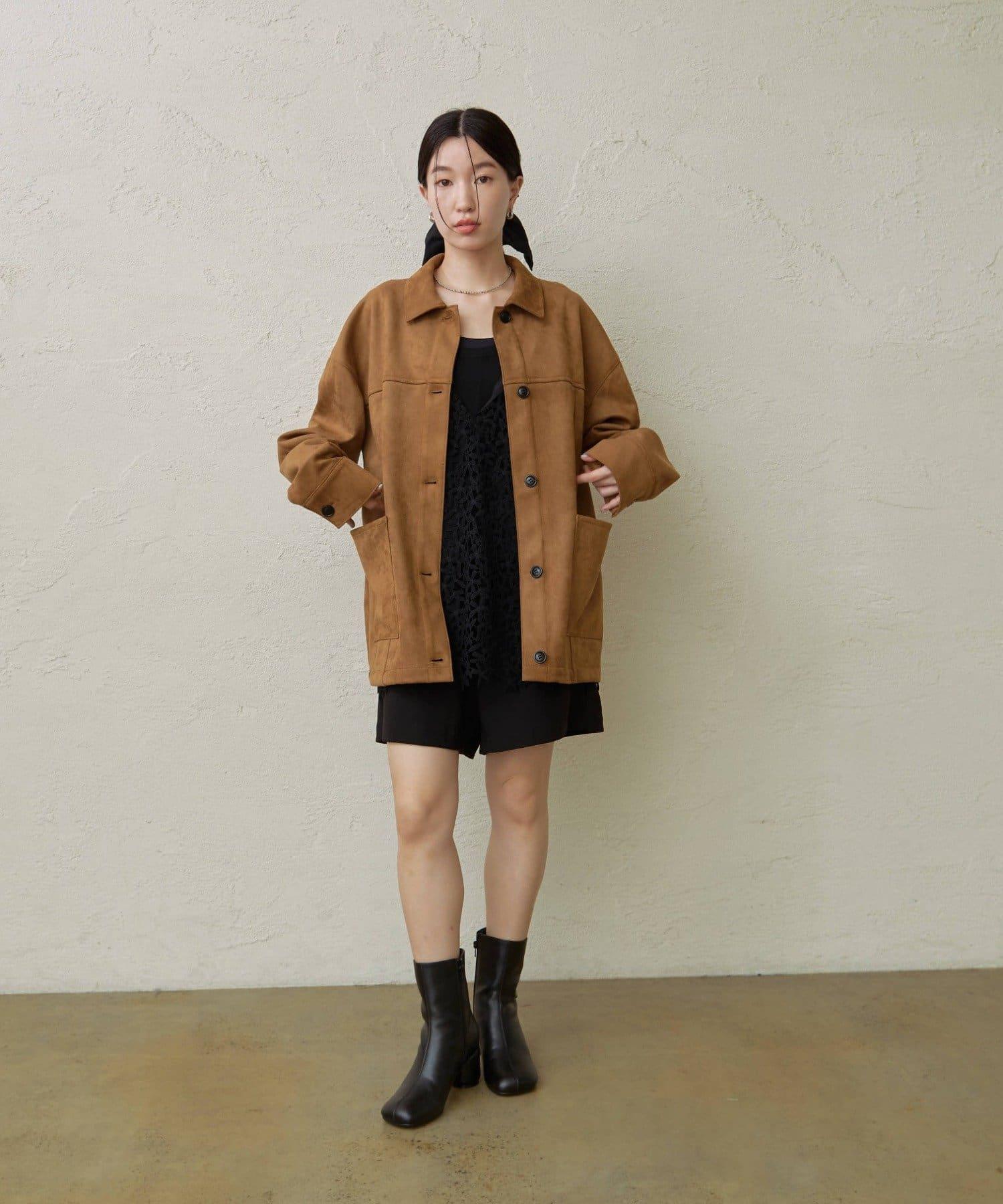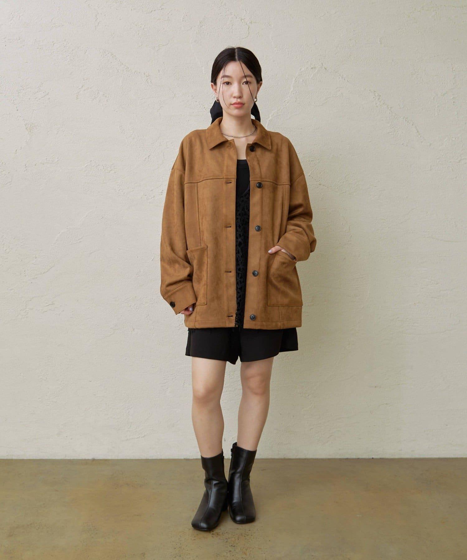 這款夾克採用時下流行的麂皮絨面料製成,穿上它就能感受到秋天的氣息。