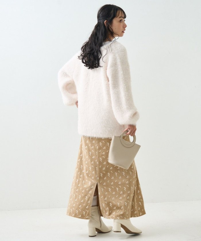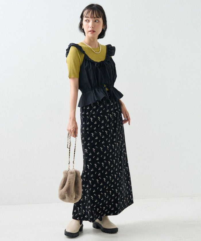 絲絨花朵刺繡長 T [商品編號:1120248902470]。