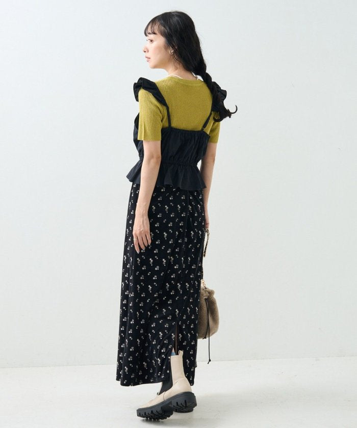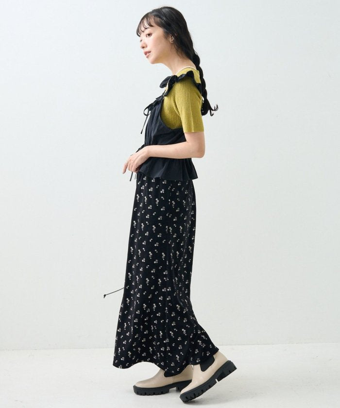 絲絨花朵刺繡吊帶連衣裙 [商品編號:1113248903260]。