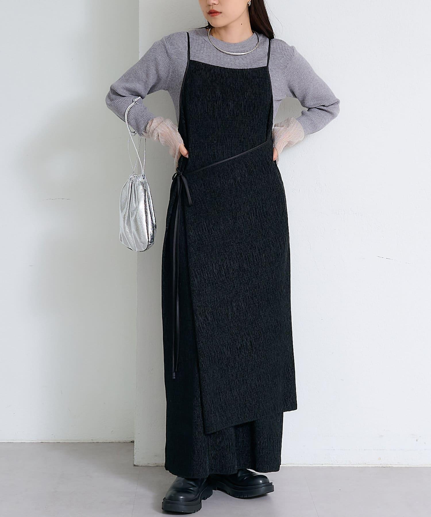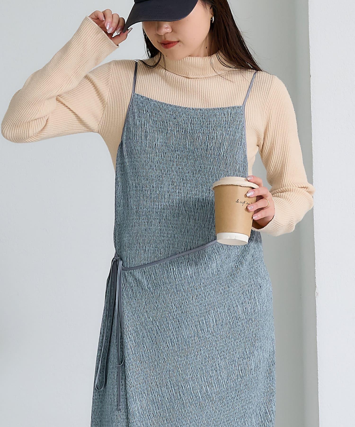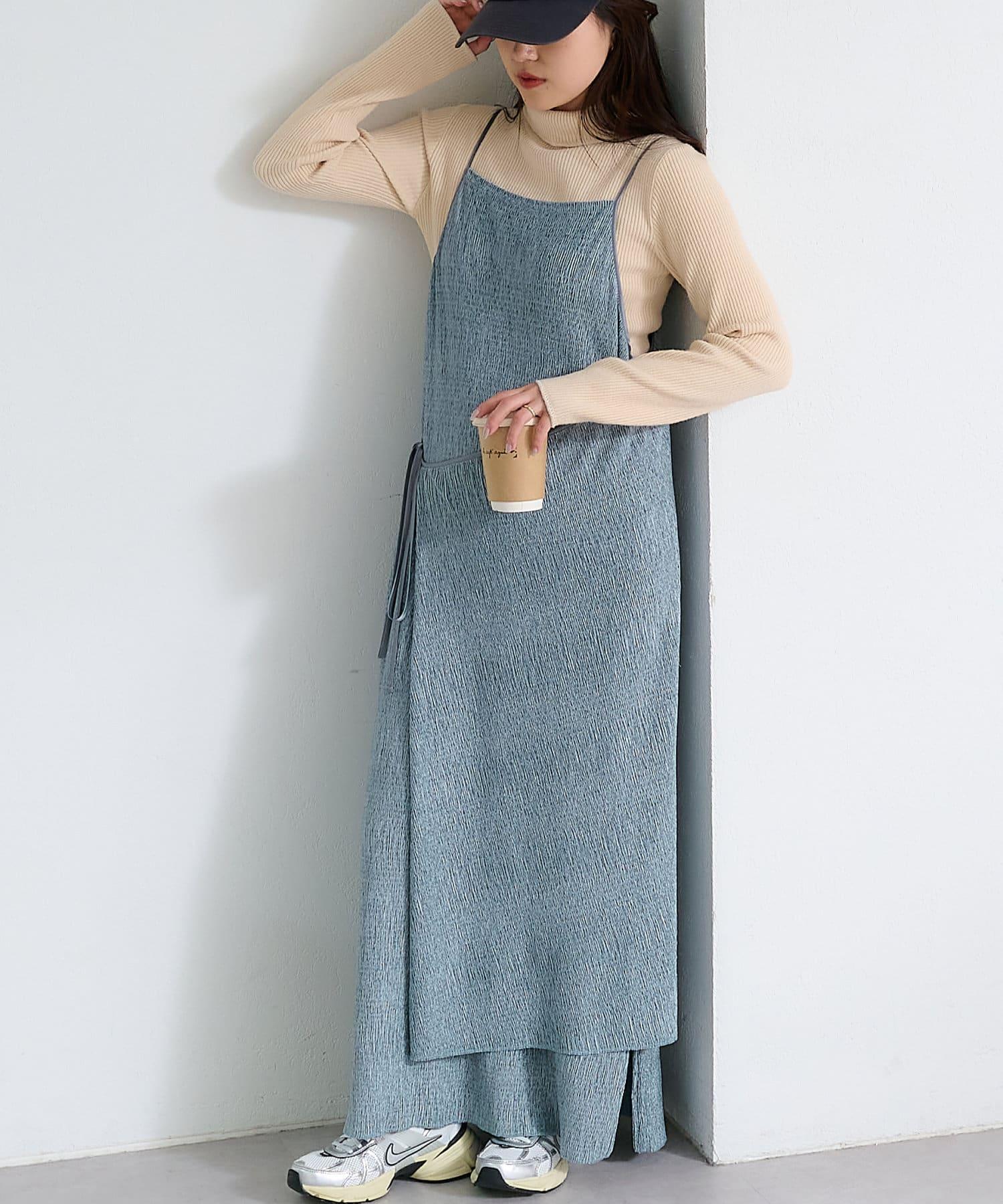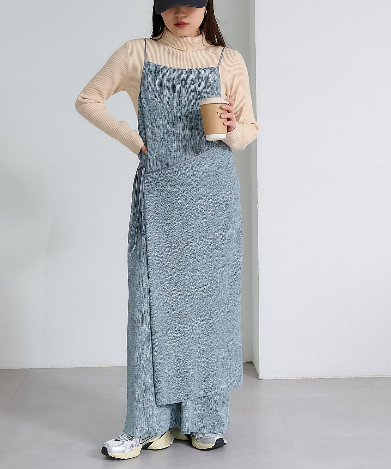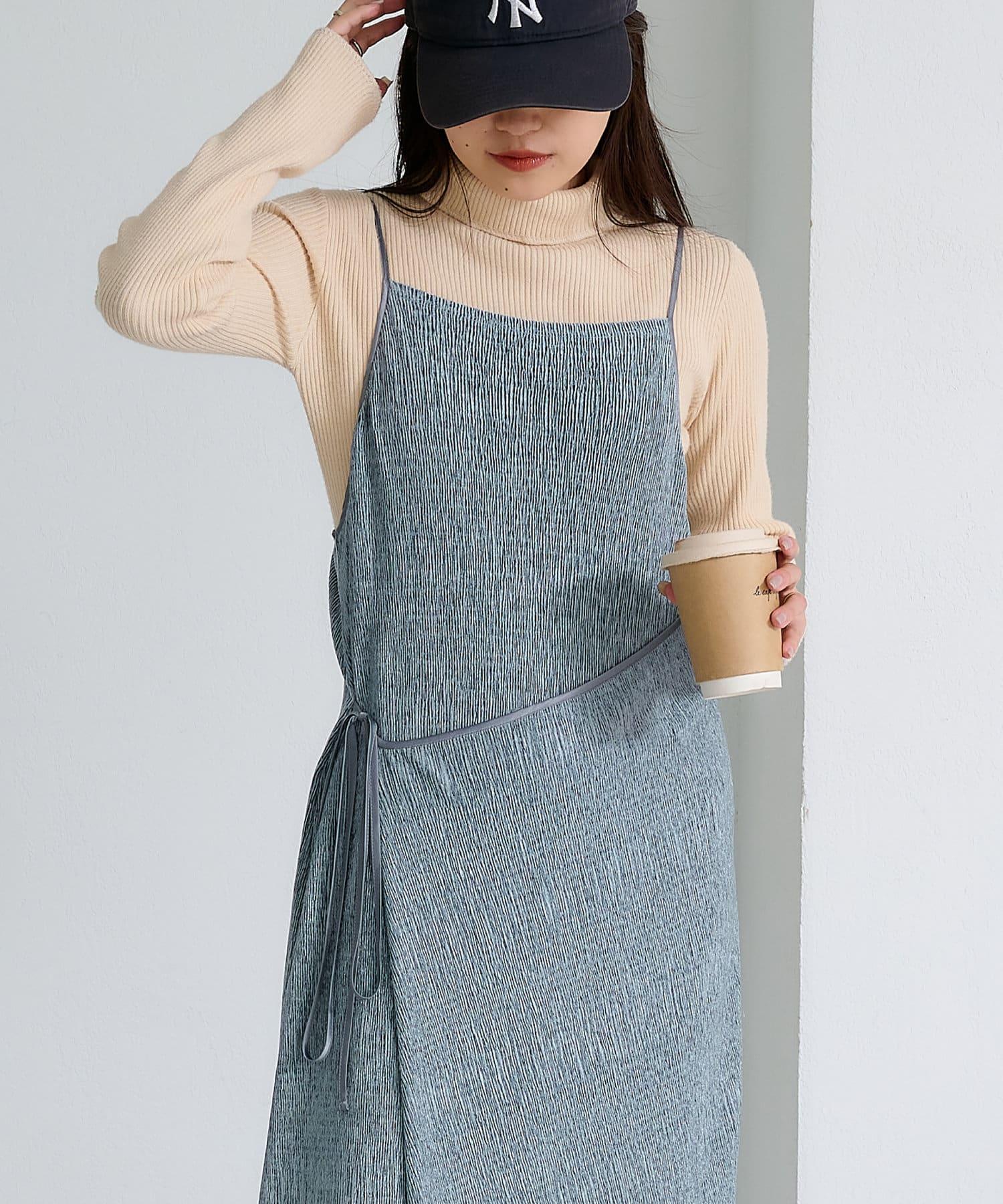 單件式連衣裙,採用時髦的裹身設計,單穿也很好看。