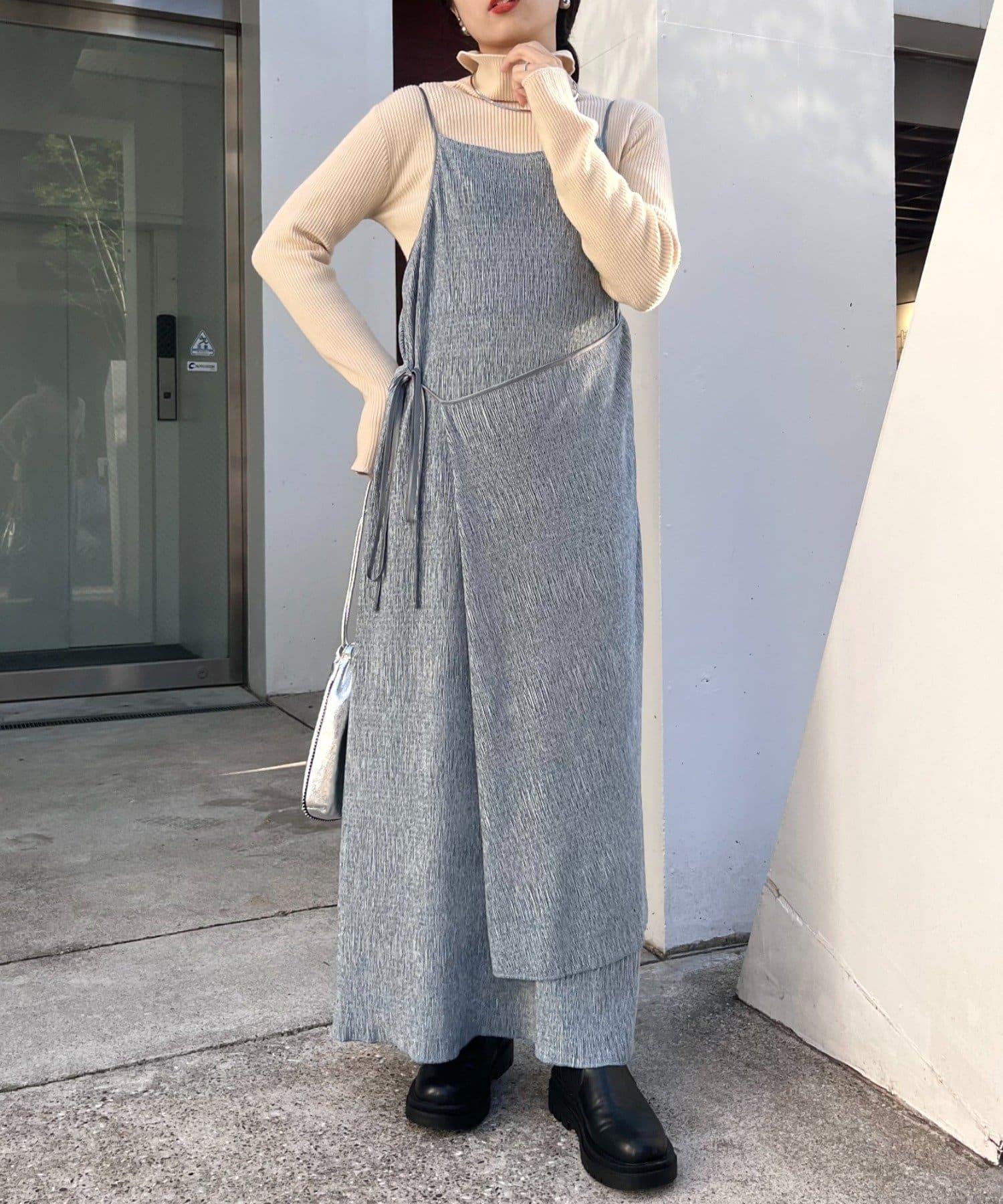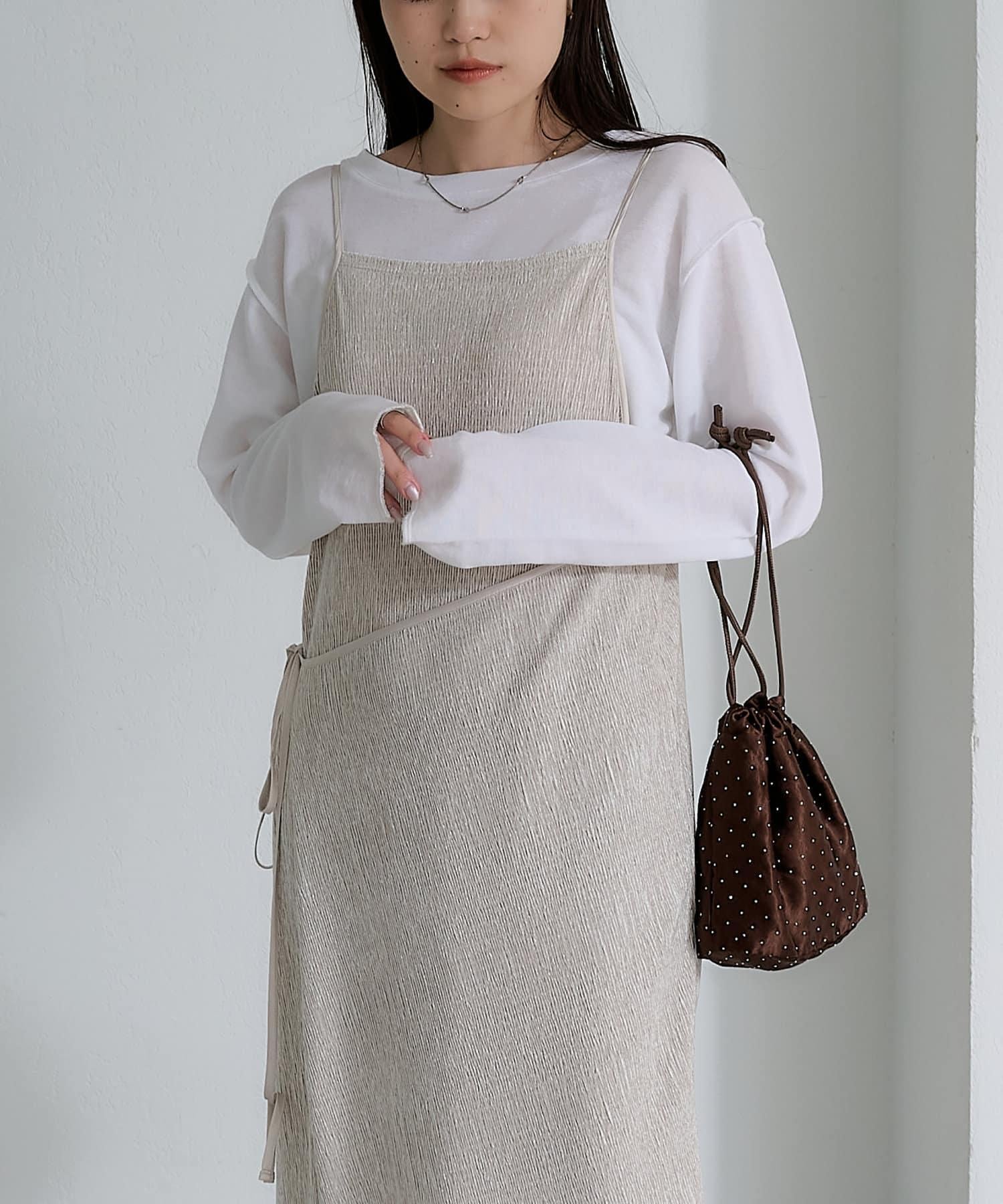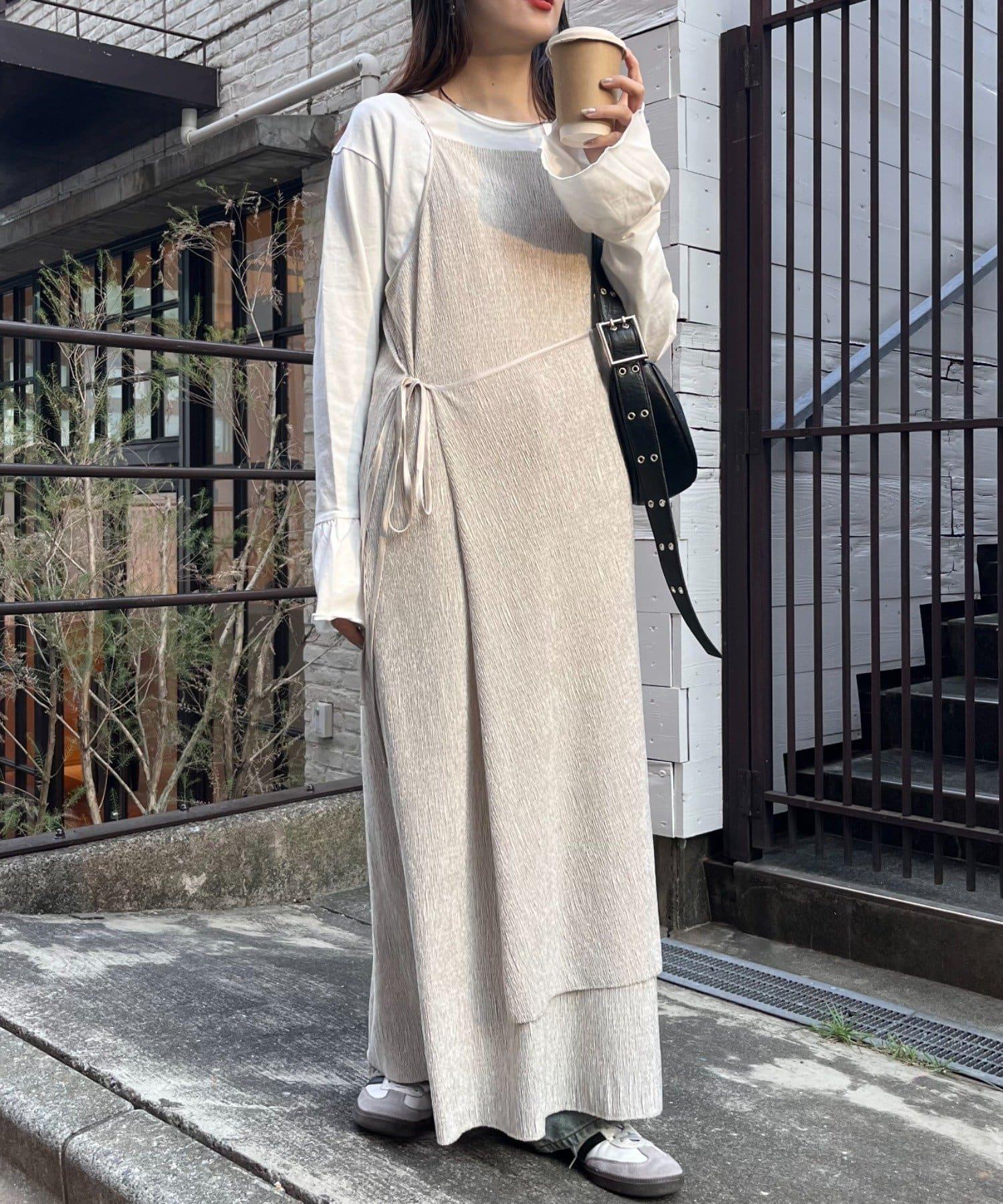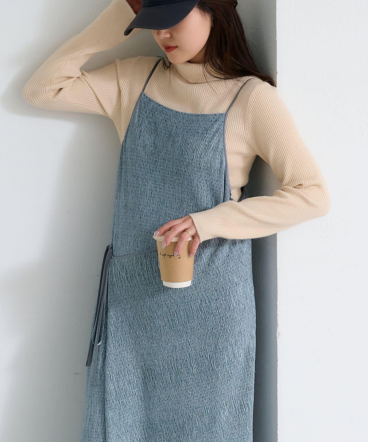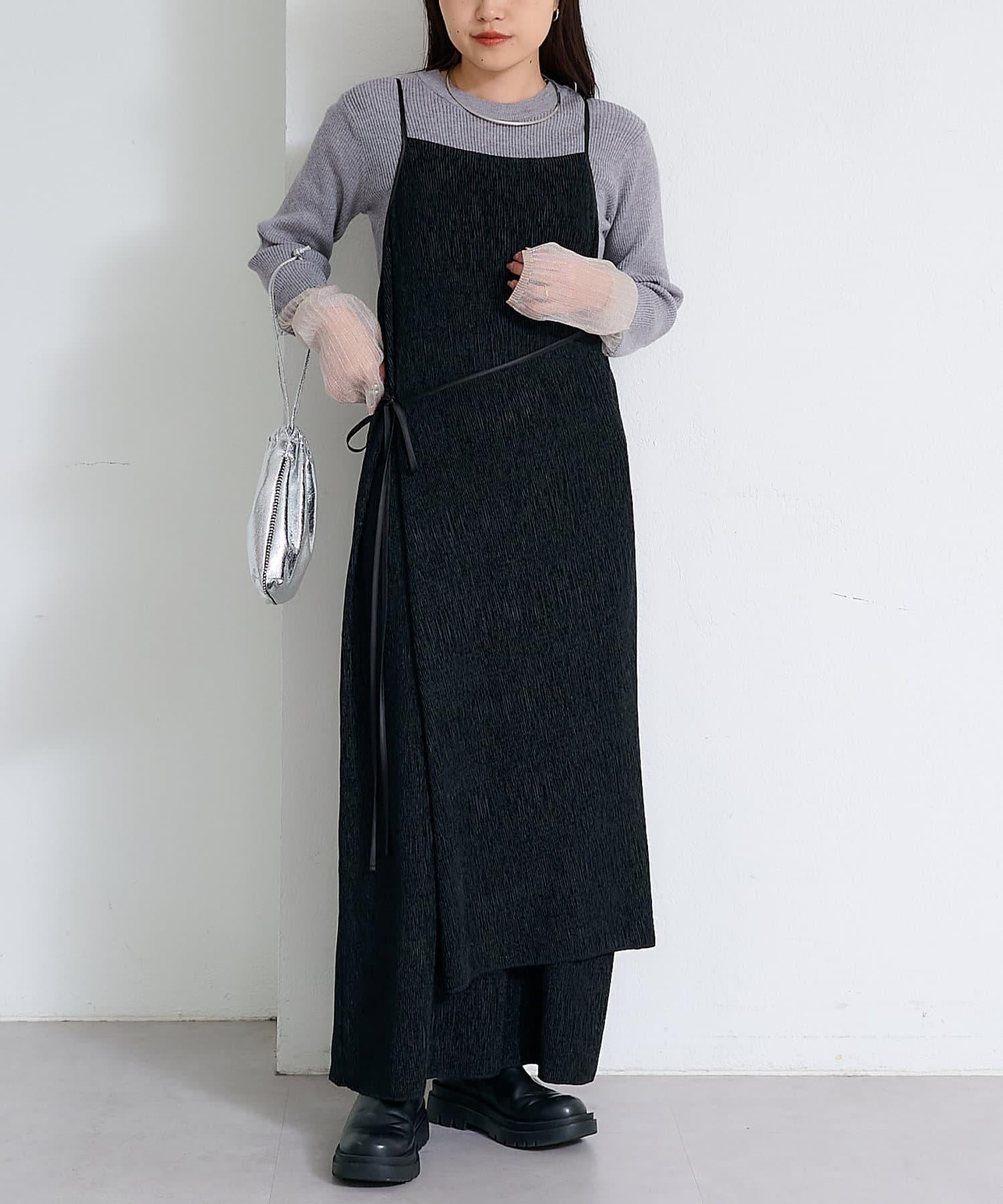 單件式連衣裙,採用時髦的裹身設計,單穿也很好看。