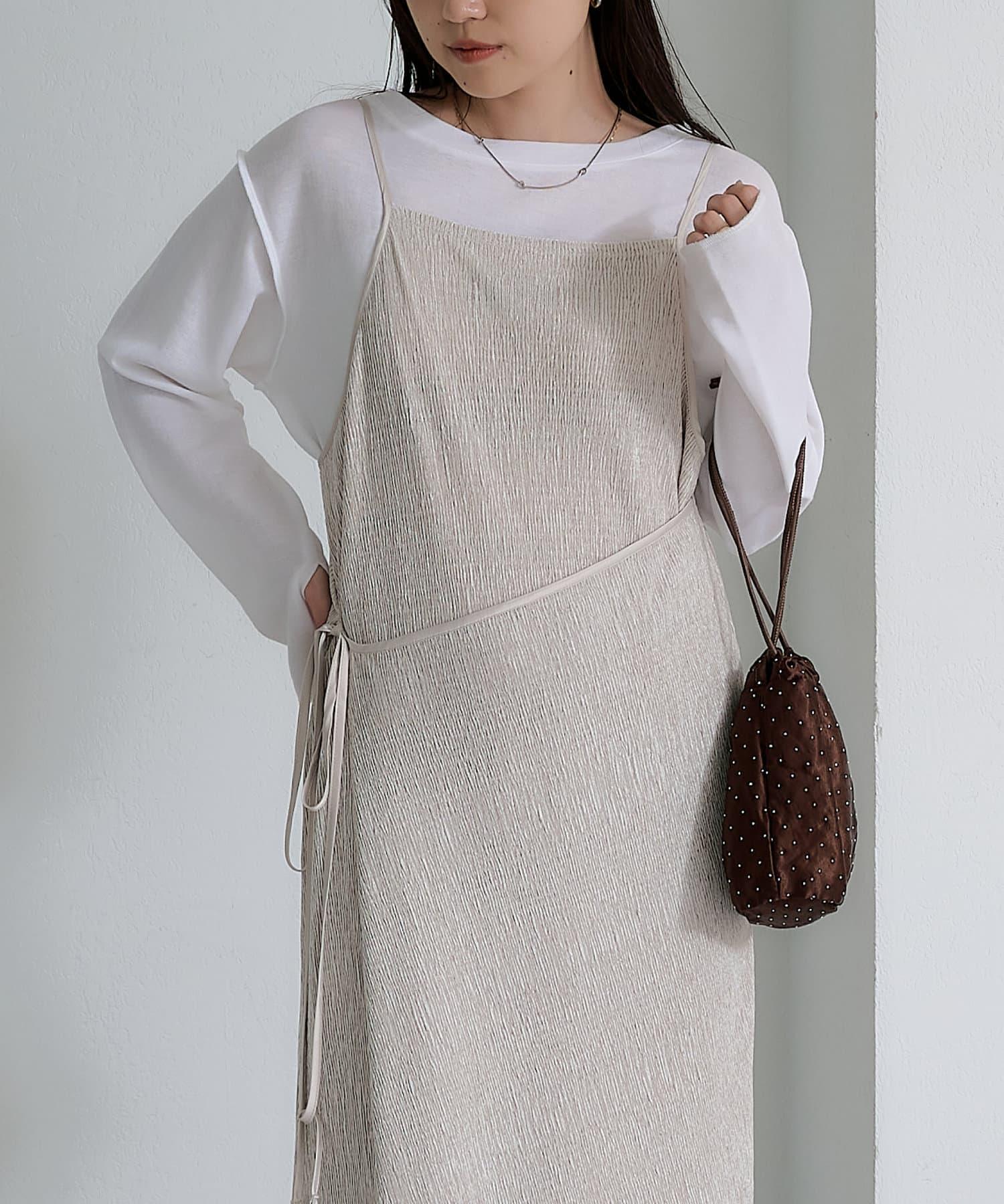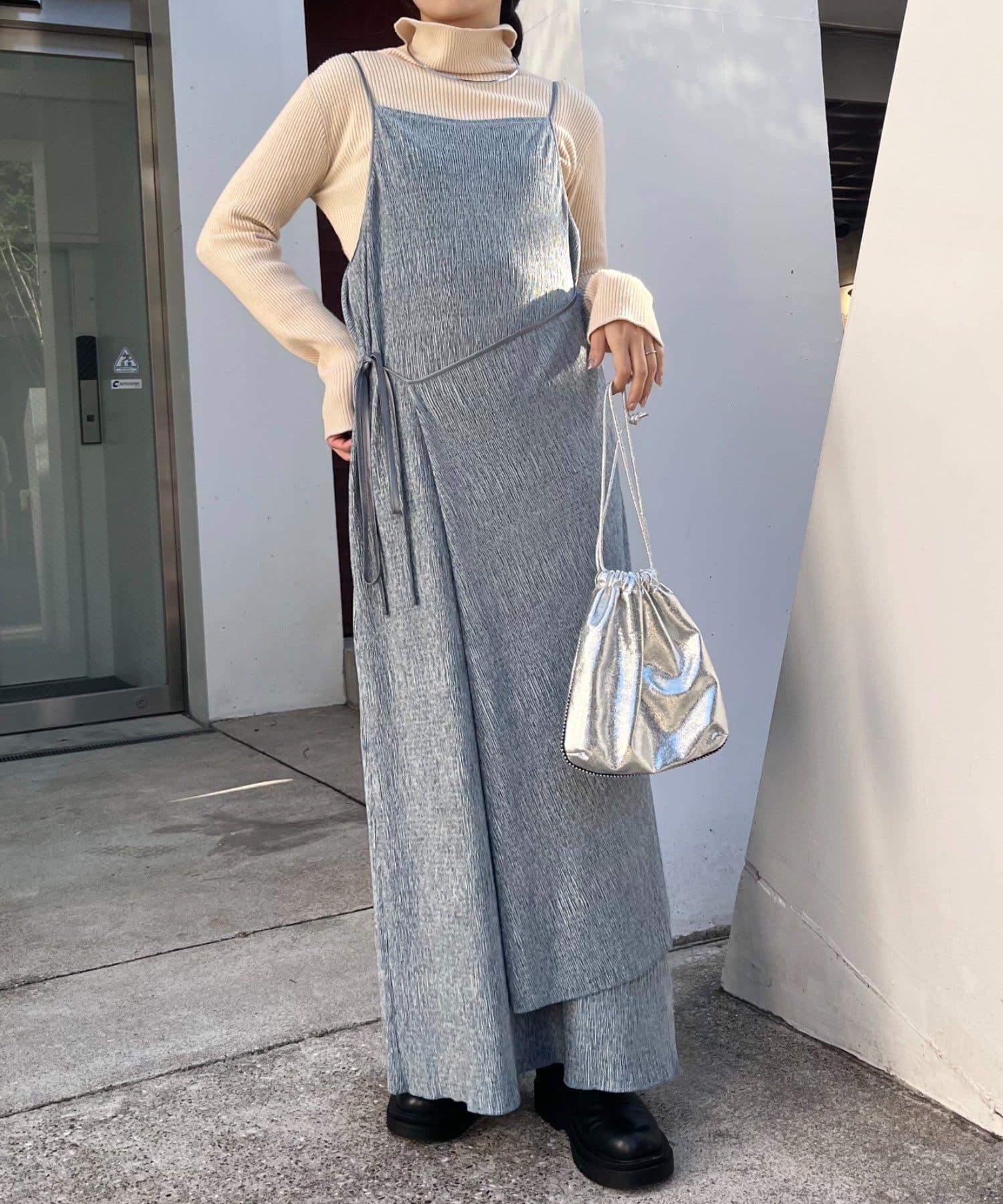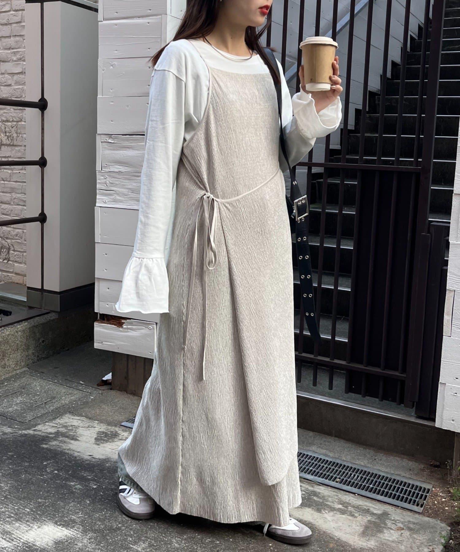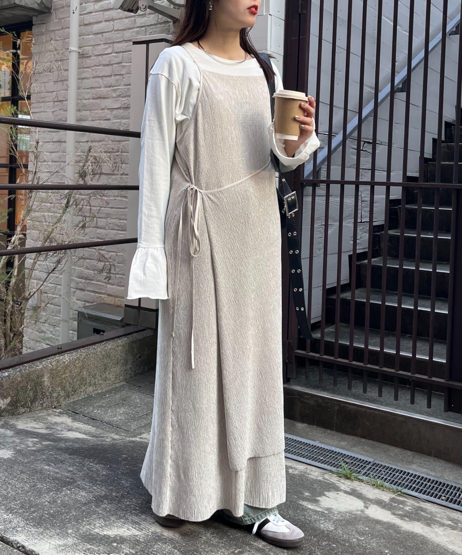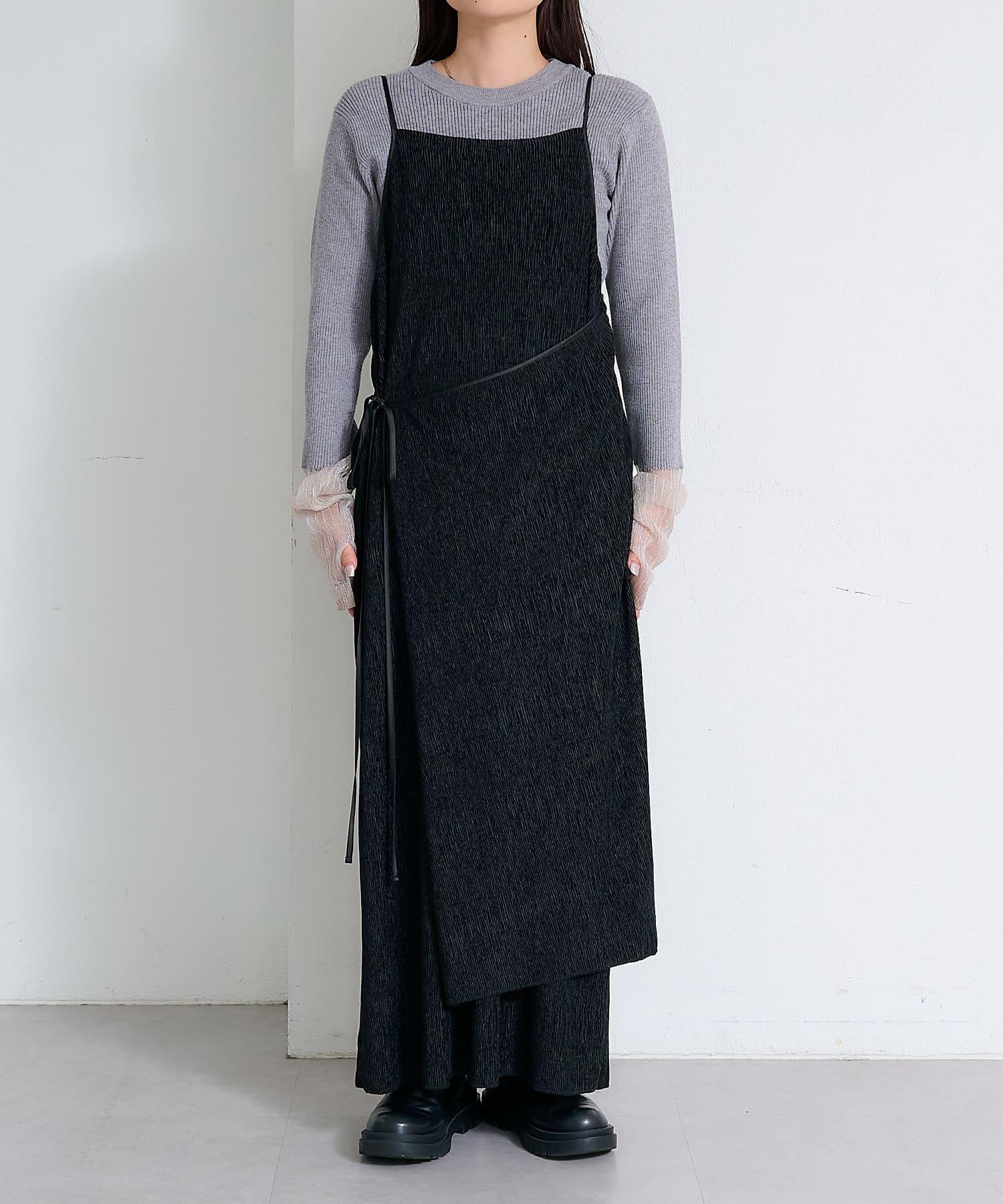 單件式連衣裙,採用時髦的裹身設計,單穿也很好看。