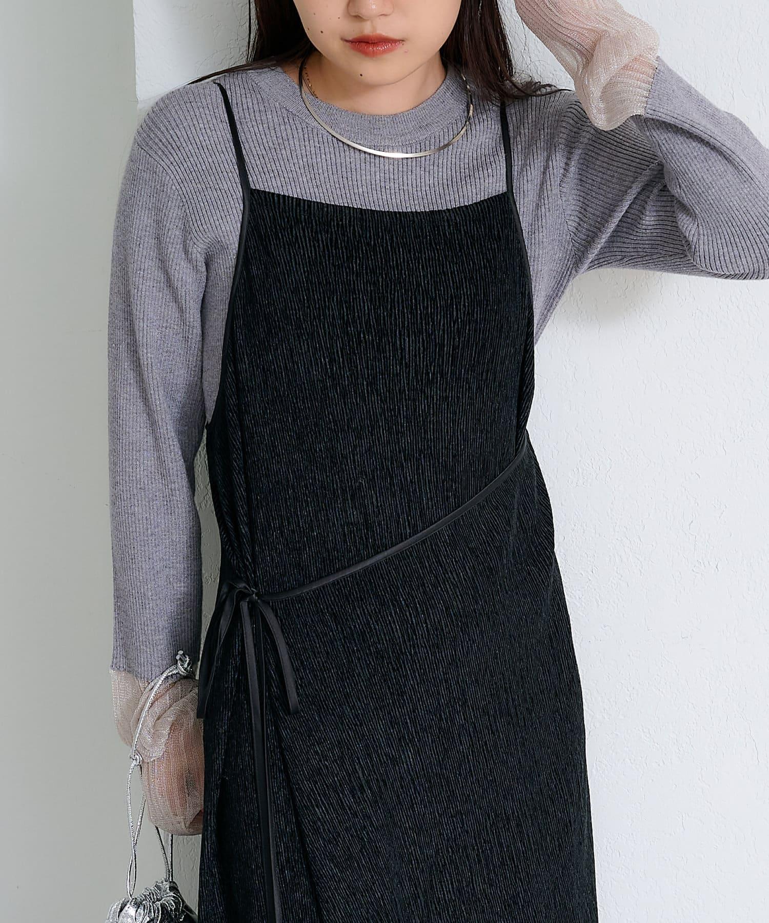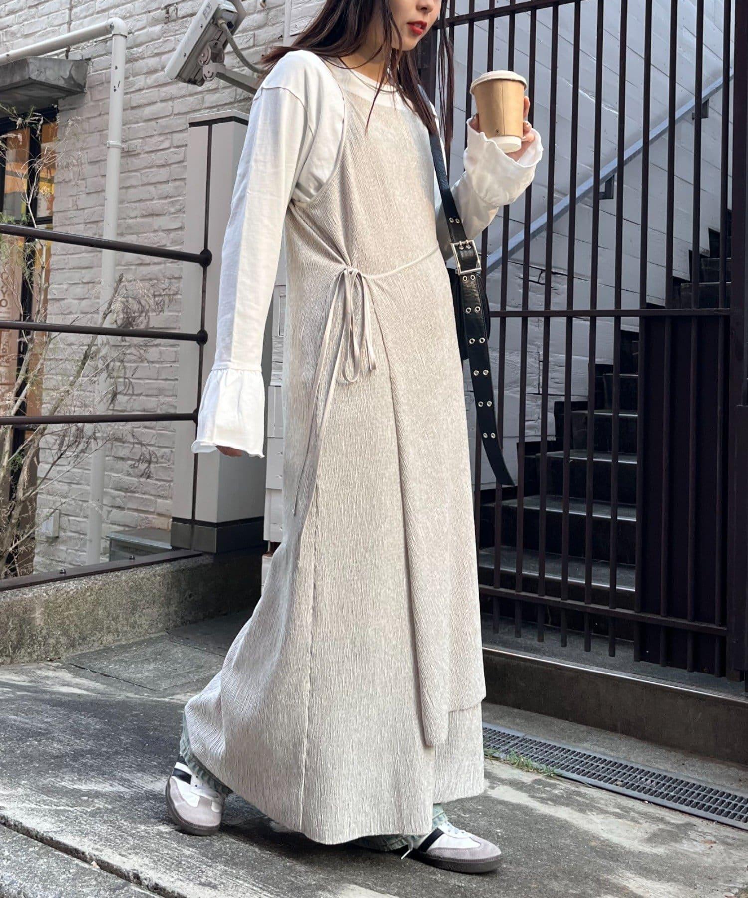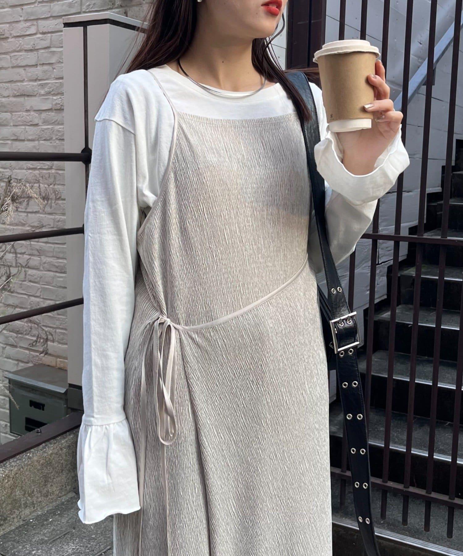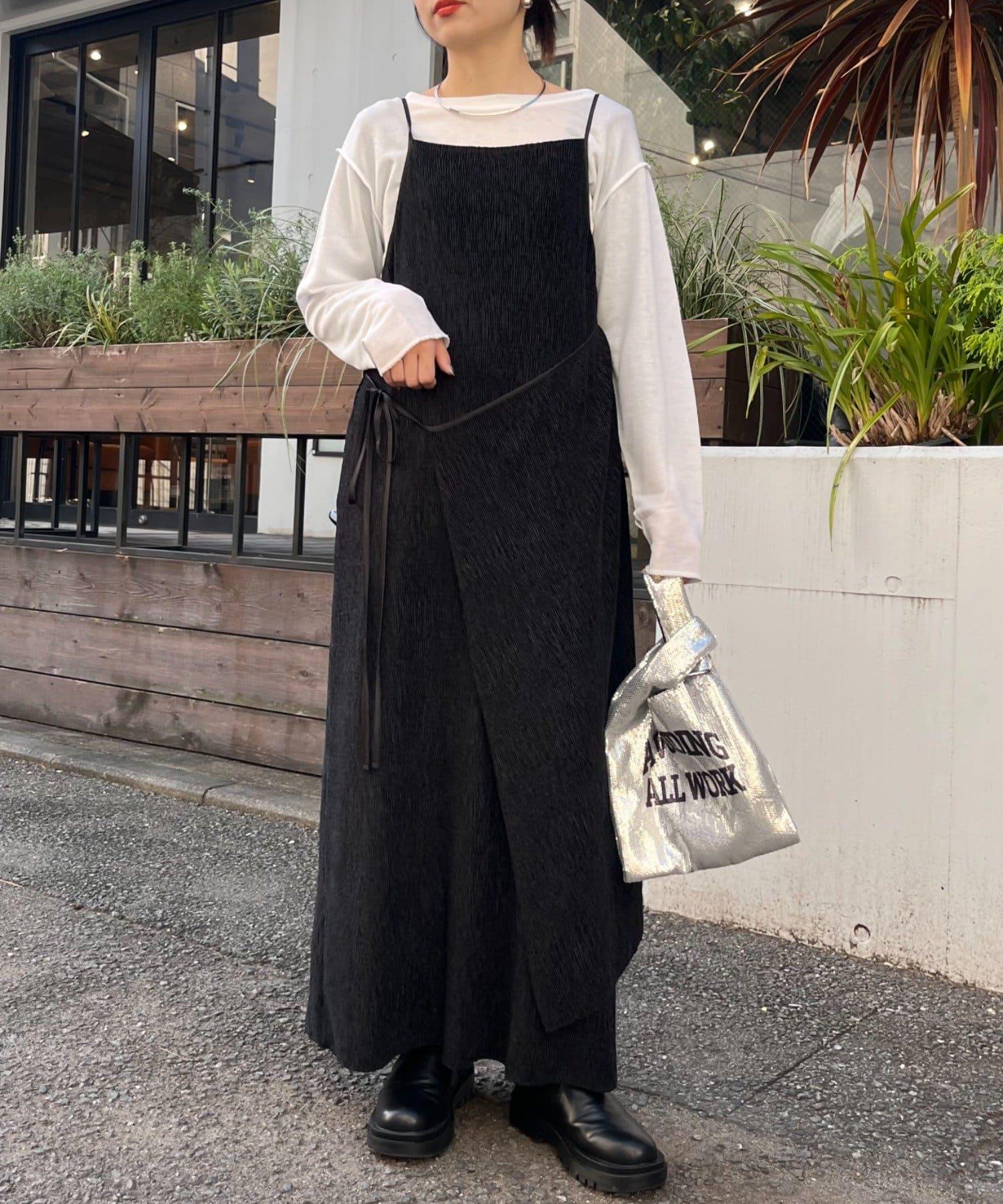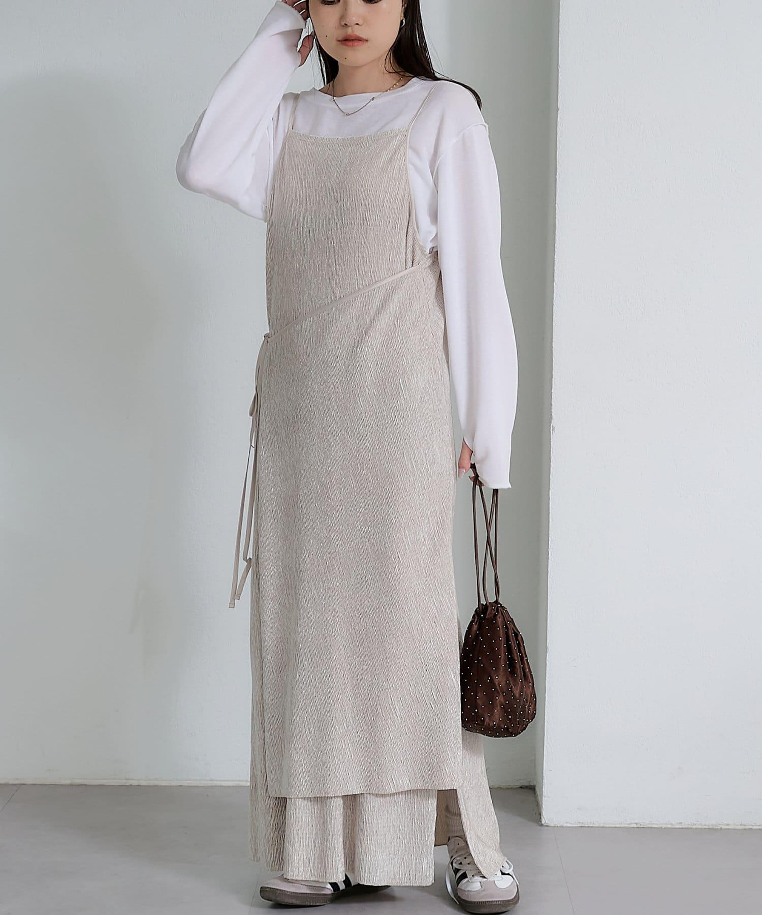 單件式連衣裙,採用時髦的裹身設計,單穿也很好看。