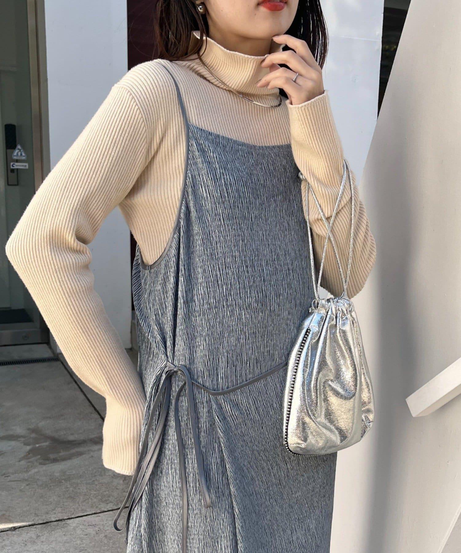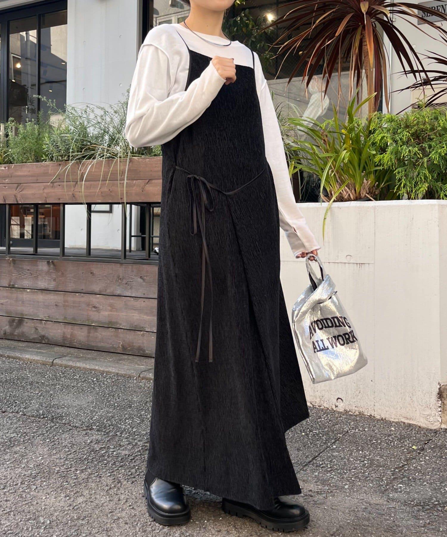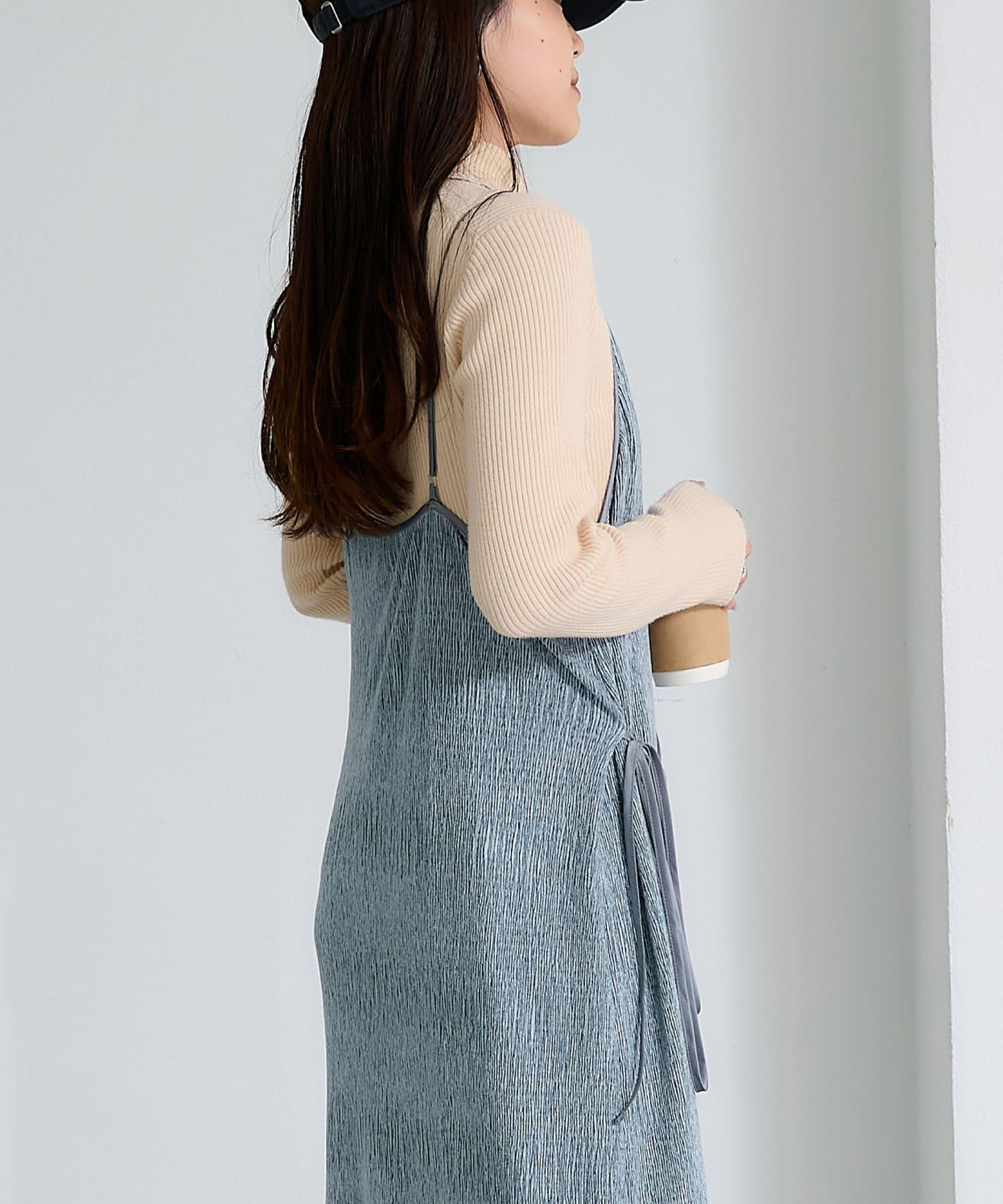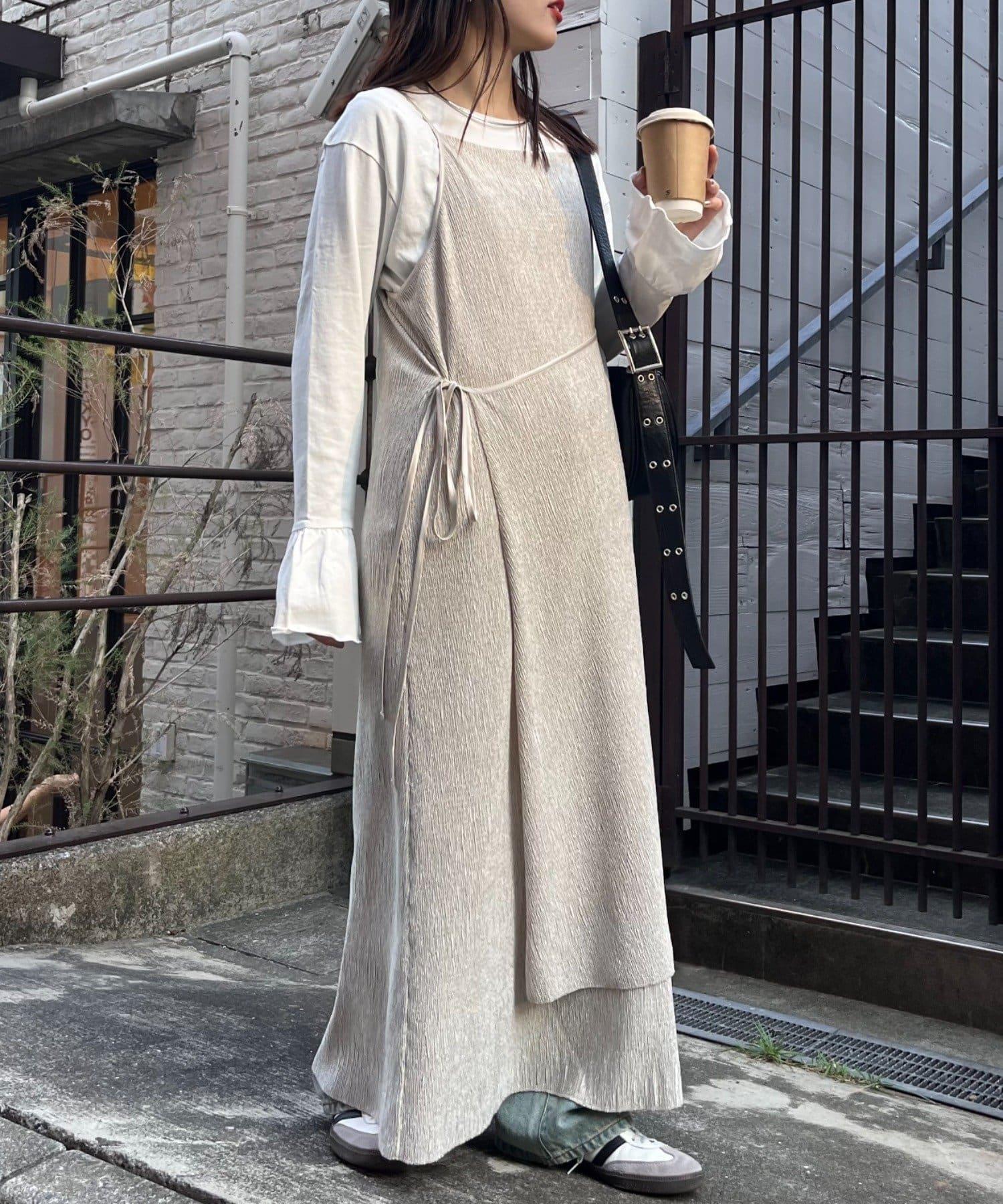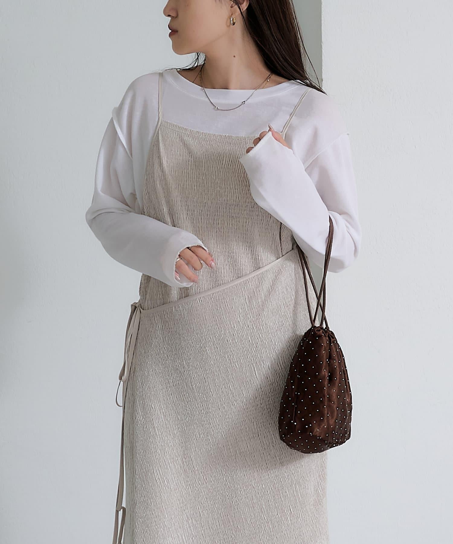 單件式連衣裙,採用時髦的裹身設計,單穿也很好看。