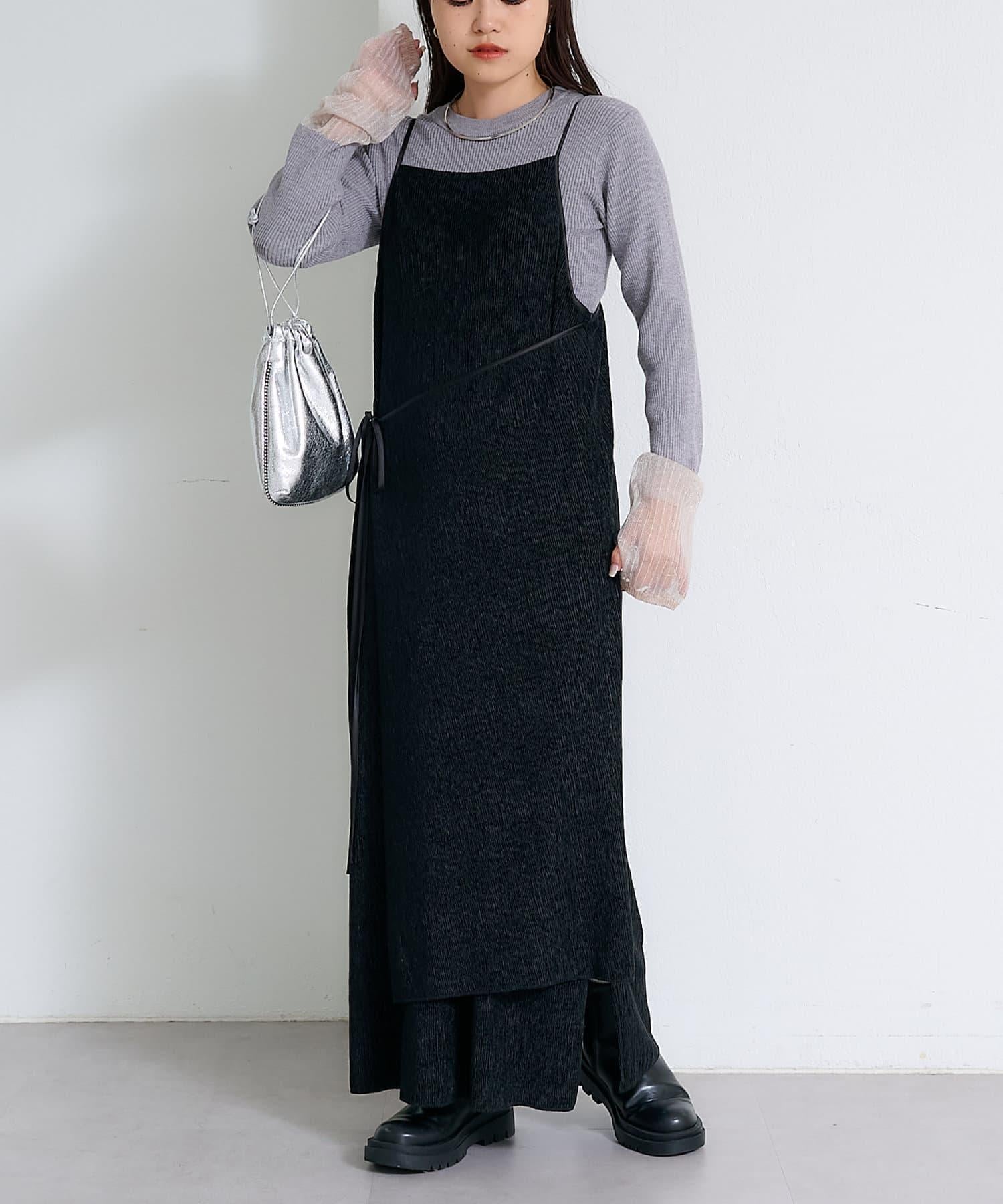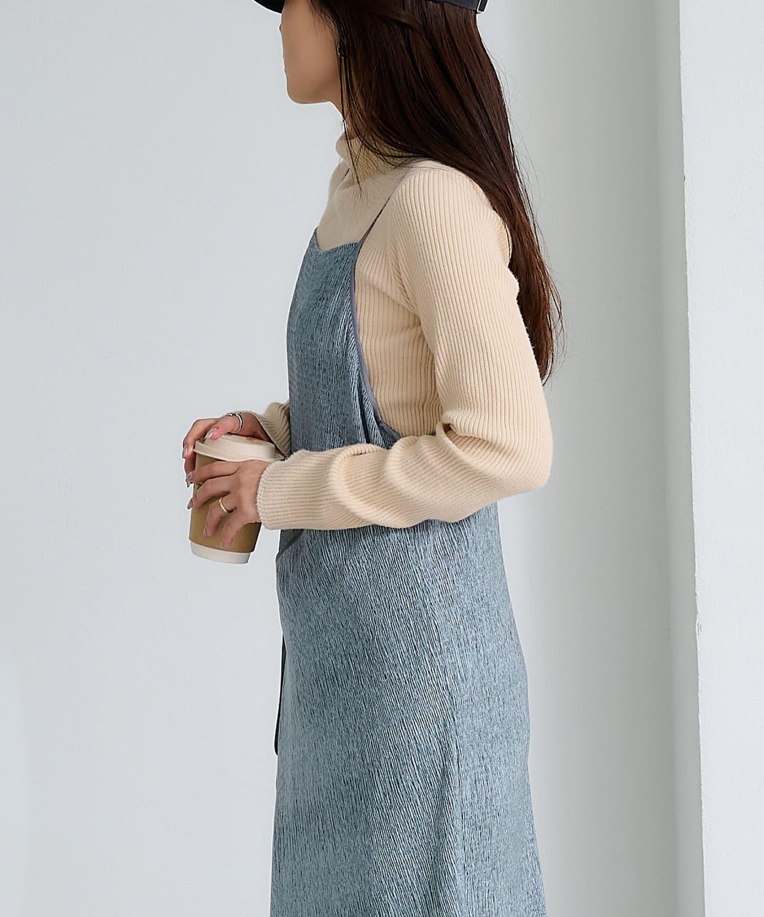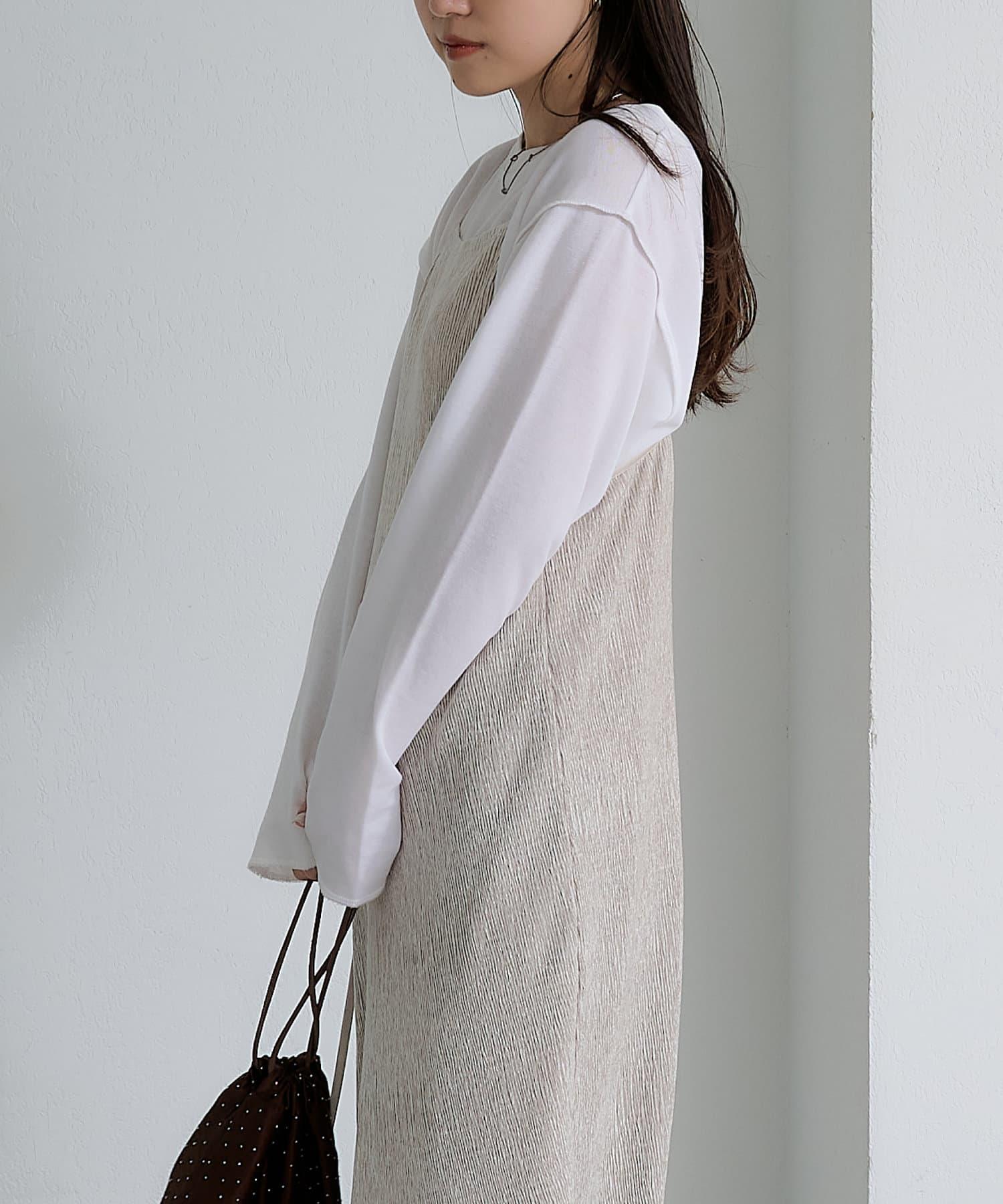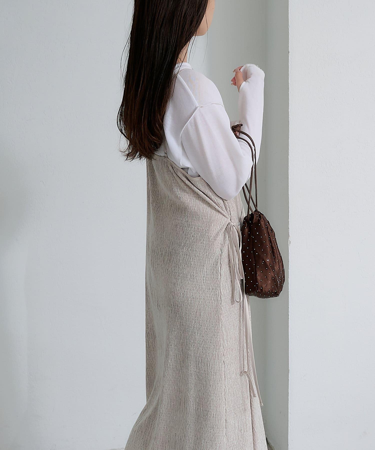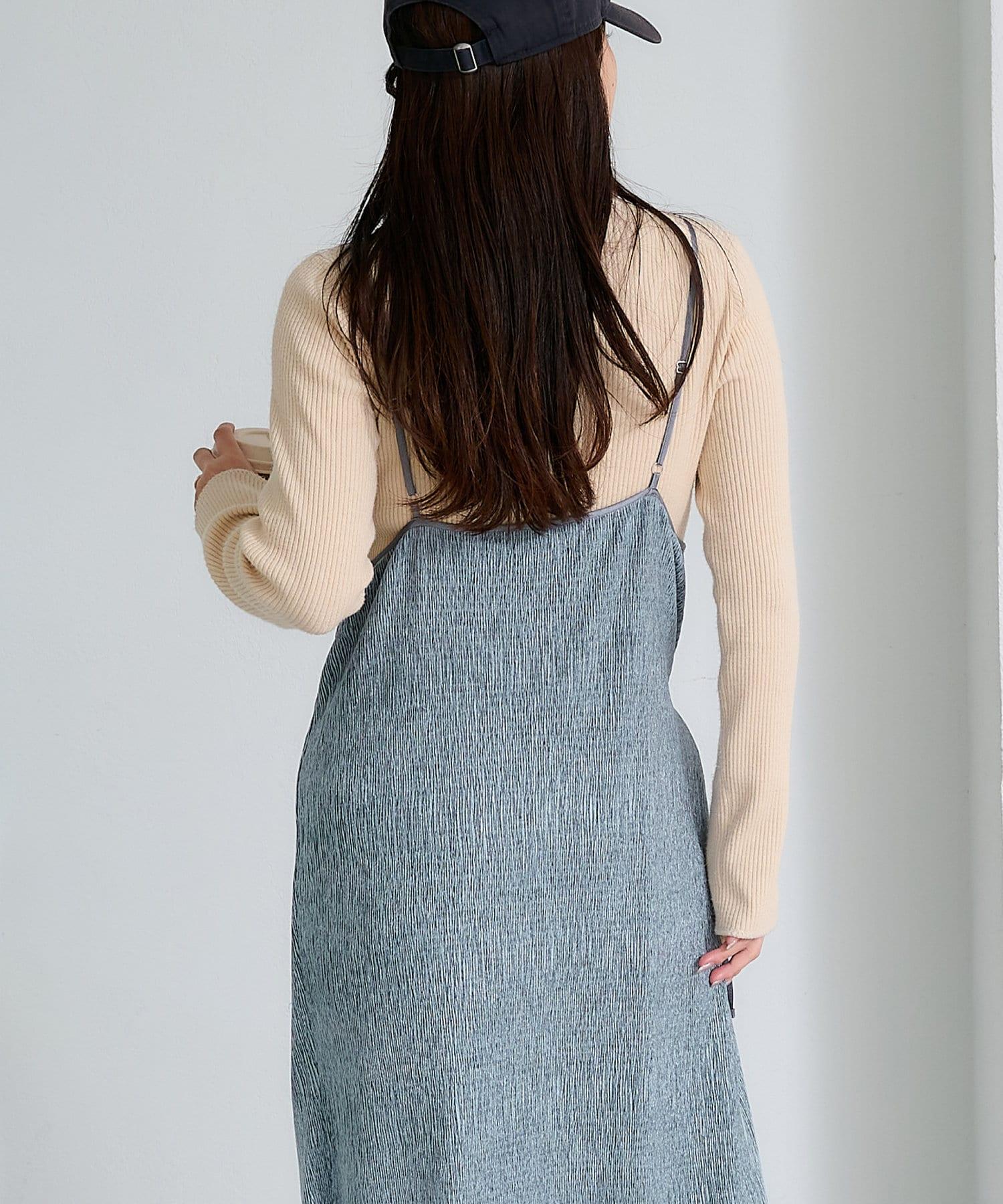 單件式連衣裙,採用時髦的裹身設計,單穿也很好看。