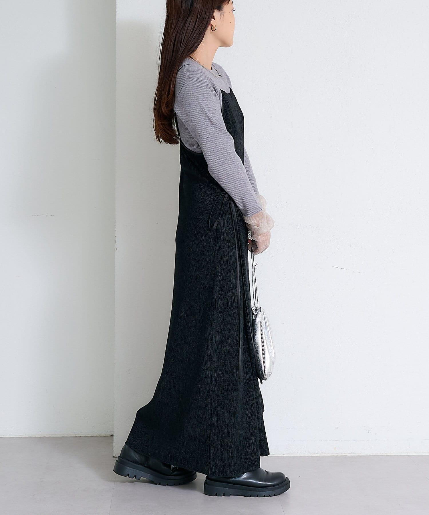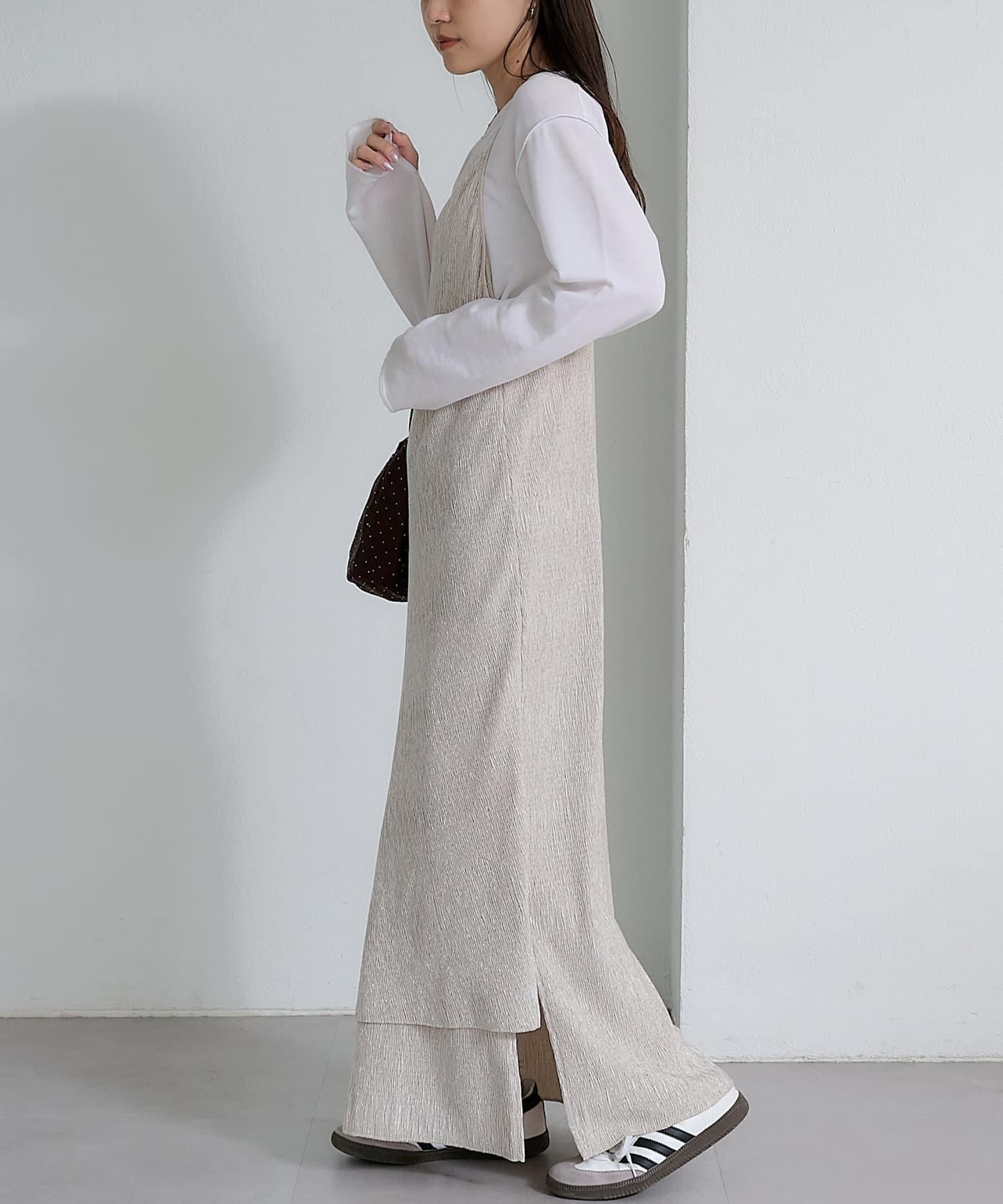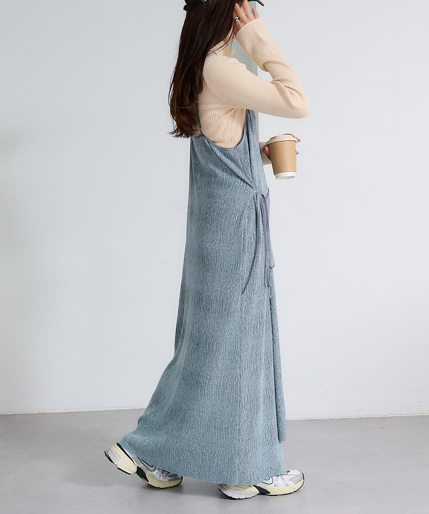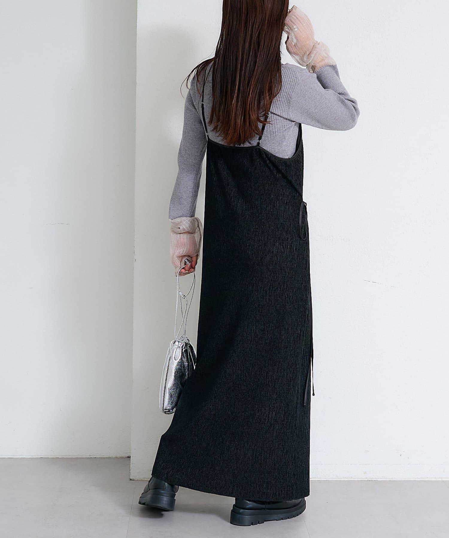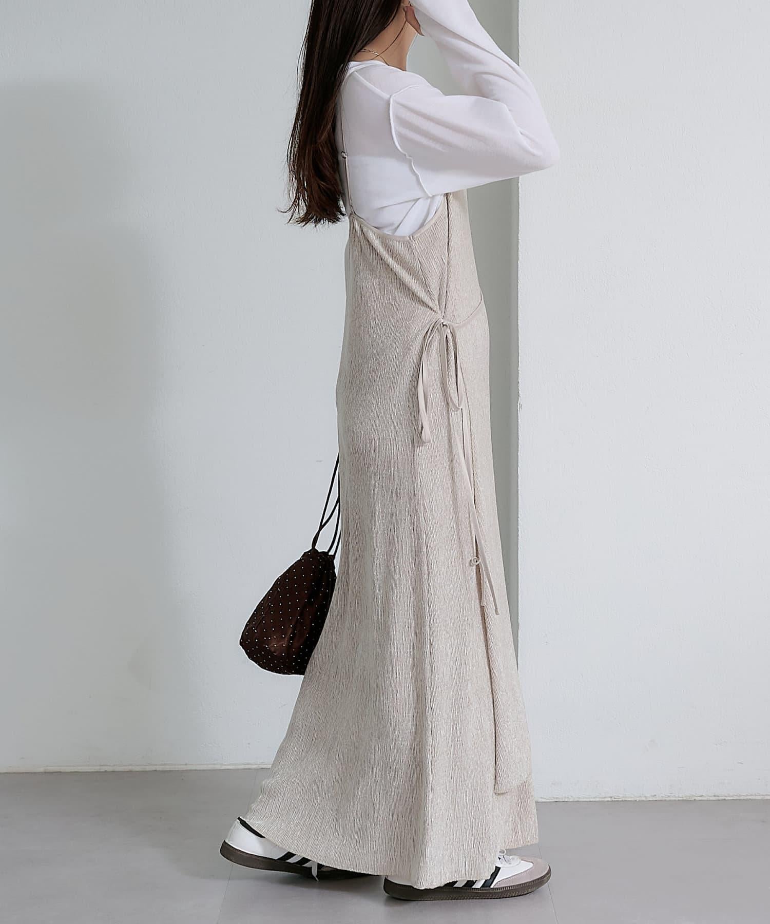 單件式連衣裙,採用時髦的裹身設計,單穿也很好看。