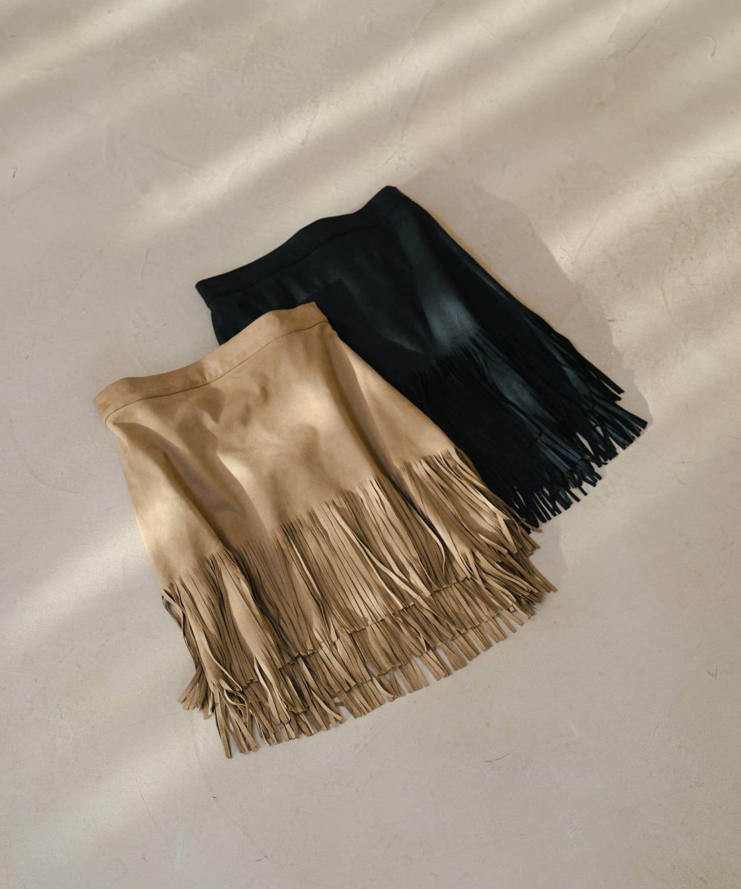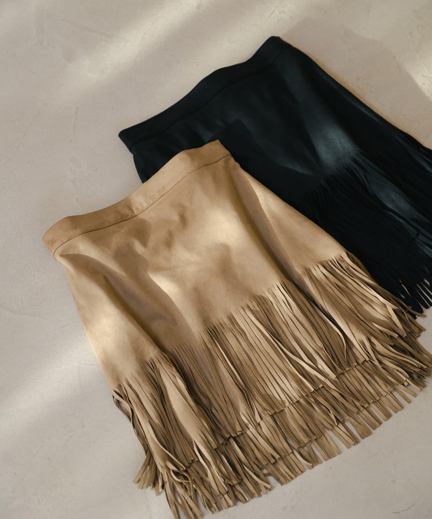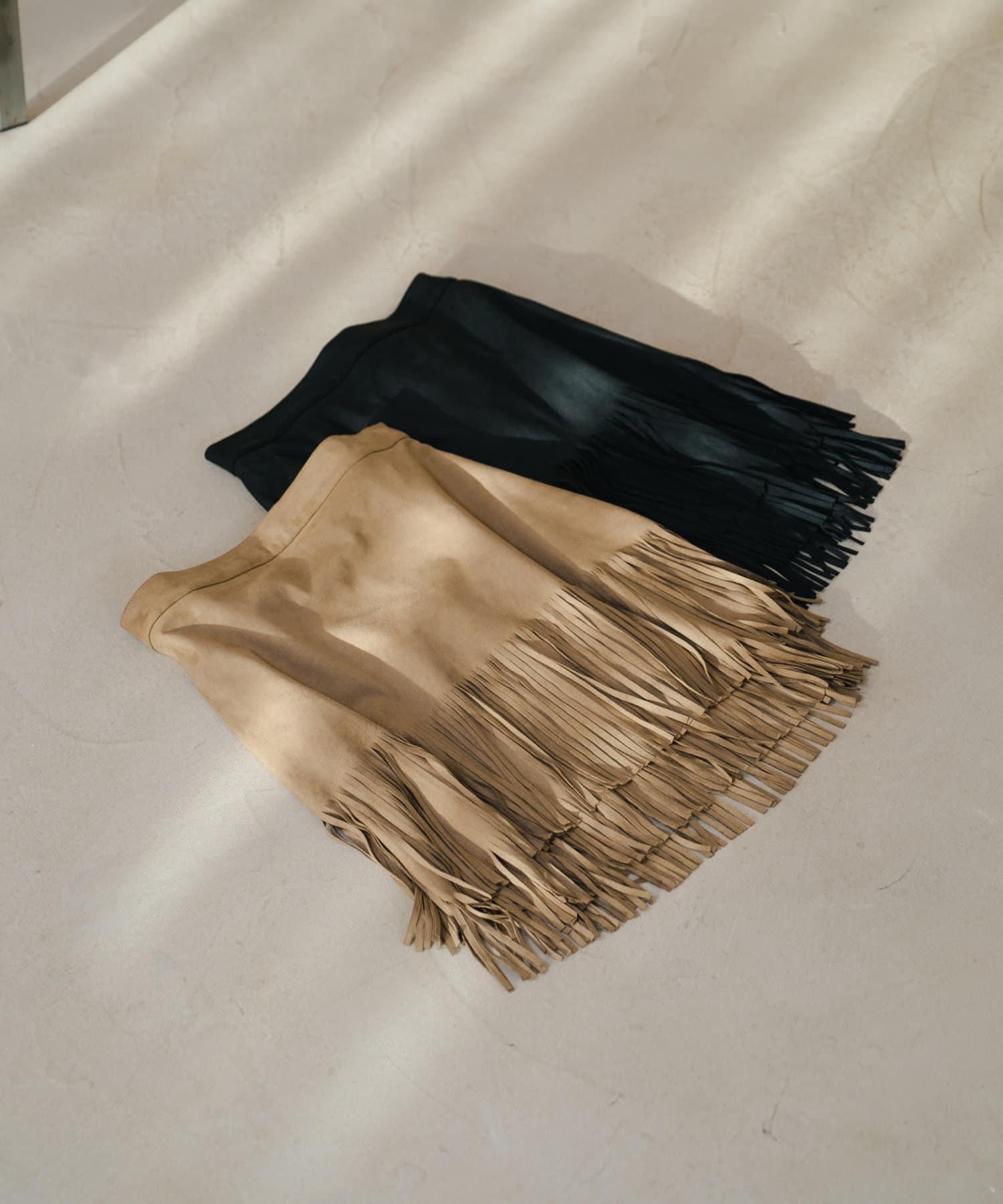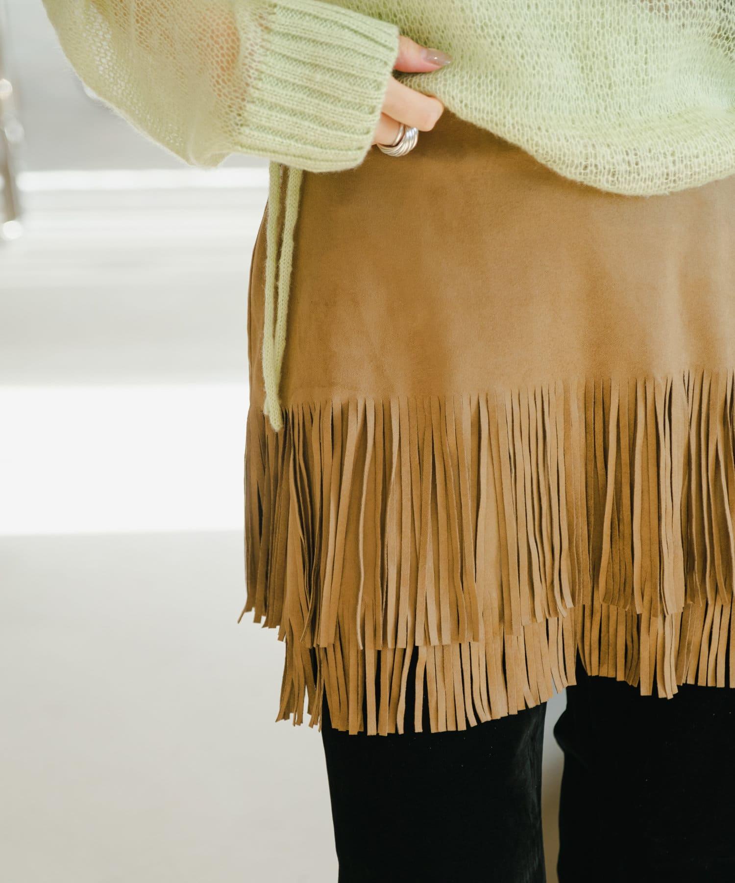 引人注目的麂皮裙,下襬飾有流蘇