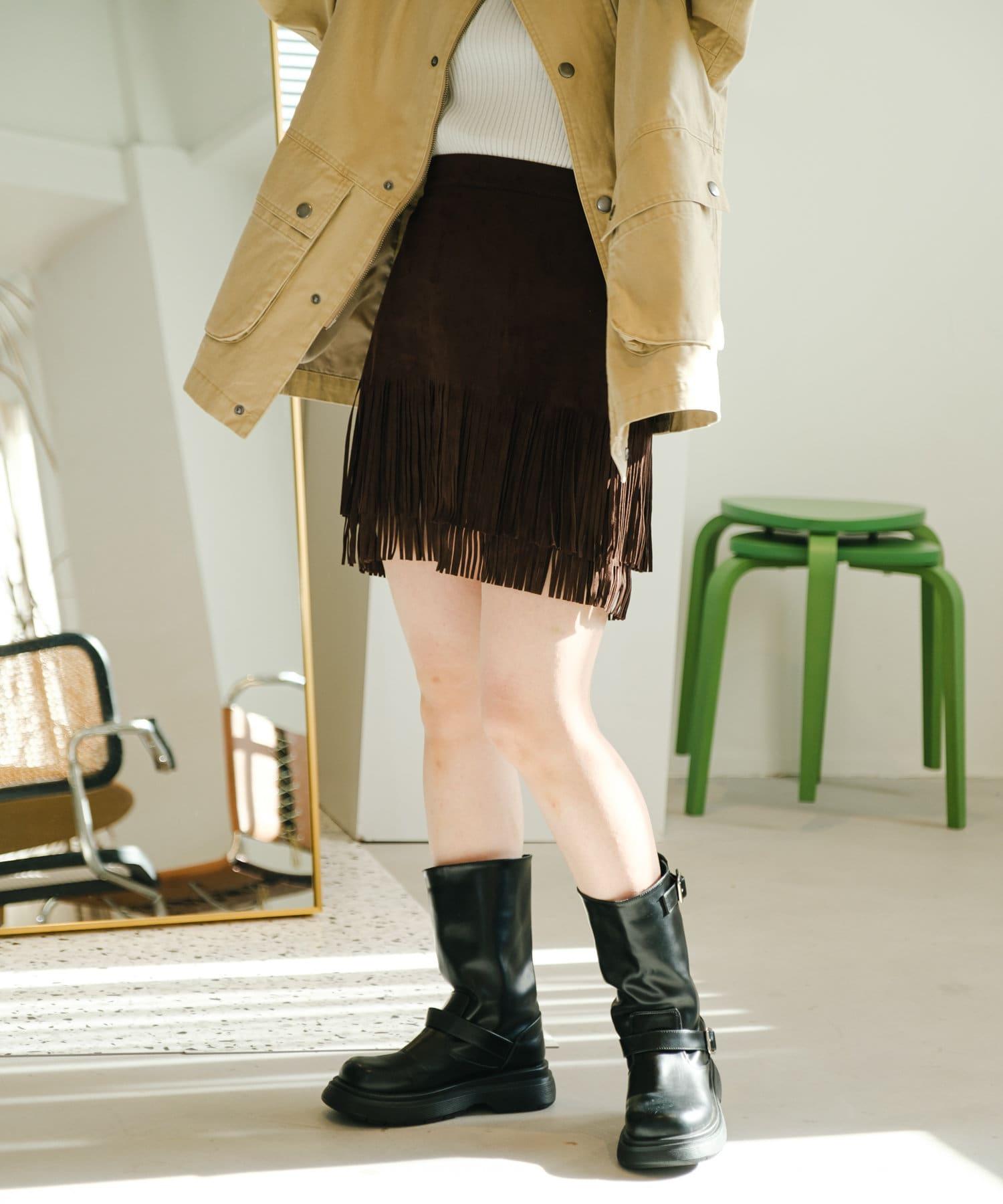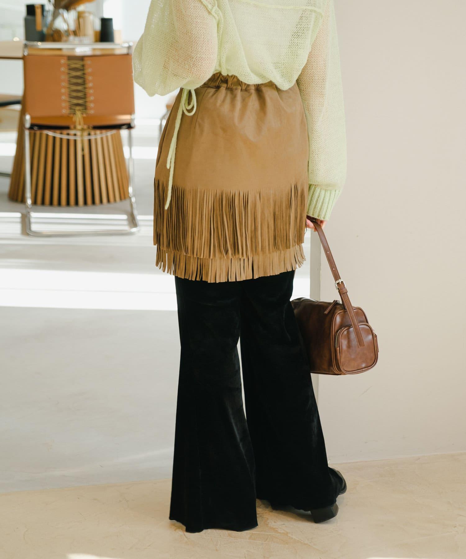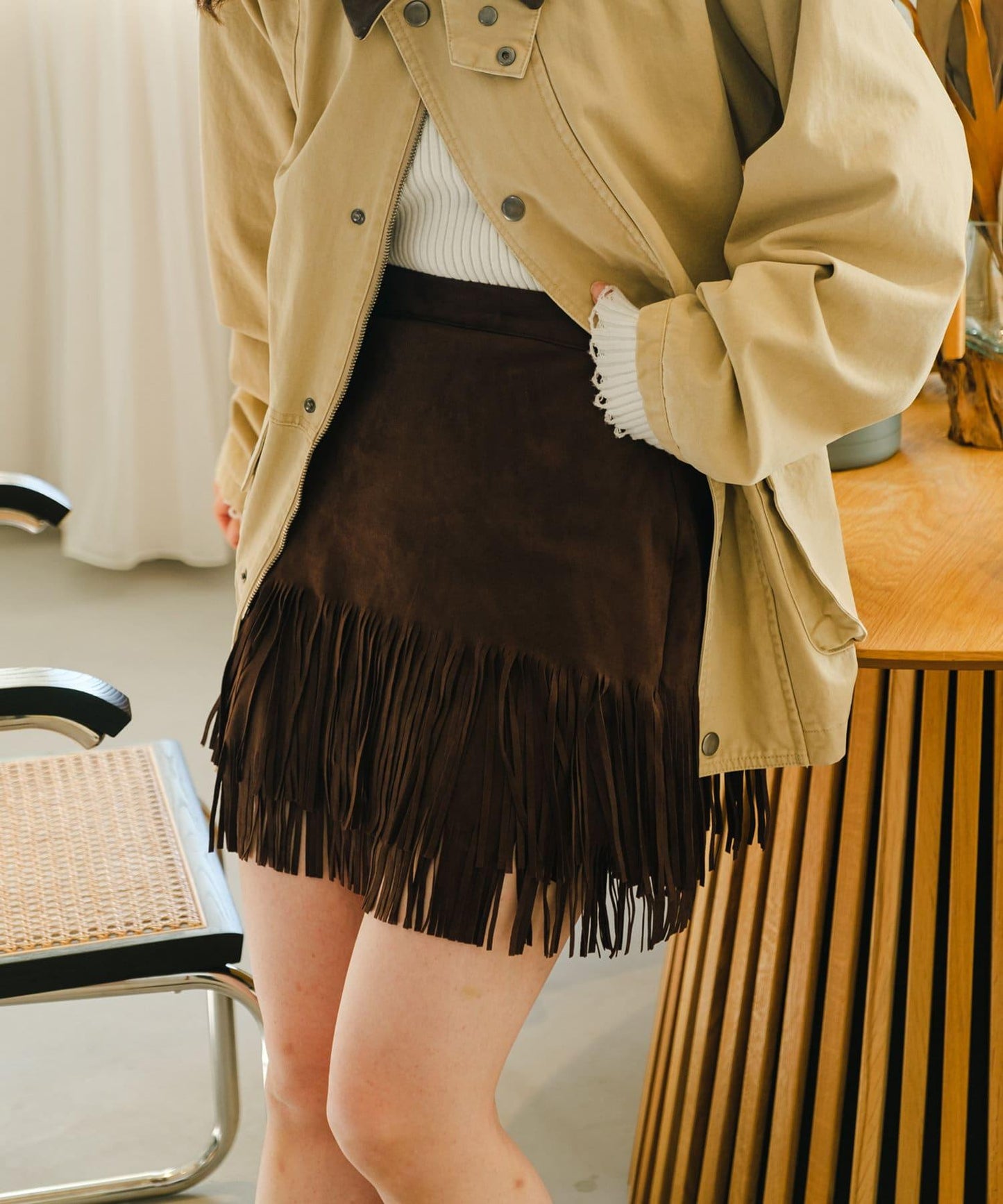 引人注目的麂皮裙,下襬飾有流蘇