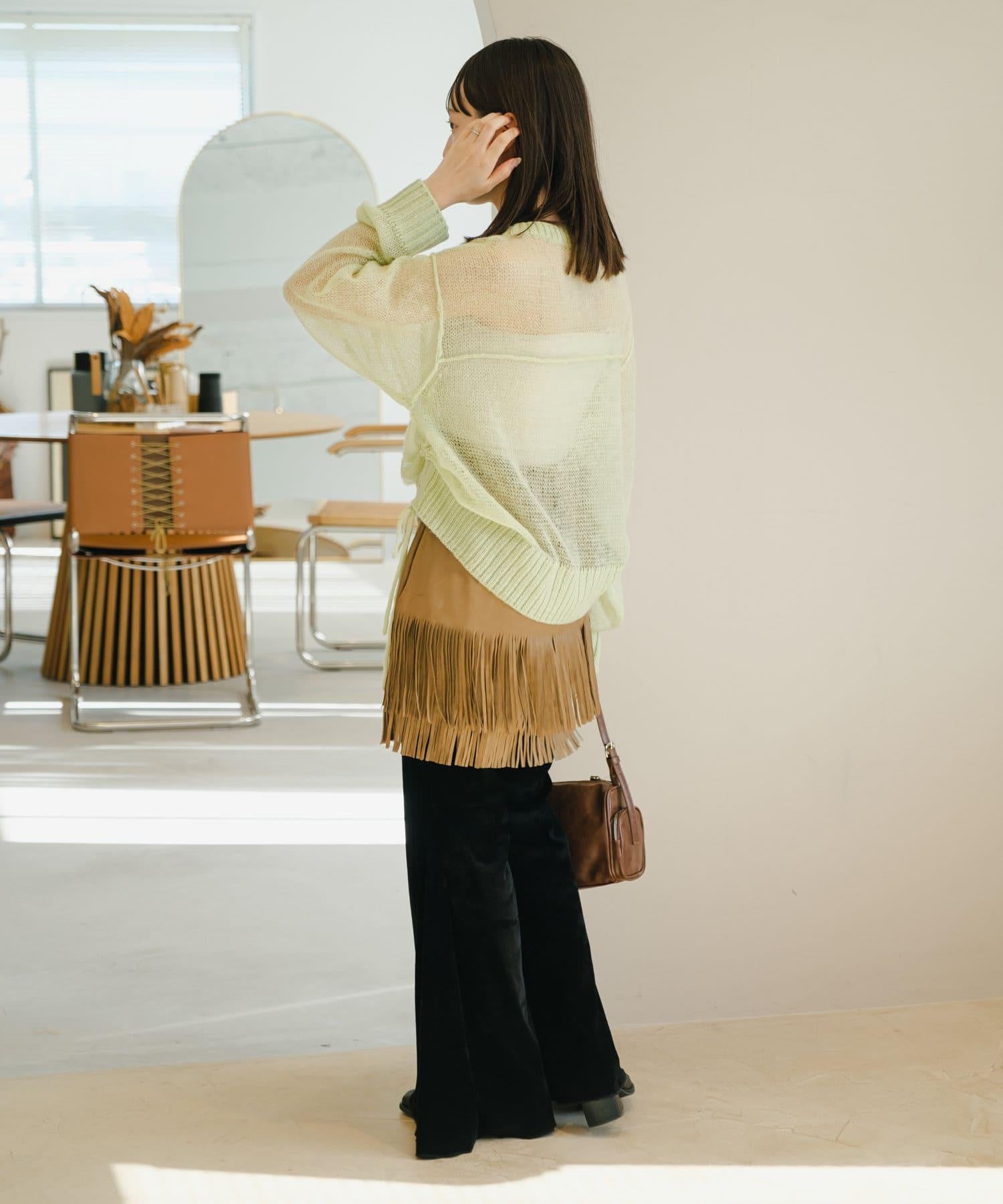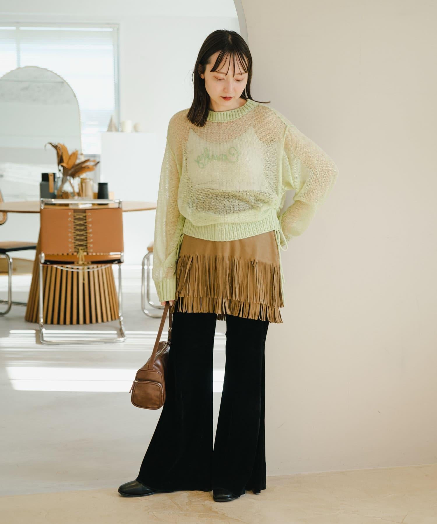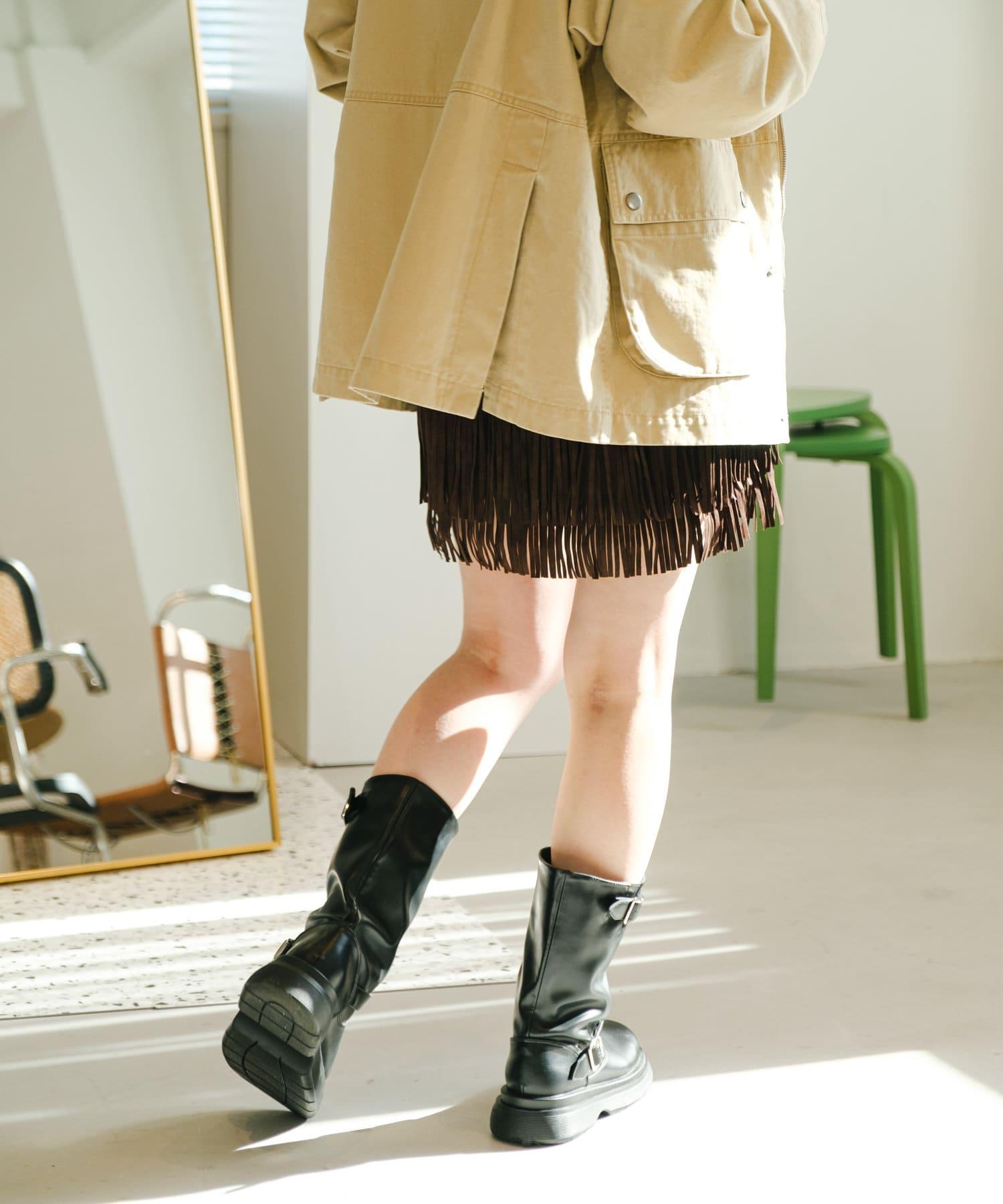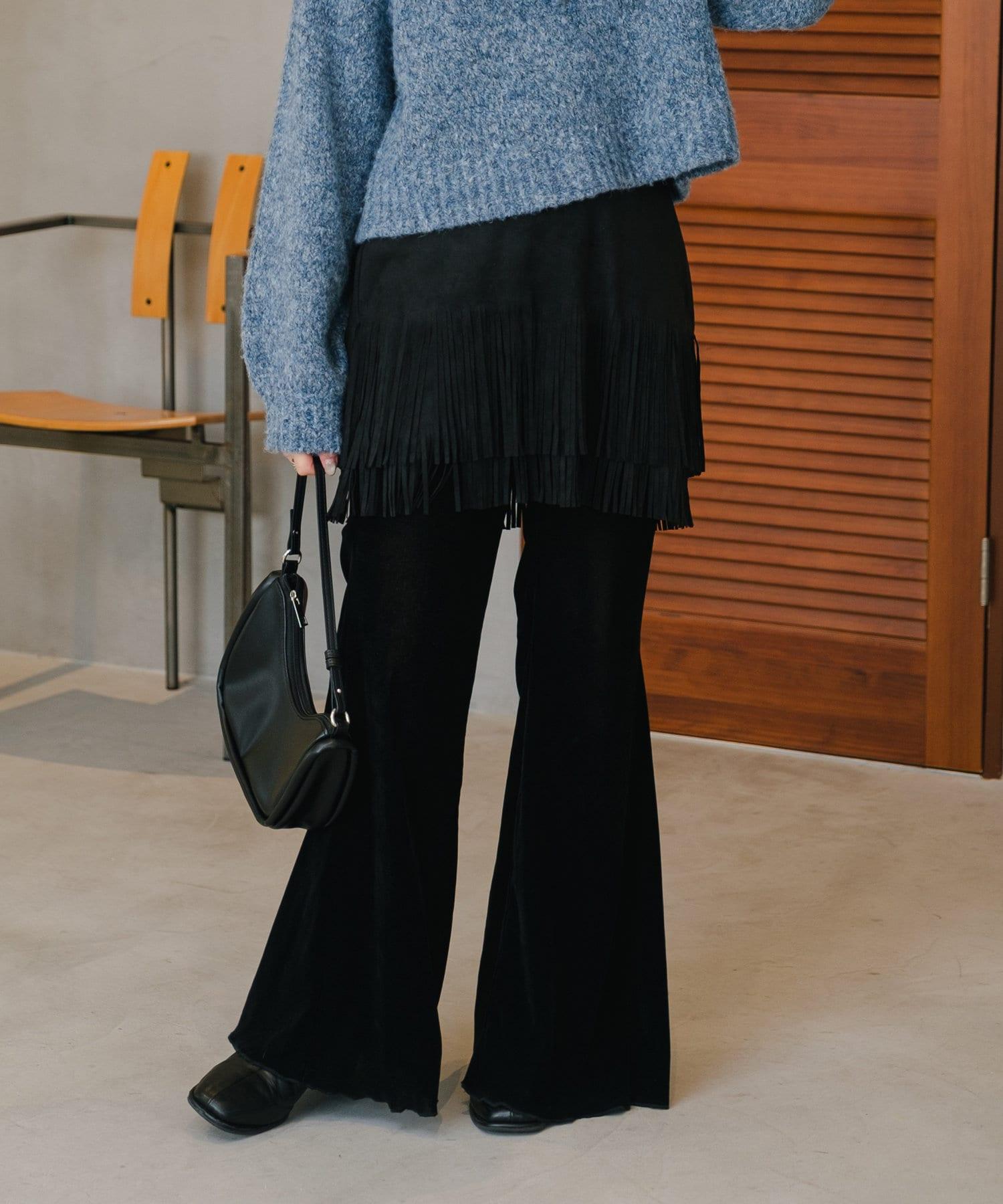 引人注目的麂皮裙,下襬飾有流蘇
