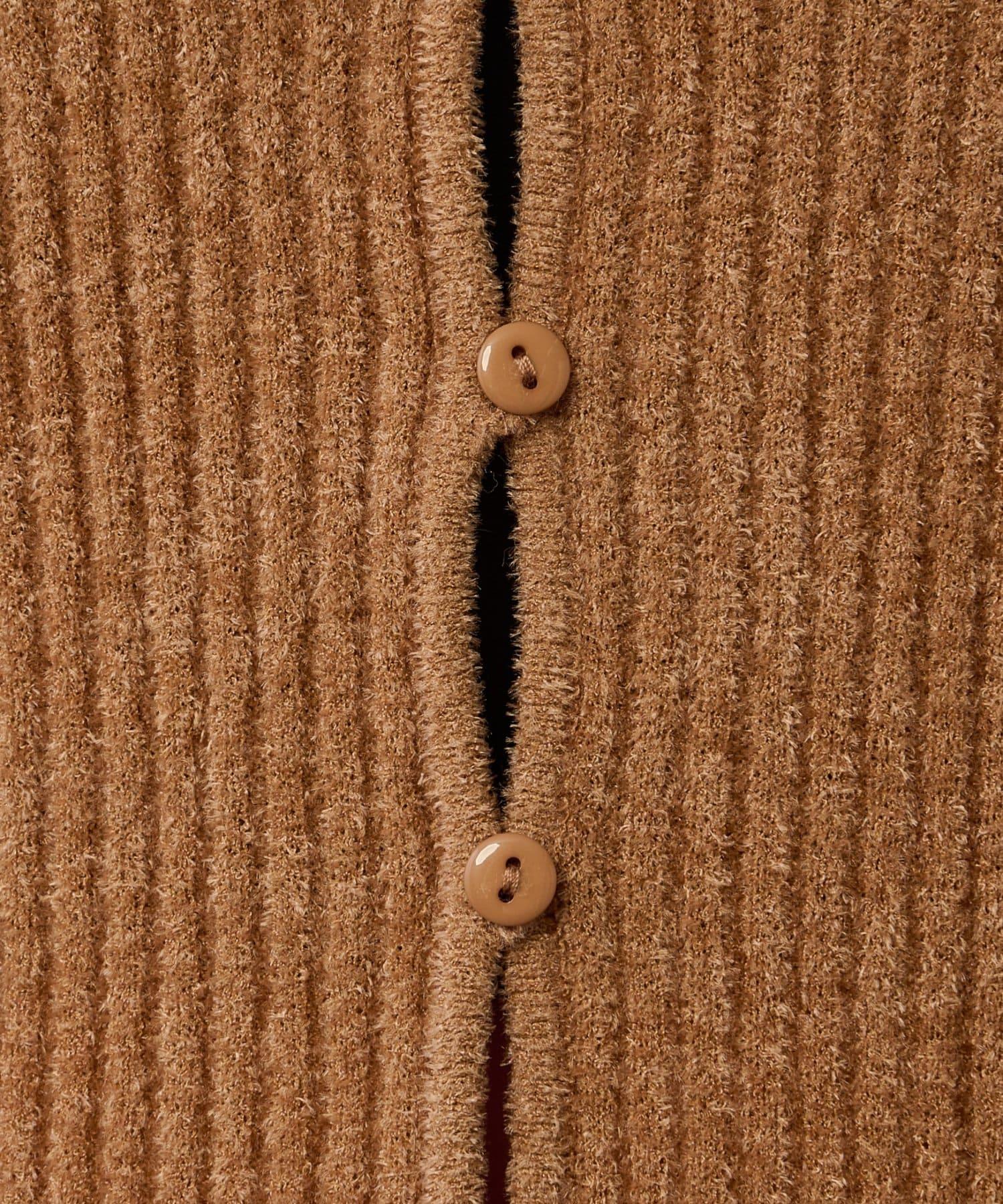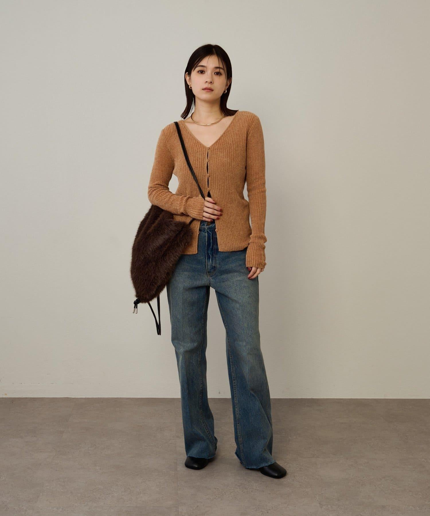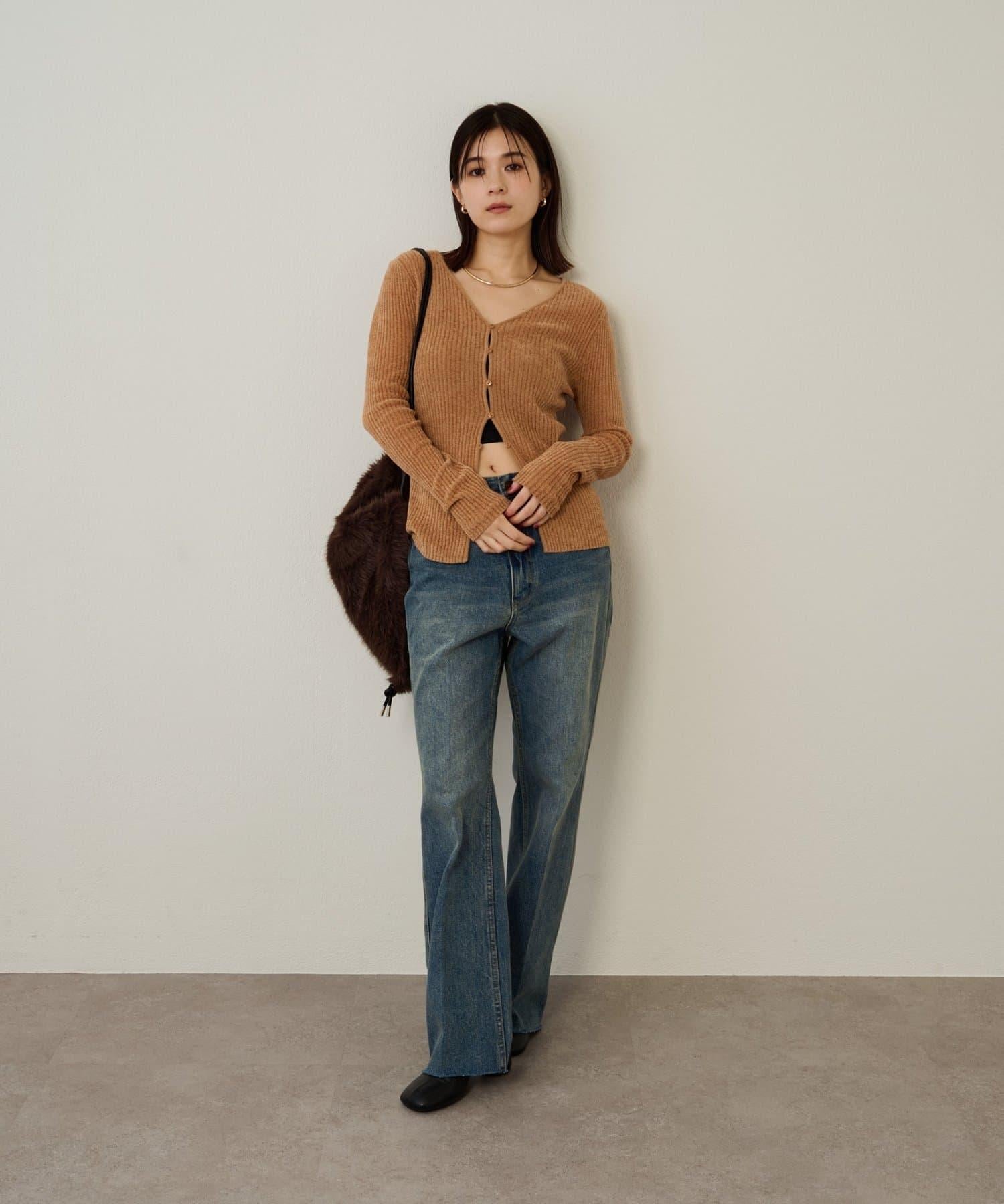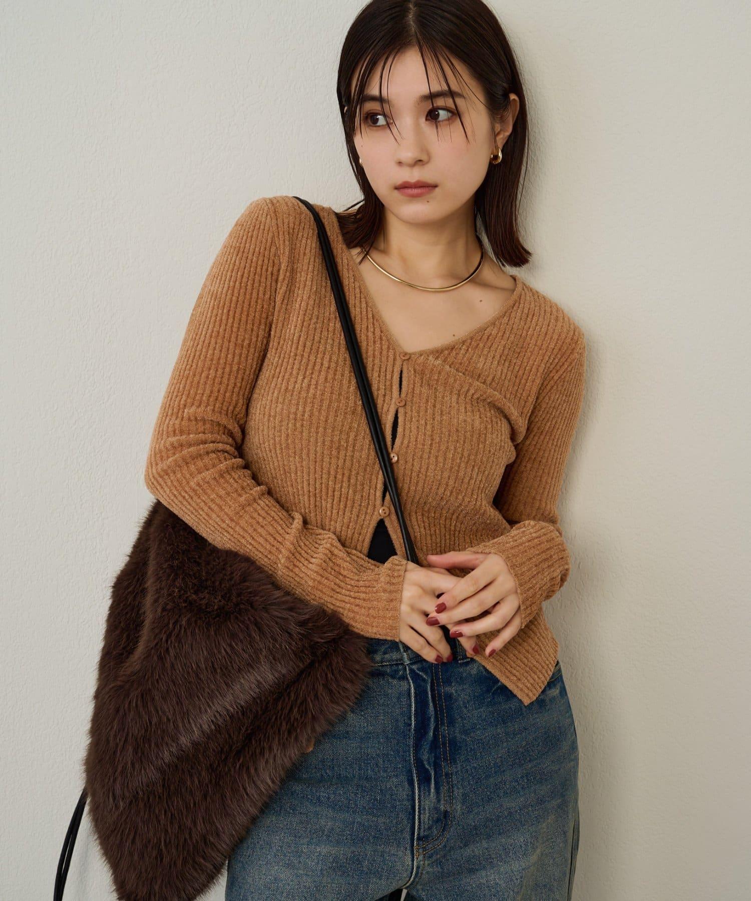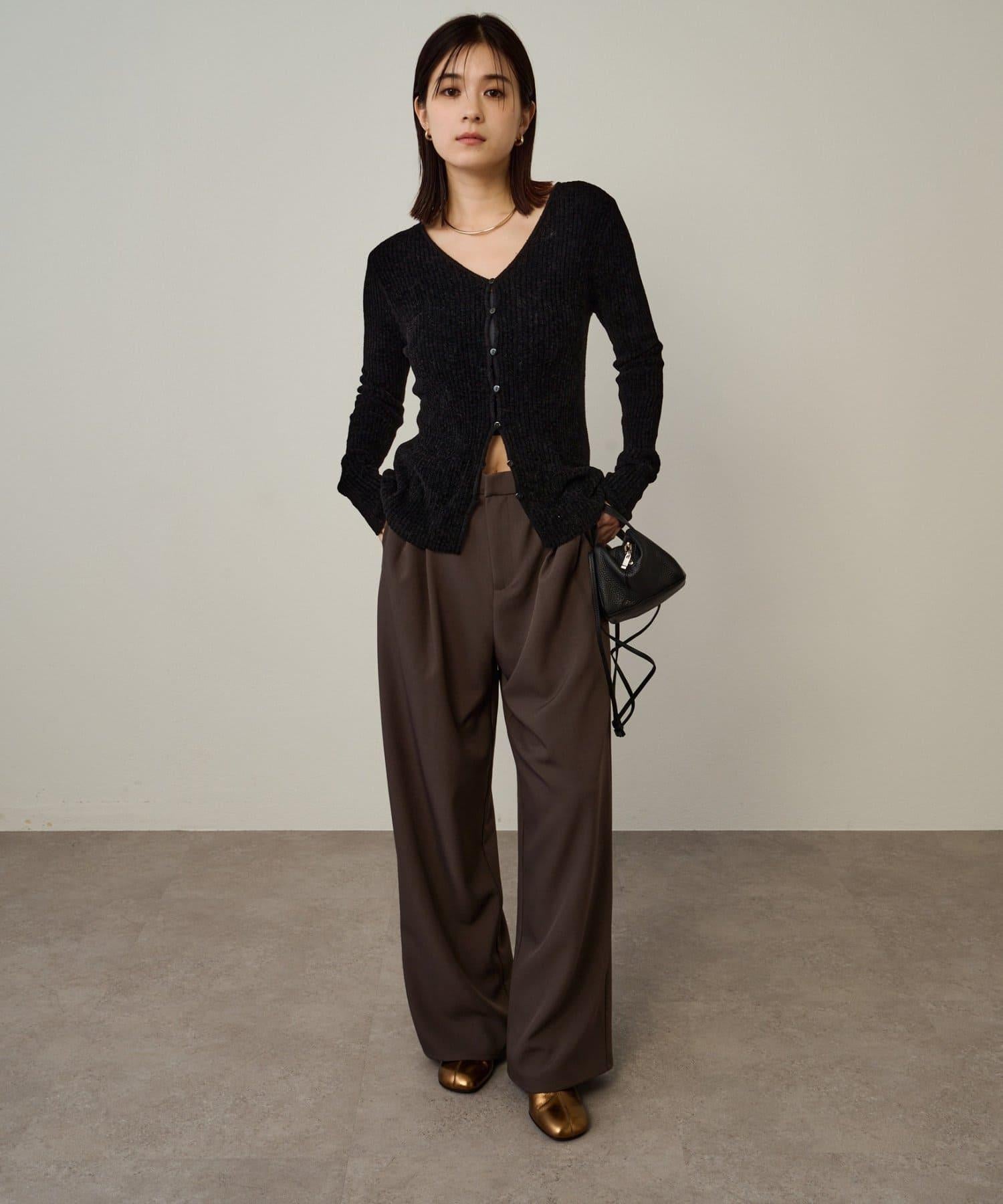 這款開襟羊毛衫帶有適度的光澤和絲絨編織的柔軟觸感,營造出女性的柔美氣質。