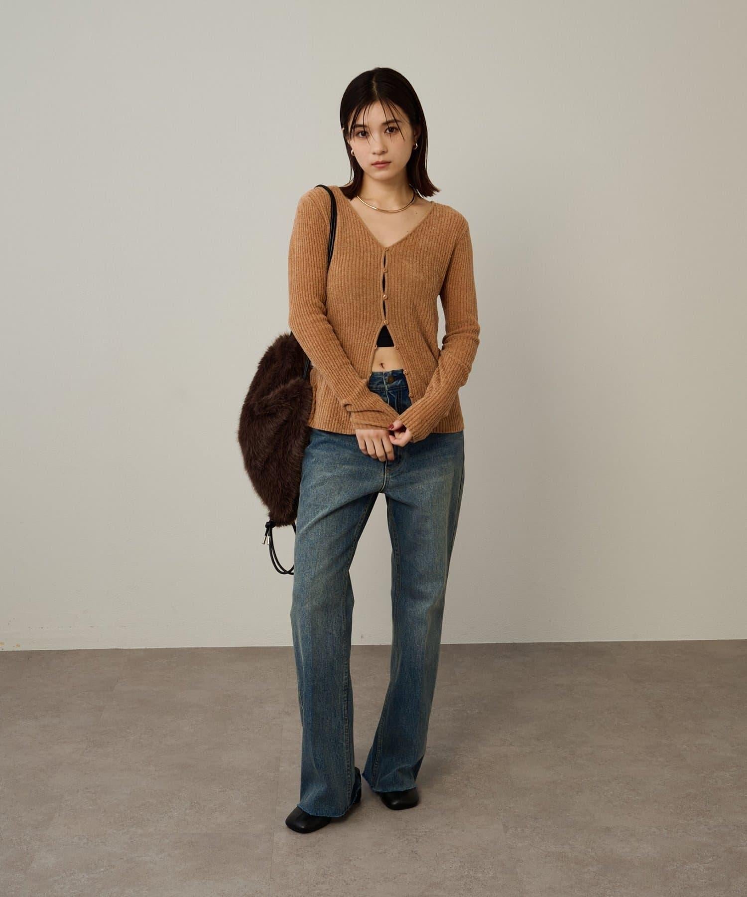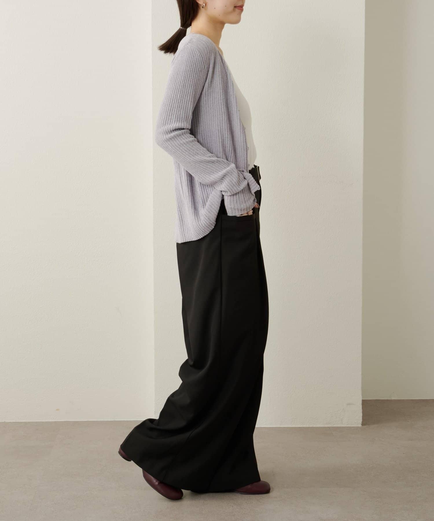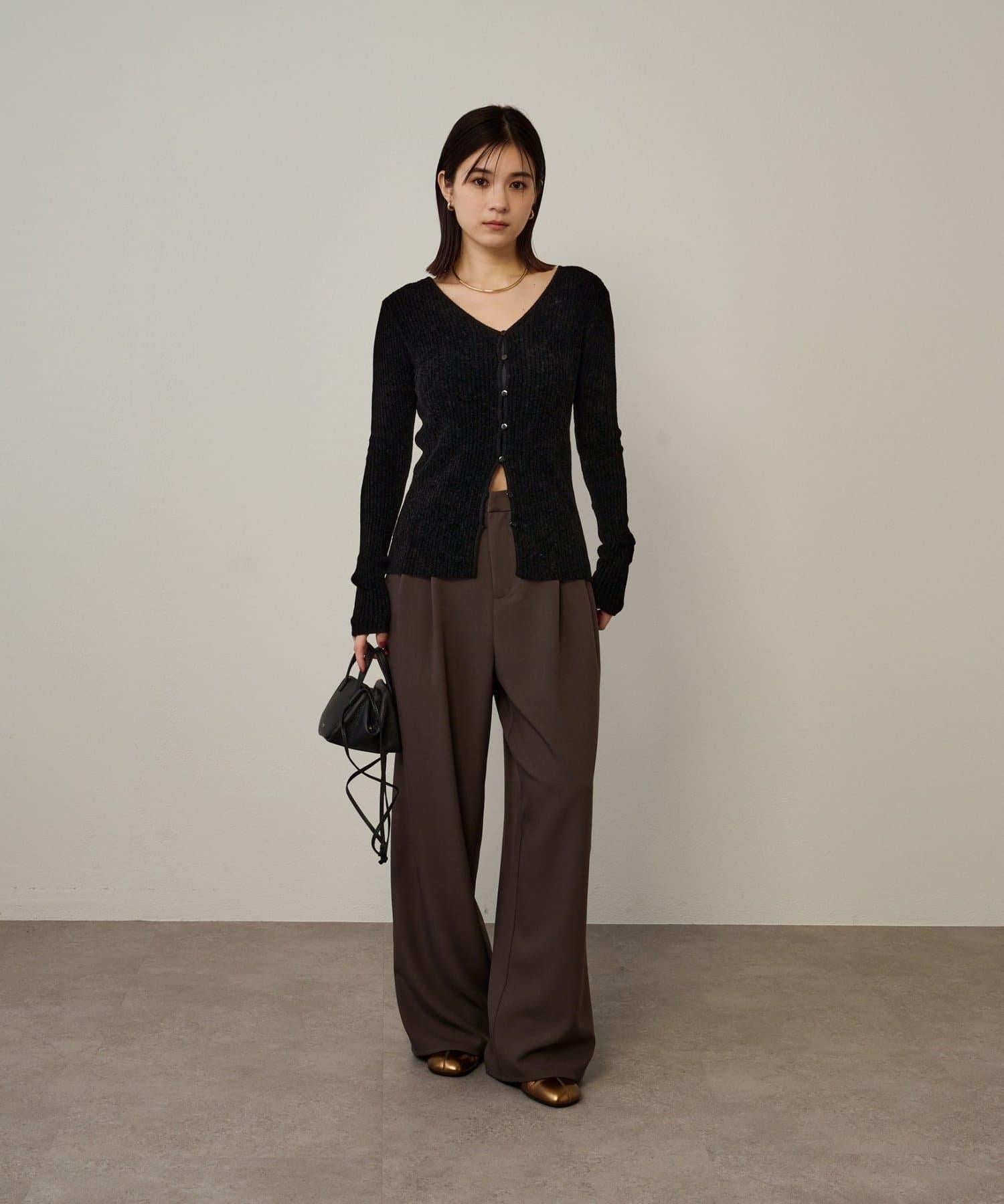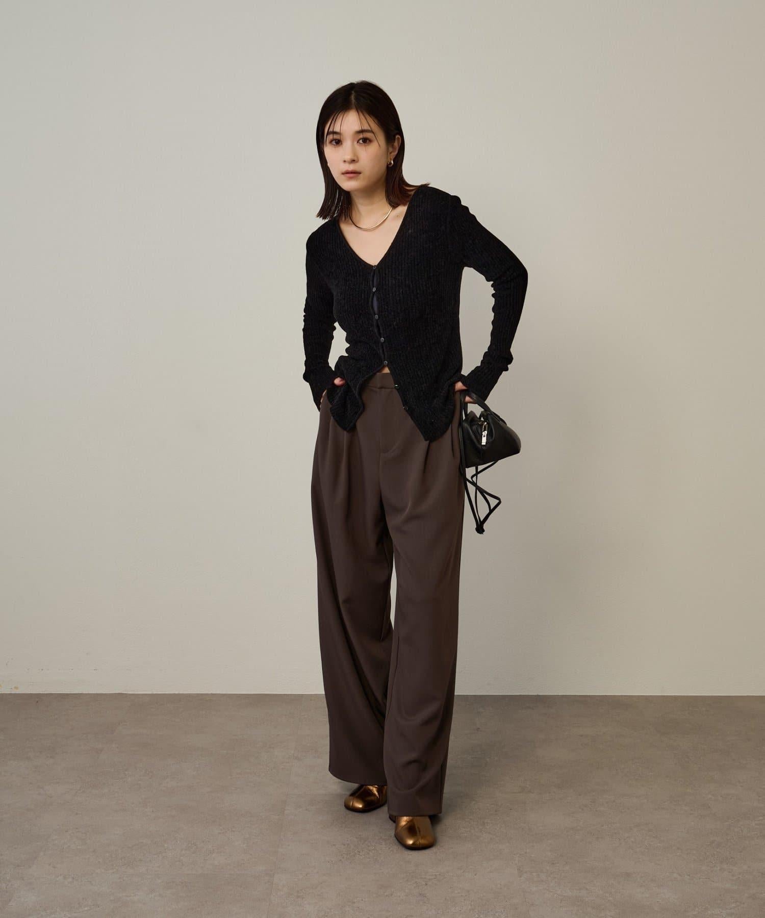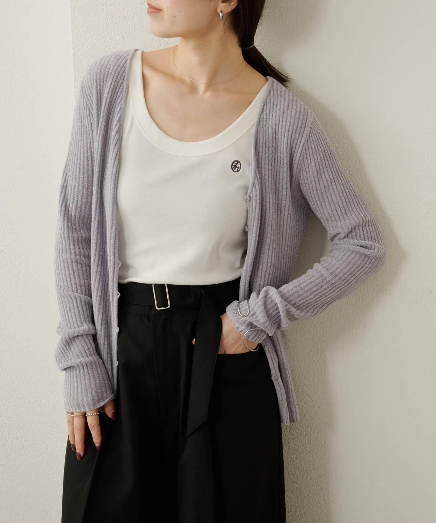 這款開襟羊毛衫帶有適度的光澤和絲絨編織的柔軟觸感,營造出女性的柔美氣質。