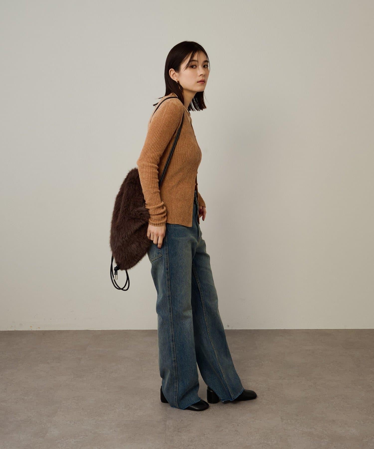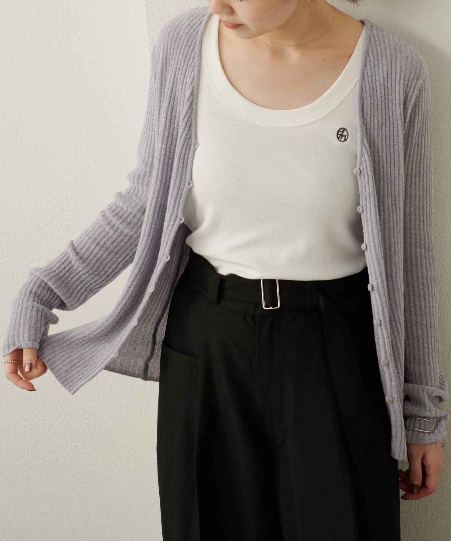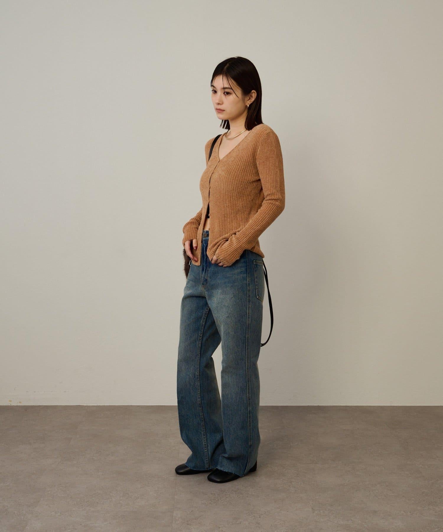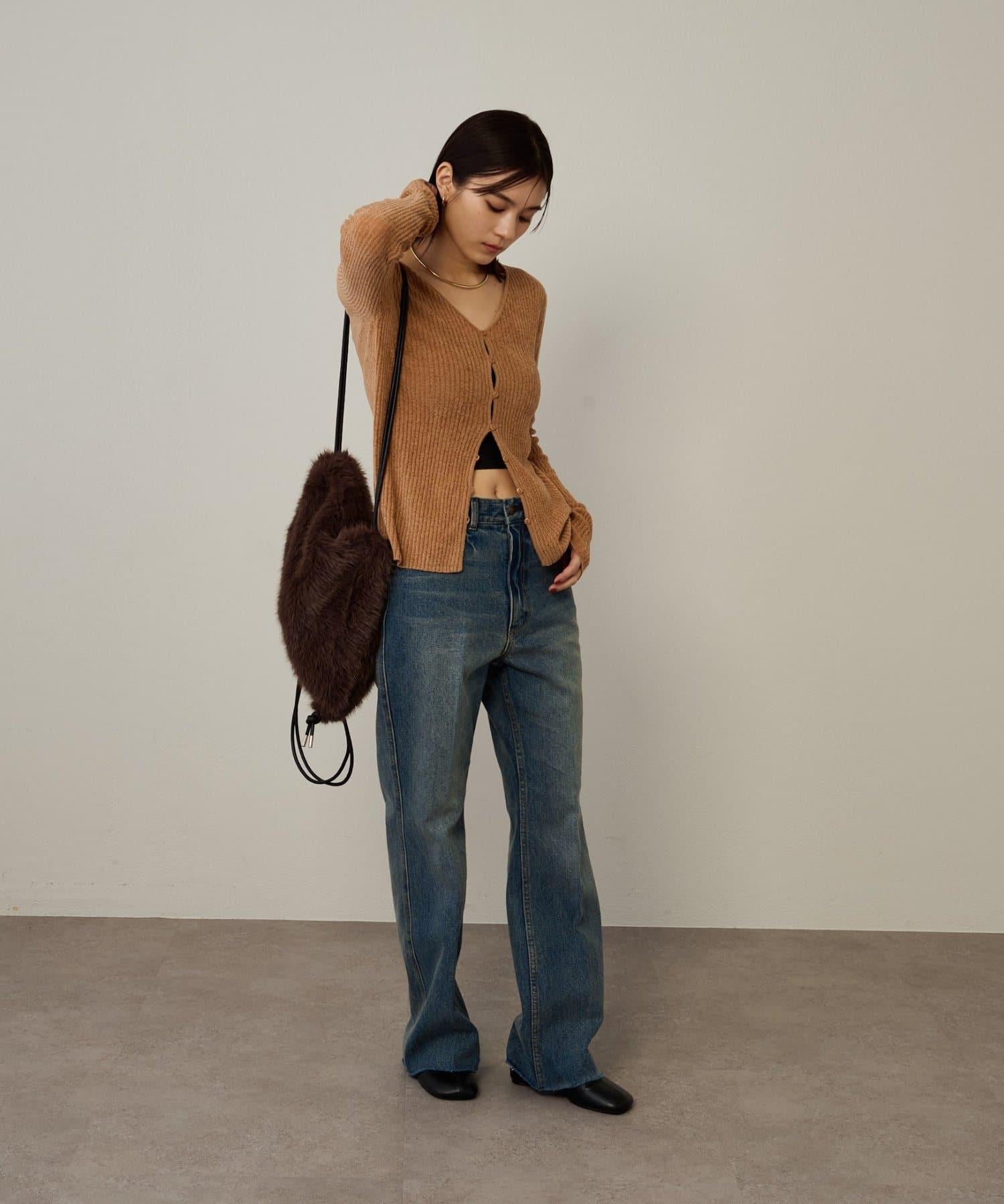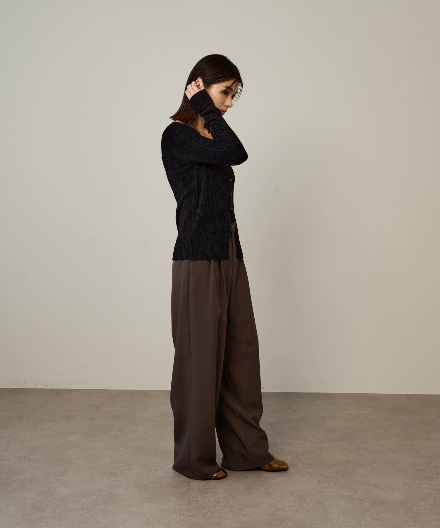 這款開襟羊毛衫帶有適度的光澤和絲絨編織的柔軟觸感,營造出女性的柔美氣質。