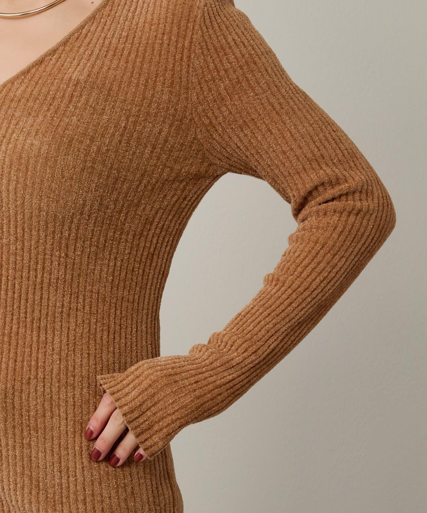 V 領設計勾勒出優美的肩部線條。