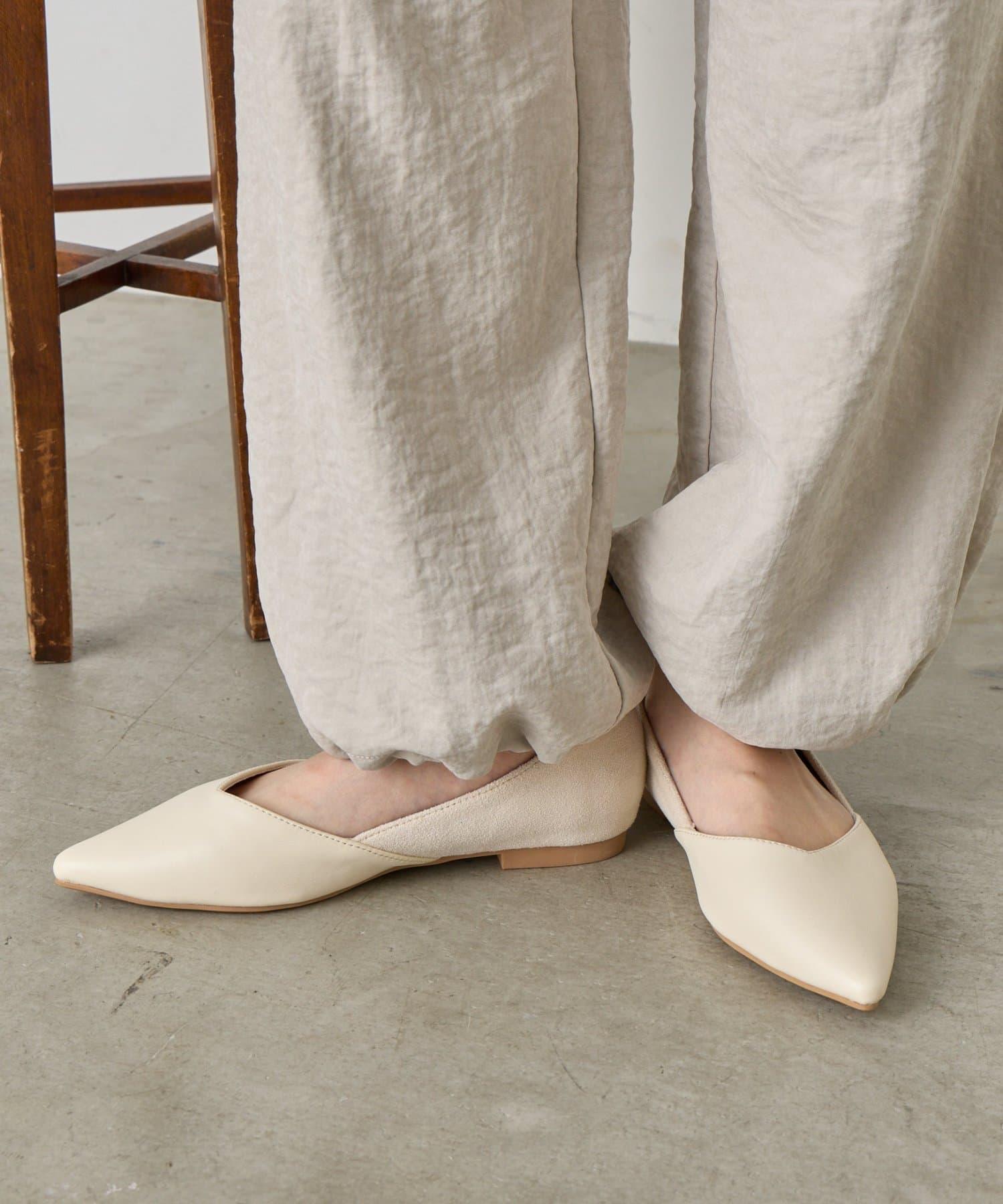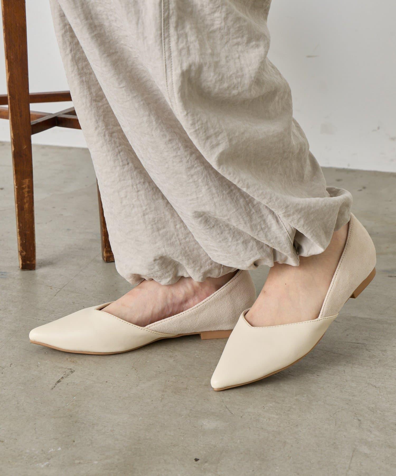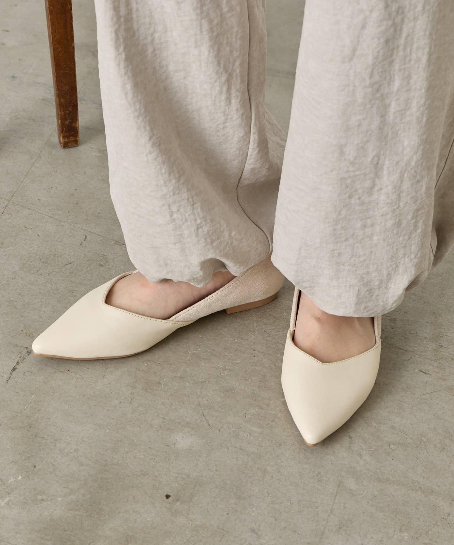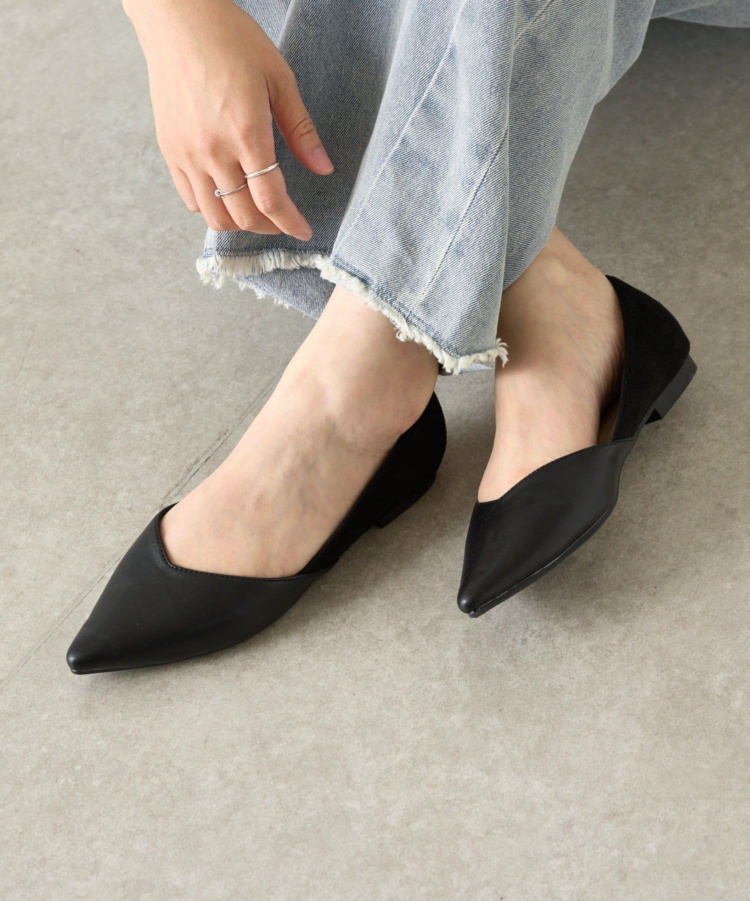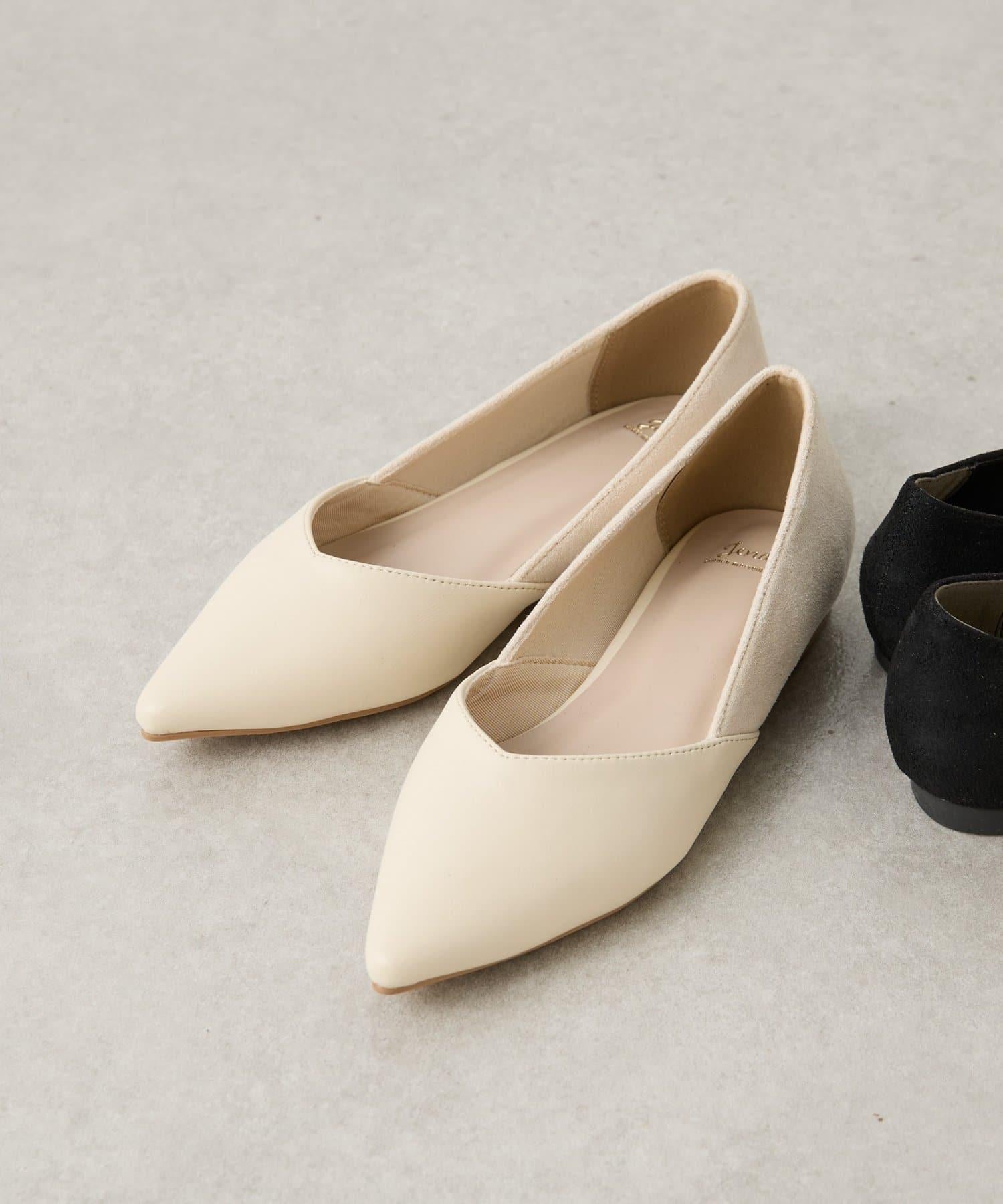 V 形剪裁尖頭平底鞋,輪廓優美。