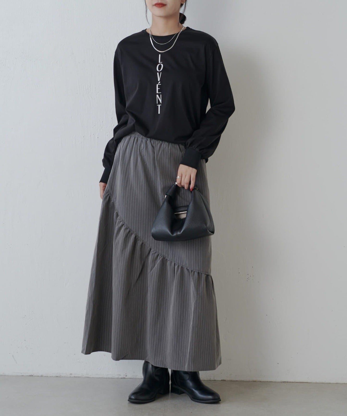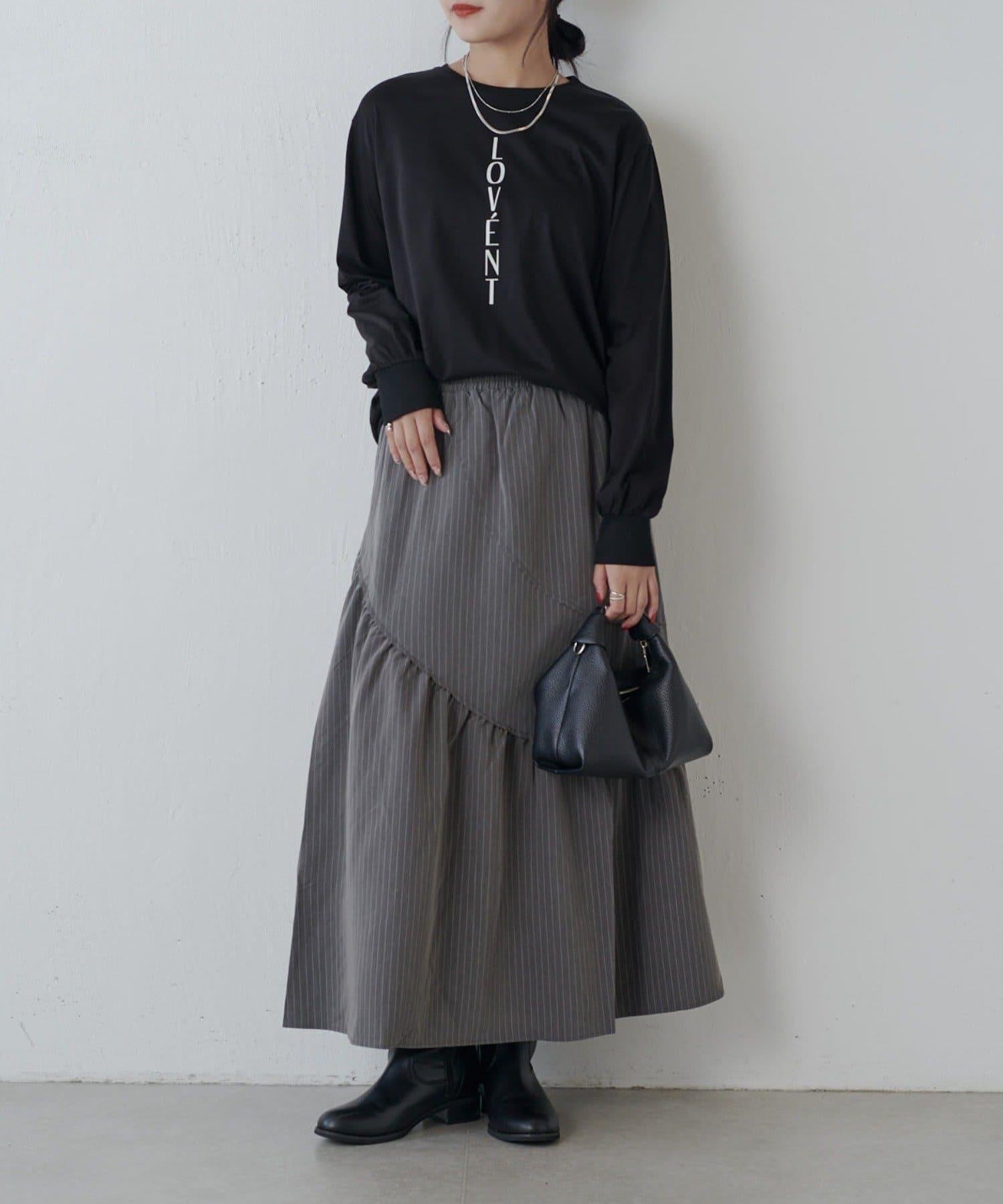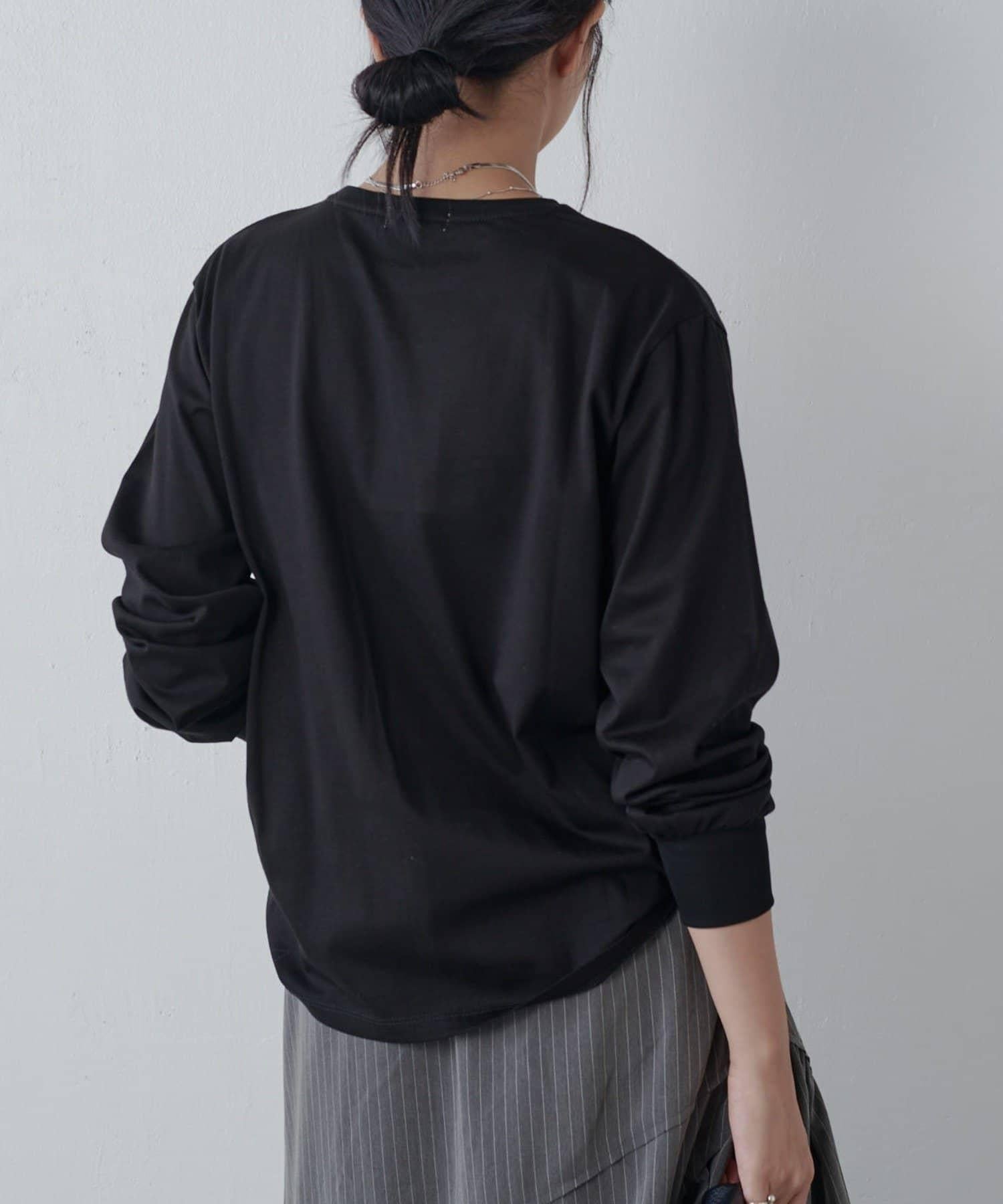 面料表面有輕盈透氣的感覺,雖然是趨於休閒的長 T,但很容易搭配出漂亮的造型。