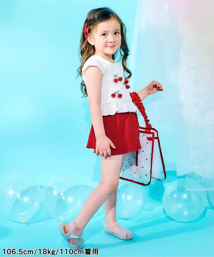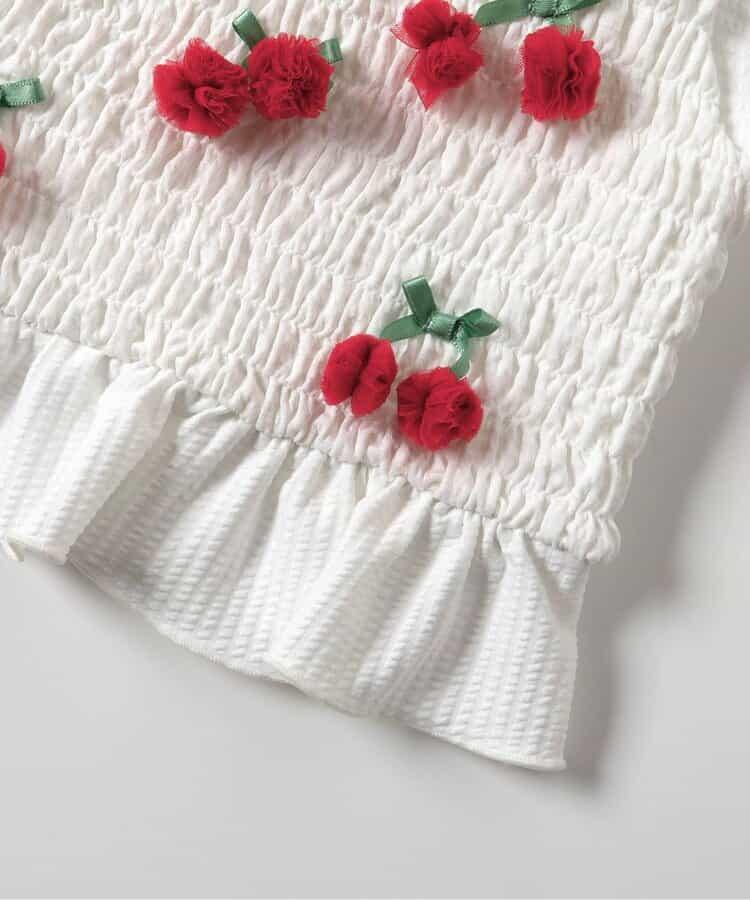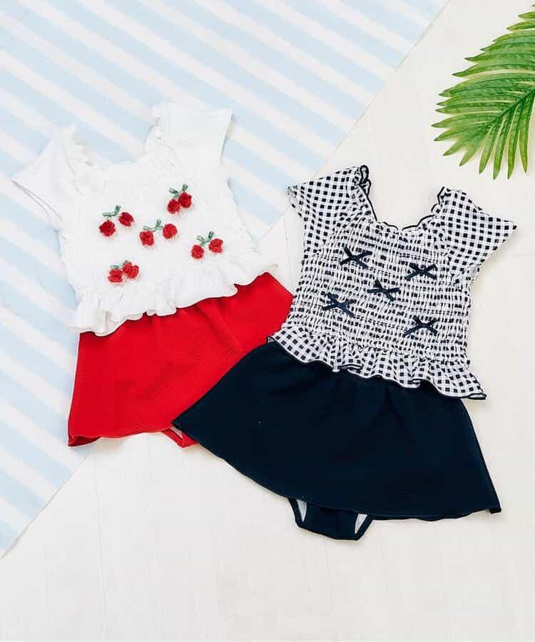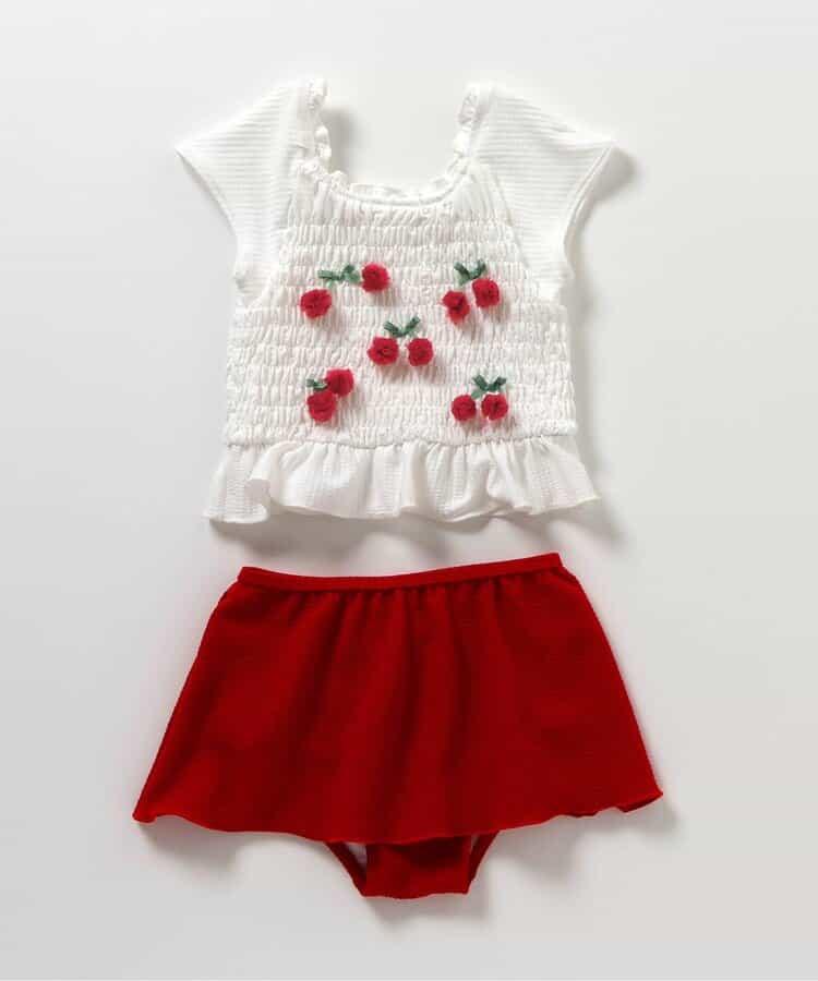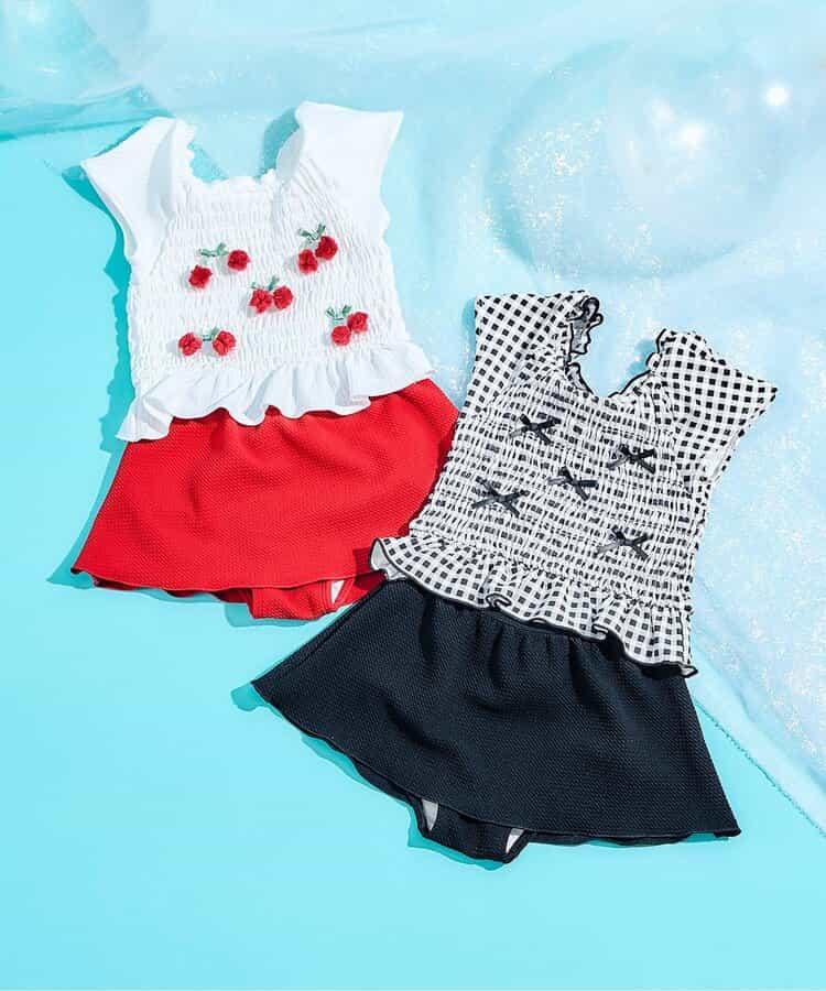 絲帶·櫻桃圖案荷葉邊分體泳衣